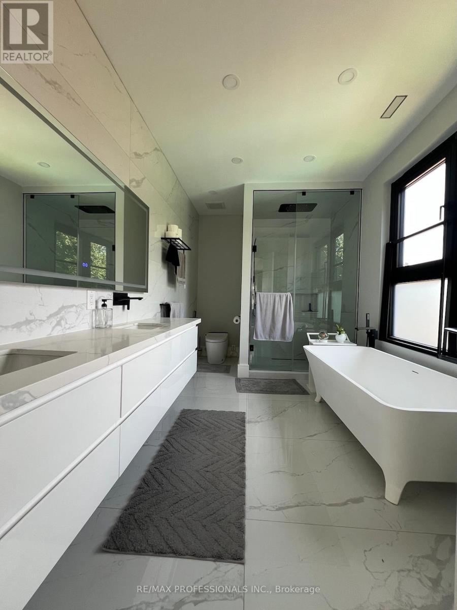 Sophistication and elegance shine throughout this new custom built spacious and modern luxury home in Clarkson. 3660 SF above grade plus 2240 SF below grade. Many features with quality finishes : triple pane windows, smart glass windows, motorized curtains, smart toilets, glass railings, plot lights throughout, quartz counters, Thermador appliances, 6 burner gas stove, pantry, passcode door entry, 2nd floor furnace room, ensuites in all bedrooms, 2nd floor laundry. Prime bedroom has large private terrace overlooking park , large windows. 2 laundry rooms. 2 door access to garage from inside. Basement has a kitchen, family room, laundry Room, 3 Bedrooms, large windows, separate entrance to basement, walk up to yard from a private patio, extra zen garden patio , wine cooler. Covered Patio 16X26 feet with pot lights. Stone Driveway. Mature trees in yard. 10 foot ceilings on main level, 9 foot ceilings on 2nd floor and basement. 2 A/C units. Backs onto a park. (id:64974)