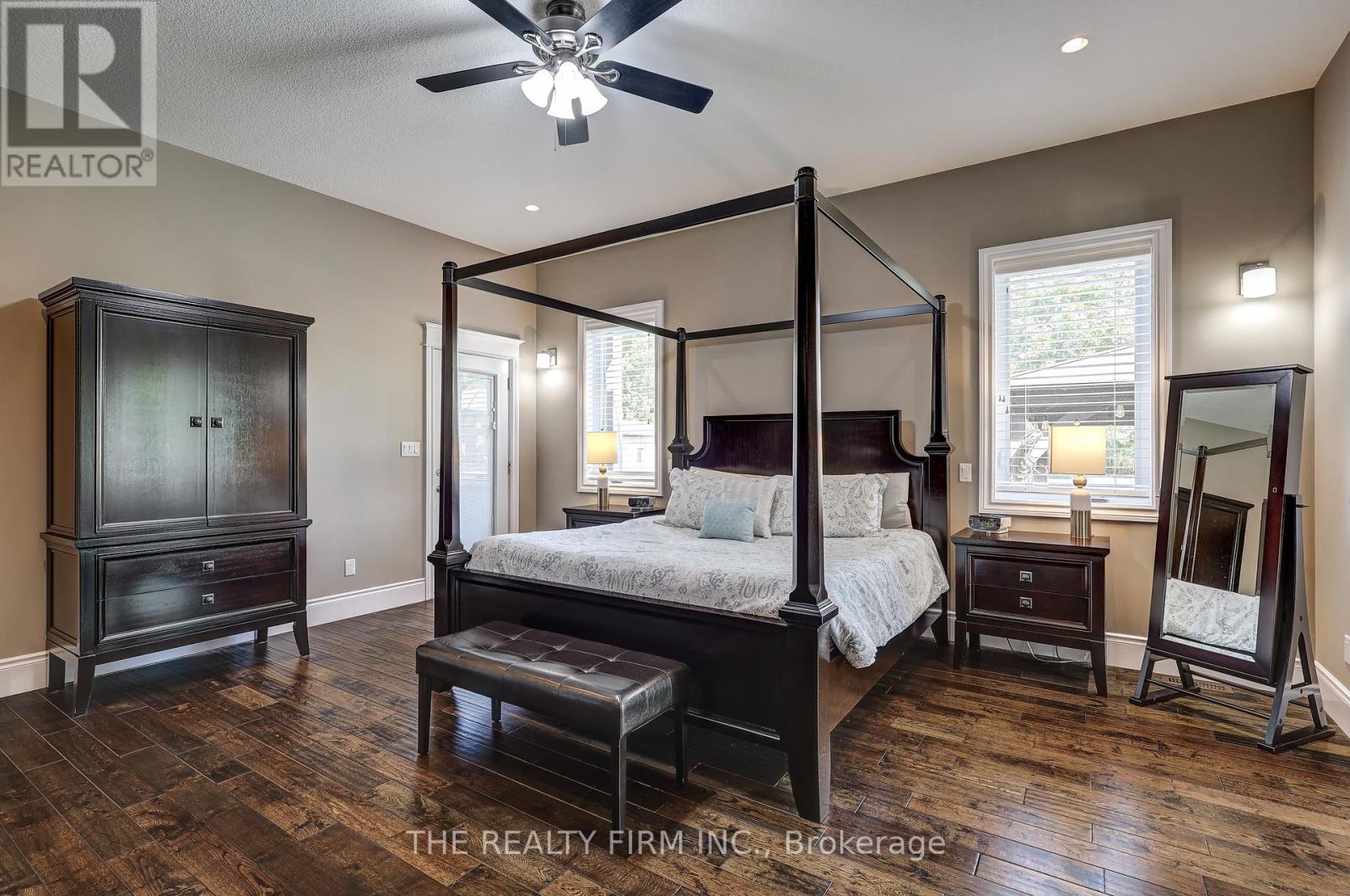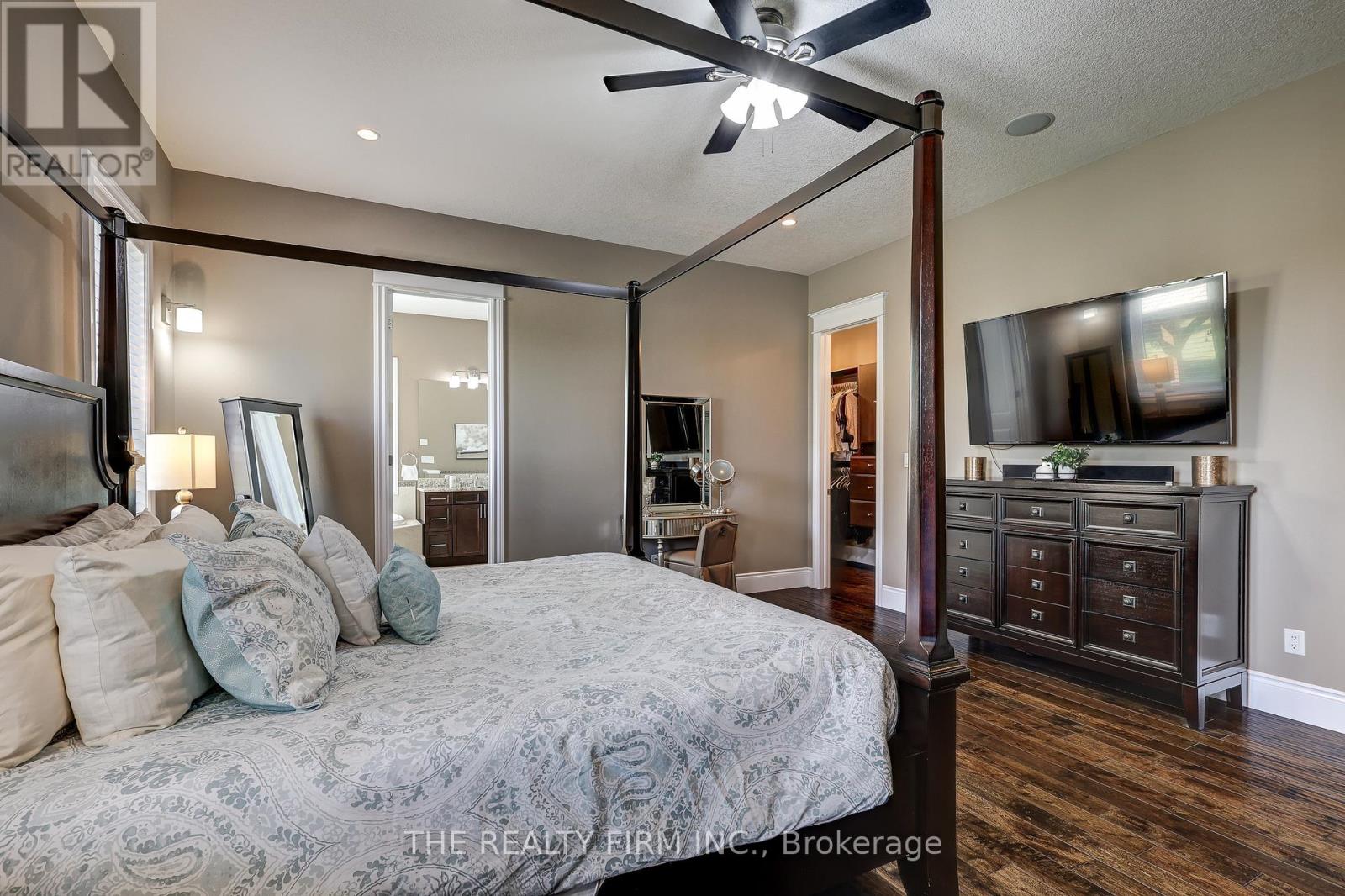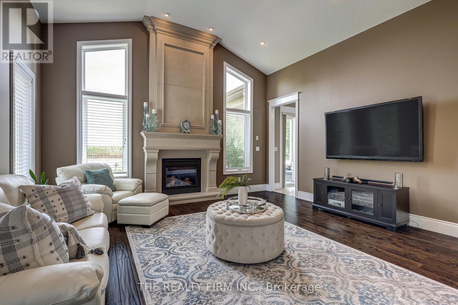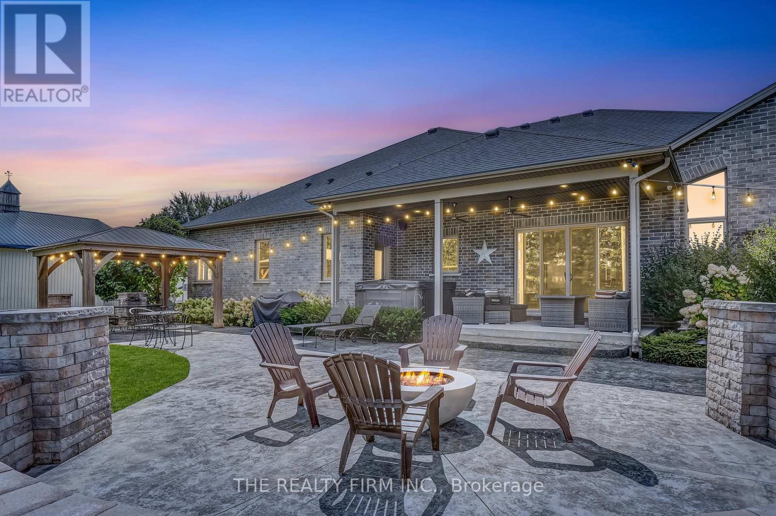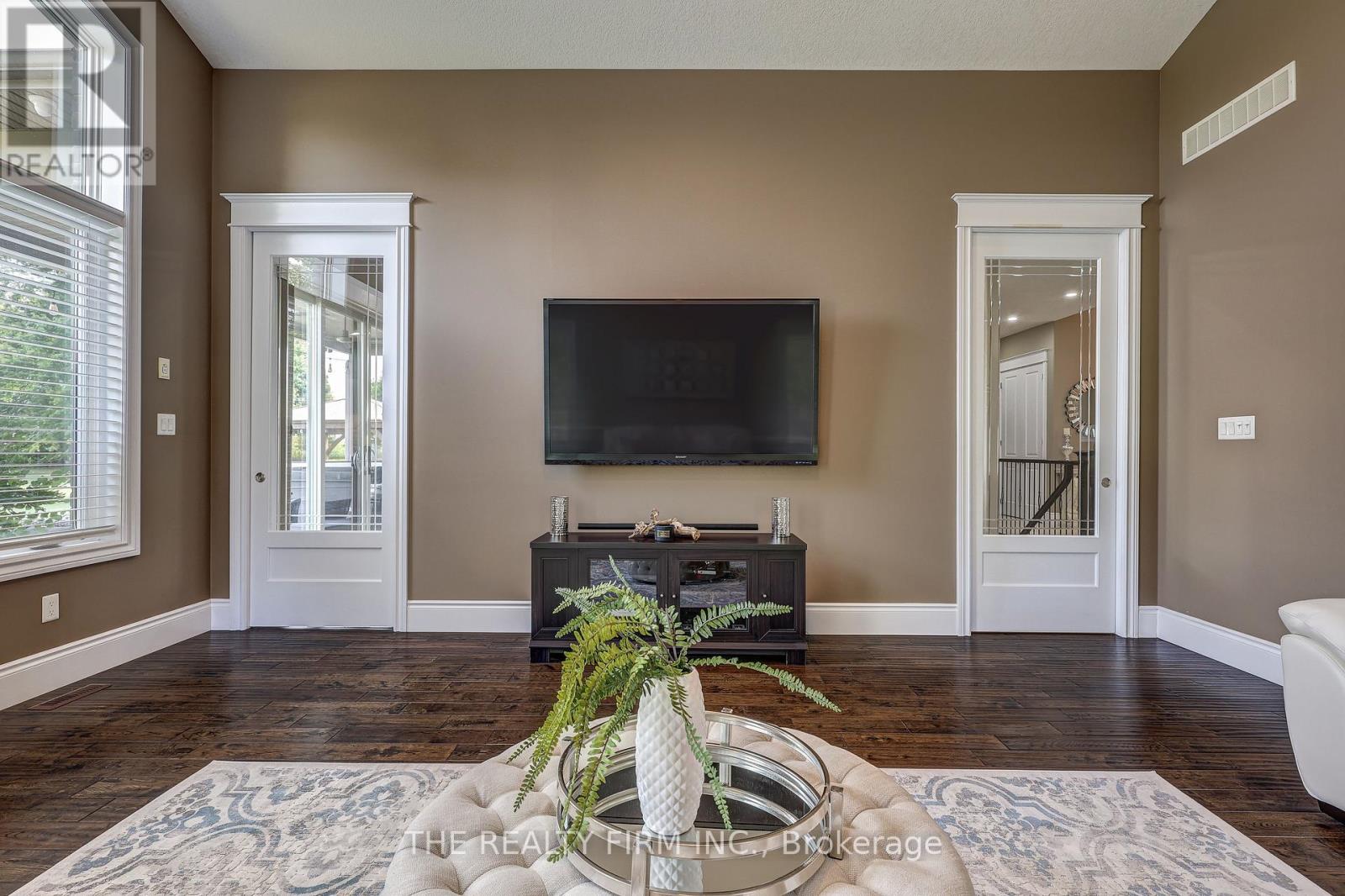Welcome to your sanctuary of refined rural living at 22060 Nissouri Rd. Thorndale On. A breathtaking estate nestled on 1.33 acres spanning over 5,000 sq ft with exquisitely finished space. This majestic home features 4 + 1 bedrooms and 3.5 baths, crafted with thoughtful design and premium craftsmanship at every turn. Step through the stately entry into a 12' coffered-ceiling foyer with poplar custom trim flowing seamlessly into the family room with its soaring 13 vaulted ceiling and commanding floor-to-ceiling plaster gas fireplace. The kitchen, dazzles with maple cabinetry, a massive island with sink with reverse osmosis, a 6 burner gas stove, double wall ovens and luxe finishes like a travertine backsplash, Brizo faucets and Electrolux ICON fridge/freezer. The main level boasts 10 ceilings, 8 doors, hand scraped oak floors, Italian porcelain tile, granite throughout and an ambient speaker system all complemented by Hunter Douglas window treatments. A convenient main-floor laundry and custom drop zone add to daily ease. The lower level inspires with a stylish wet bar, wine fridge, additional bedroom, full bath, quartz and dual electric fireplaces, oak staircase, spray-foam insulation, separate garage access and a cold room. This property is ideal for multigenerational living with the separate lower level entrance, full amenities and expansive layout. Outside experience meticulously curated 360 landscaping and lighting, stamped concrete walkways and patios, a covered 10' x 25' patio with speakers, insulated attic & 2 extra circuits for a future sunroom addition. Completing the yard is a gas fire pit, a 20' x 22' shed with hydro, gazebo, backyard hydrant and a triple garage with an extra bay door to the back. Thorndale offers tranquility and vibrant community living with playgrounds, splash pad, skate park, sports courts and community gardens. A short drive to Londons premier shopping, business district & airport. The perfect blend of rural and urban charm (id:64974)