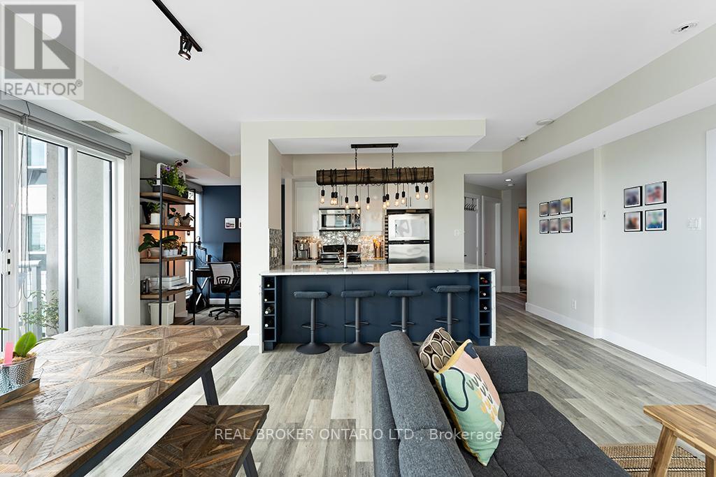 Welcome to 200 Rideau! Enjoy the fine details of this custom designed 2 bed+den, 2 bathroom 22nd floor unit! Underground parking and locker included. Entertaining will never be the same with the open concept kitchen with extended breakfast bar overlooking the living room and dining room. Truly a one of a kind unit! Luxury vinyl plank flooring, high quality tiles, freshly painted, quartz countertops w/waterfall finish and custom lighting setup with smart lightbulbs. Building amenities include: gym, sauna, indoor pool & 24-hour security/concierge. Available June 1. (id:64974)
