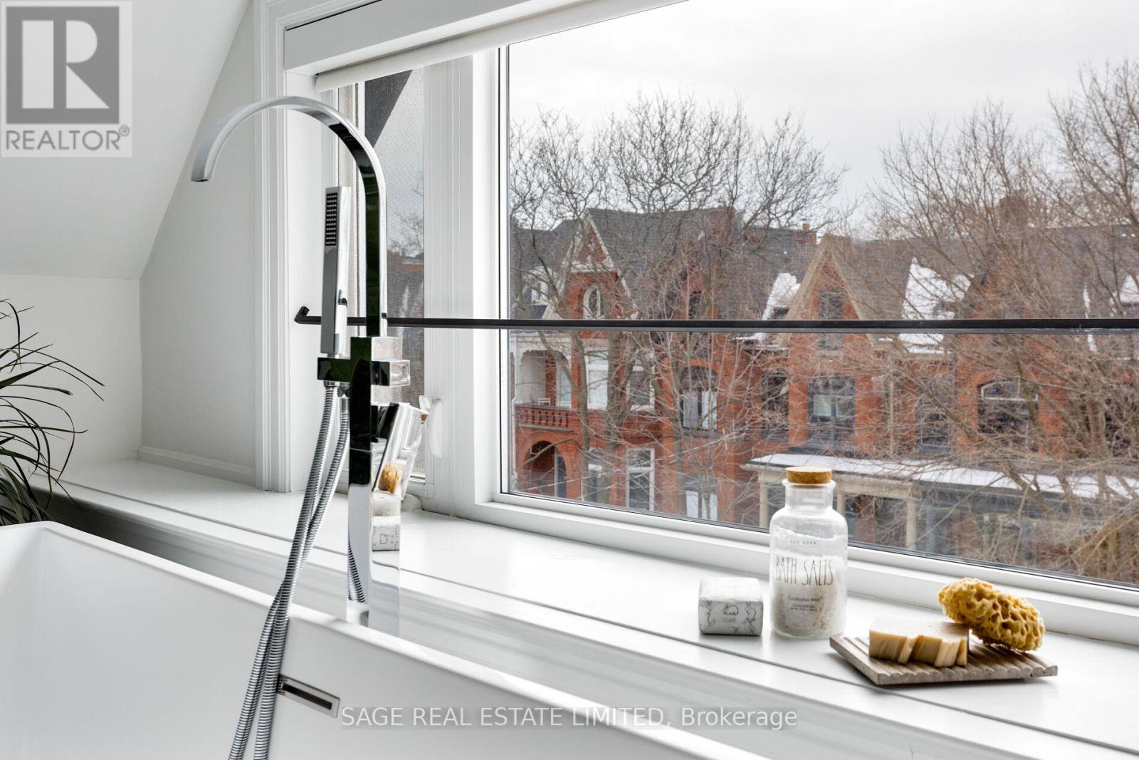 Welcome to 221 Crawford Street, situated on the most coveted block of Crawford backing onto Trinity Bellwoods Park. This classic Victorian charmer was transformed in 2016 into an exquisite 4+1 bedroom | 5 bathroom residence, featuring 2571 square feet of well curated living space. Step inside to a main level that encourages unrushed family gatherings on relaxed summer afternoons, anchored by a bohemian kitchen that's the stuff of home chef's dreams. The rear walkout takes you to an expansive east facing deck, the beloved park beckoning just beyond. Major bonus: both a powder room and mudroom are neatly packaged into the floorplan. Up to the second floor, where three very good sized bedrooms and two gorgeous full bathrooms await. Tall ceilings and an airy palette set a relaxed mood. One more flight up to a third floor retreat that's worthy of that name, with king bed proportions and a spa-like ensuite. A double door walkout leads to an east facing deck, a magnet for morning coffees and serene views of the park and skyline beyond. The fully finished lower level features a generous rec room, a guest bedroom and yet another full bathroom. Parking is a breeze via extra wide rear laneway. Park life, nature, abundance, genuine character, and carefree living; place a checkmark next to all of these wish list items and more. 221 Crawford beckons you with daily park walks, morning coffee rituals, and impromptu gatherings with those you most cherish. (id:64974)