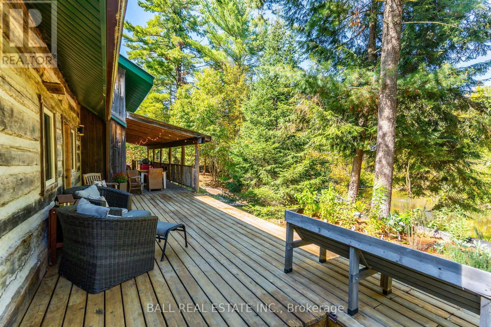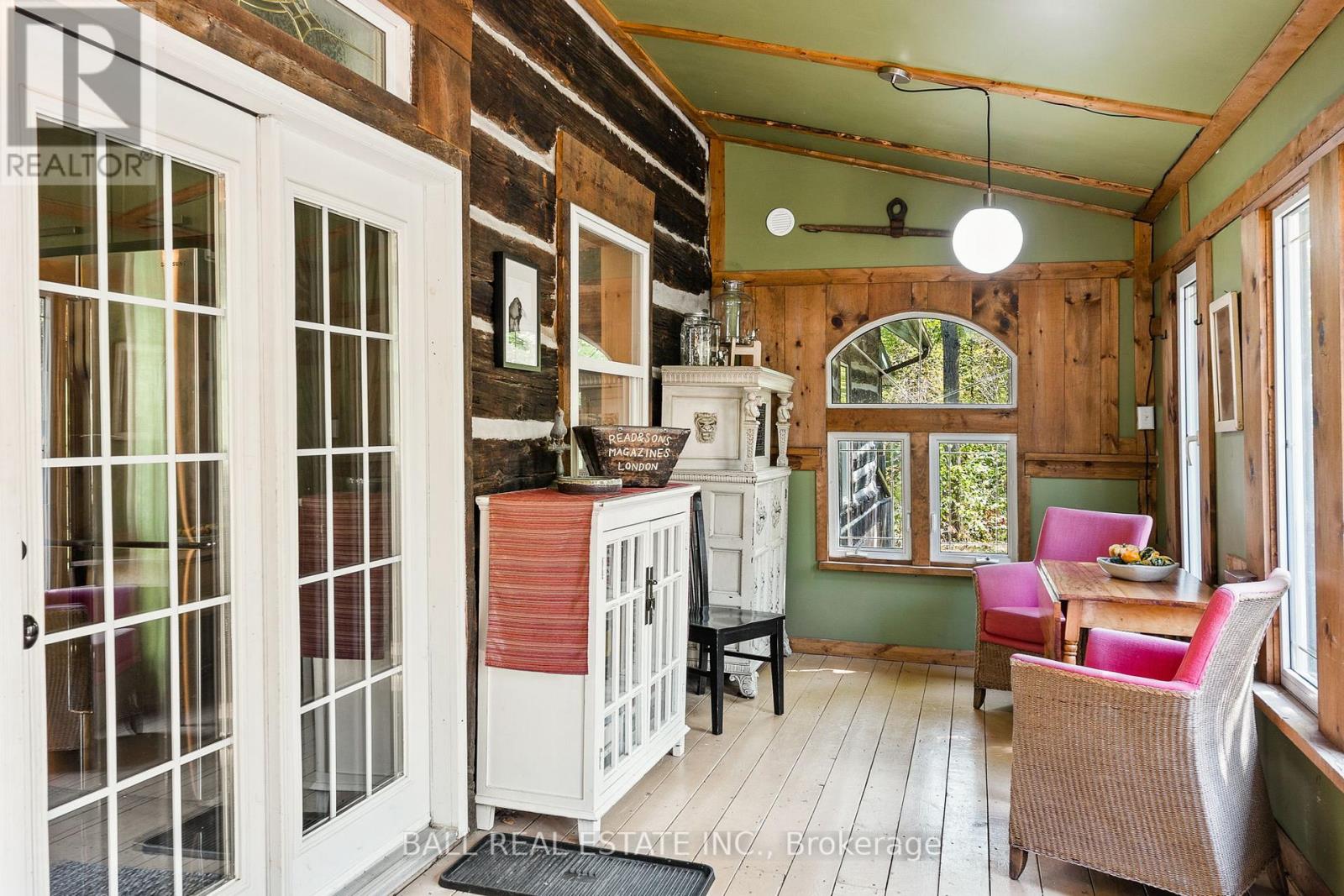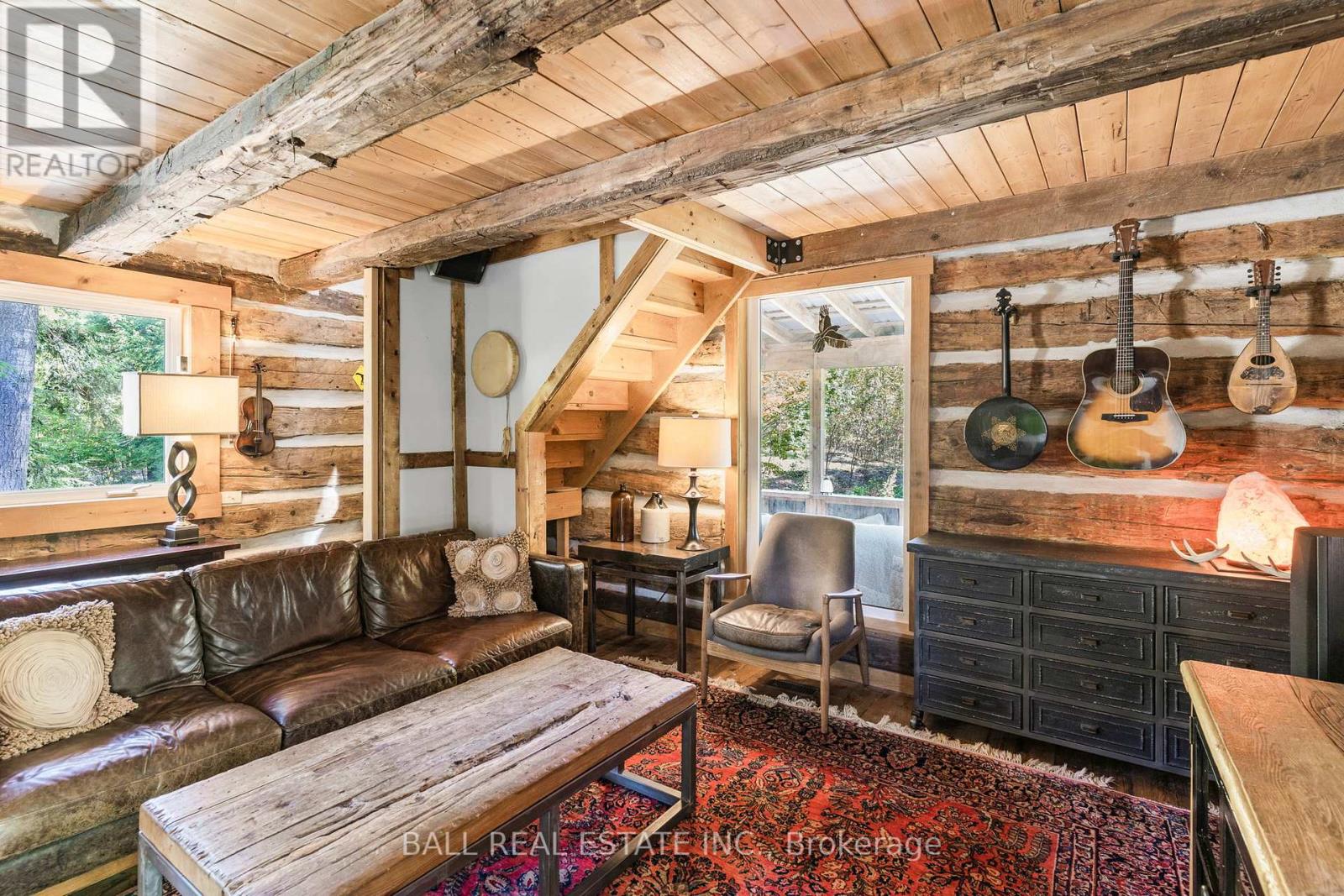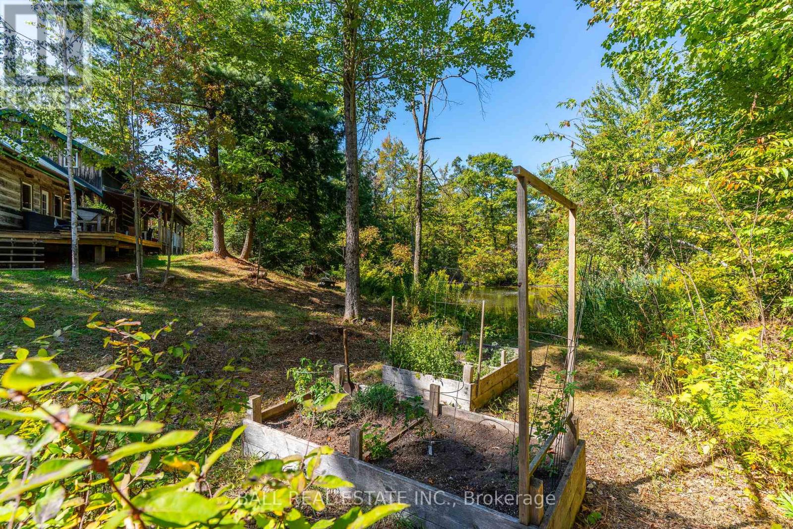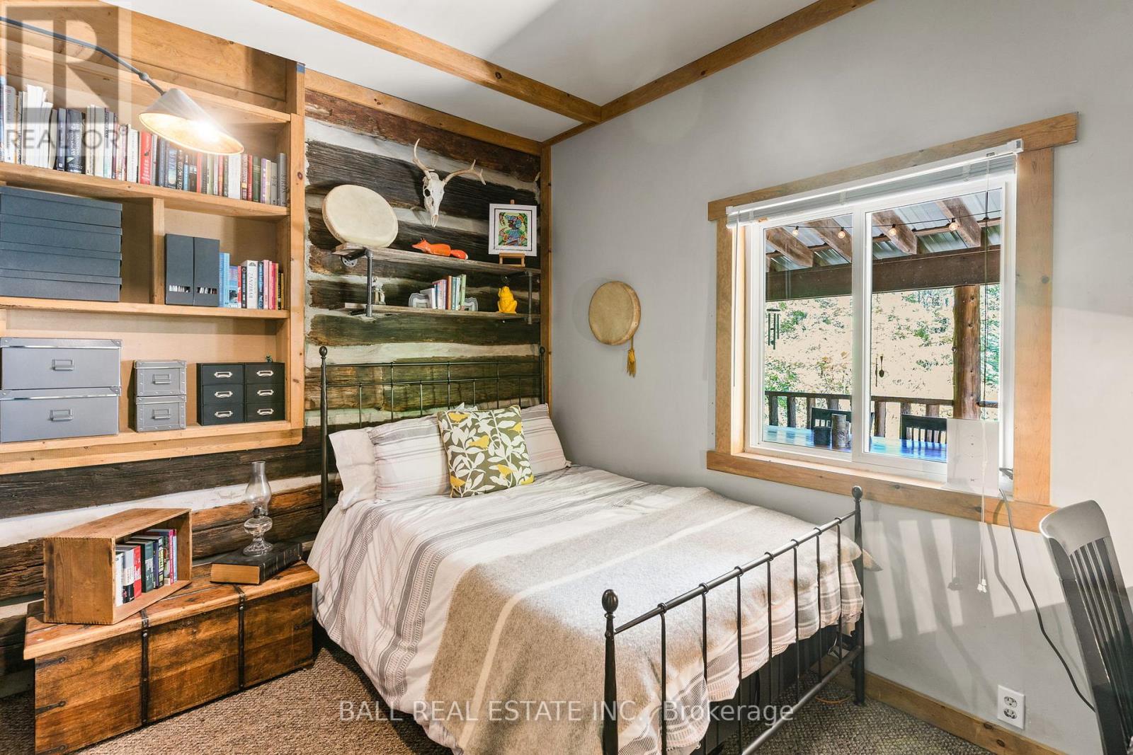 Tucked away on a quiet municipal road just 15 minutes from Bobcaygeon and Buckhorn, this remarkable 15 acre property offers privacy, nature, and a truly one-of-a-kind lifestyle. Featuring forest, winding trails, and tranquil ponds, this is a setting where everyday life slows down and feels connected to the land. At the heart of the property is an original 1836 log cabin, thoughtfully preserved and tastefully updated to balance character with comfort. Enter the bright front porch with ample space, while inside the renovated kitchen showcases a granite waterfall island, ample cabinetry, and an eat-in dining area with walkout to the rear deck overlooking the pond. The main floor also includes a flexible office or bedroom, 4pc bathroom, laundry, and utility space. Upstairs offers 3 additional bedrooms and a 4-piece bath, while the private primary suite enjoys peaceful views across the property. The living room is warm and welcoming, ideal for gatherings. Step outside to experience the true magic of this property. A large deck and screened-in room create effortless indoor-outdoor living, perfect for entertaining or unwinding while surrounded by nature. Multiple fire pit areas invite evenings under the stars. A detached single-car garage with woodstove & storage. Beyond the main home, the property includes several unique retreat spaces: a two-storey log cabin designed for reflection or guests, a second two-storey cabin with living/dining space, bedroom, composting toilet, and outdoor shower, plus a 17' yurt (2022) ideal for meditation, gatherings, or creative use. Serviced with a drilled well, septic system, propane furnace, and water treatment, this property offers rural serenity without sacrificing comfort. Access the Trent Severn Waterway just down the street with the public boat launch, community centre & local marina. (id:64974)