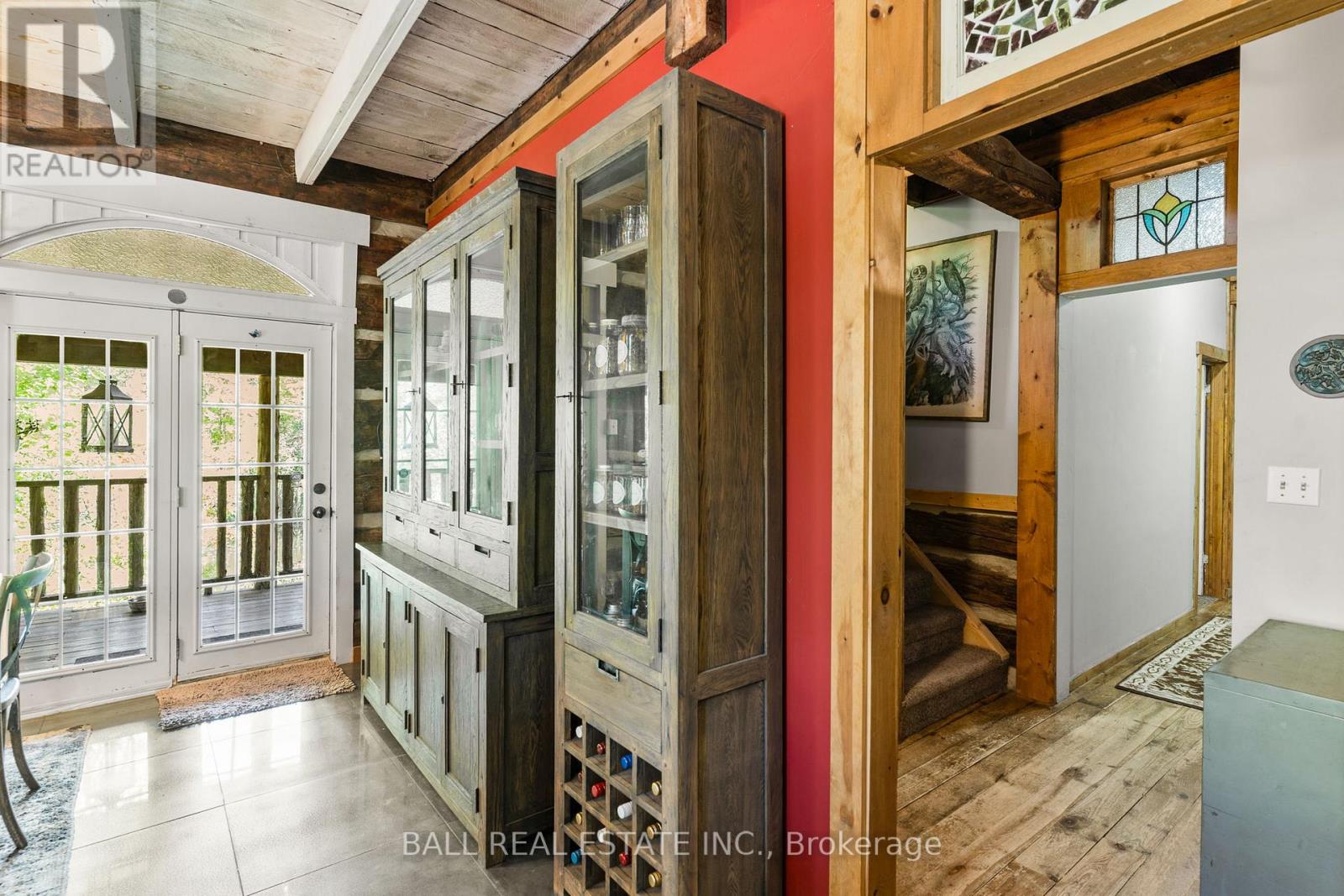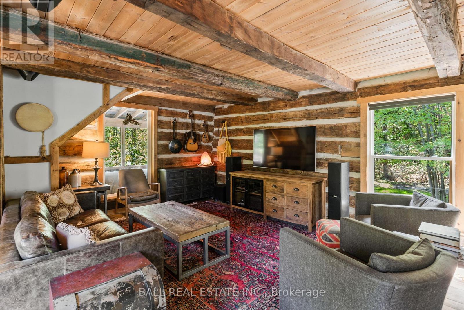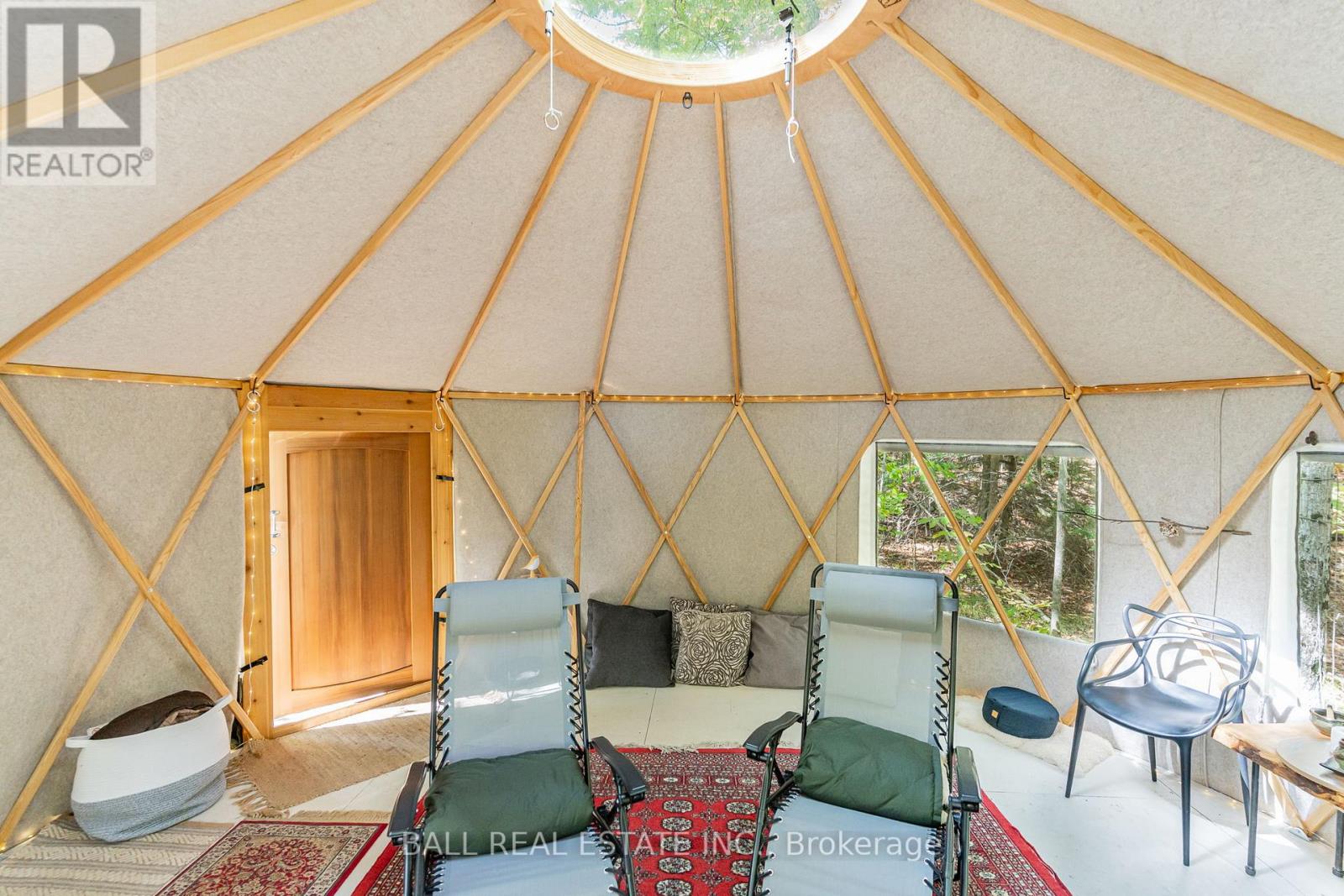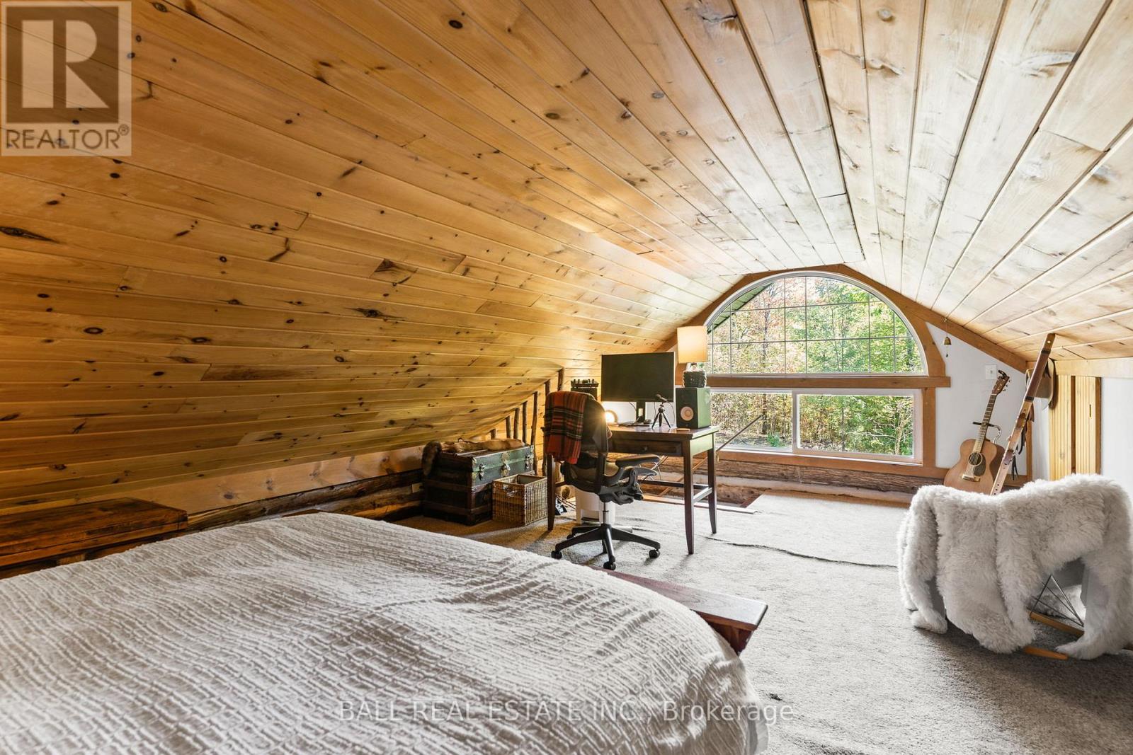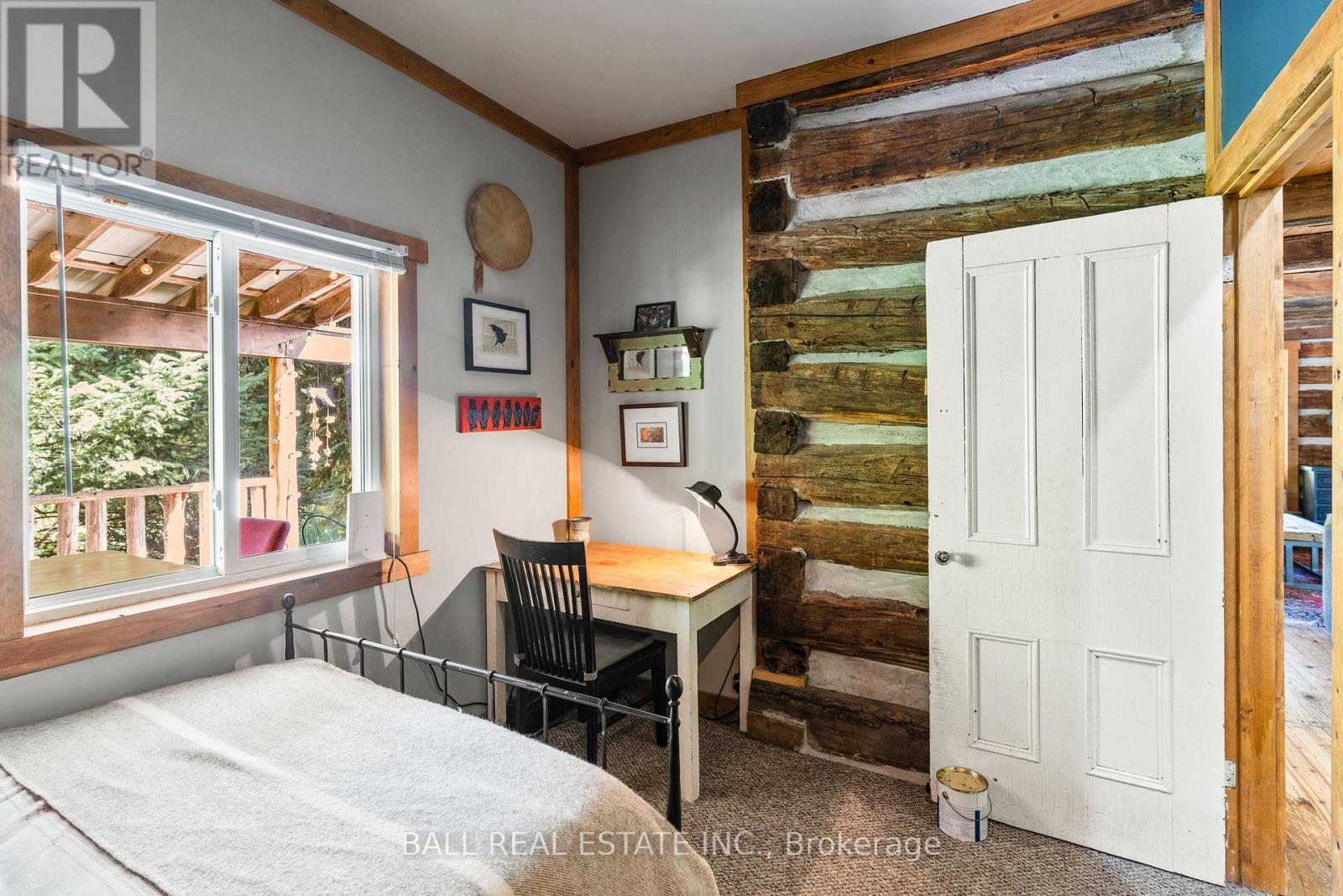 Tucked away on a quiet municipal road just 15 minutes from Bobcaygeon and Buckhorn, this remarkable 15 acre property offers privacy, nature, and a truly one-of-a-kind lifestyle. Featuring forest, winding trails, and tranquil ponds, this is a setting where everyday life slows down and feels connected to the land. At the heart of the property is an original 1836 log cabin, thoughtfully preserved and tastefully updated to balance character with comfort. Enter the bright front porch with ample space, while inside the renovated kitchen showcases a granite waterfall island, ample cabinetry, and an eat-in dining area with walkout to the rear deck overlooking the pond. The main floor also includes a flexible office or bedroom, 4pc bathroom, laundry, and utility space. Upstairs offers 3 additional bedrooms and a 4-piece bath, while the private primary suite enjoys peaceful views across the property. The living room is warm and welcoming, ideal for gatherings. Step outside to experience the true magic of this property. A large deck and screened-in room create effortless indoor-outdoor living, perfect for entertaining or unwinding while surrounded by nature. Multiple fire pit areas invite evenings under the stars. A detached single-car garage with woodstove & storage. Beyond the main home, the property includes several unique retreat spaces: a two-storey log cabin designed for reflection or guests, a second two-storey cabin with living/dining space, bedroom, composting toilet, and outdoor shower, plus a 17' yurt (2022) ideal for meditation, gatherings, or creative use. Serviced with a drilled well, septic system, propane furnace, and water treatment, this property offers rural serenity without sacrificing comfort. Access the Trent Severn Waterway just down the street with the public boat launch, community centre & local marina. (id:64974)