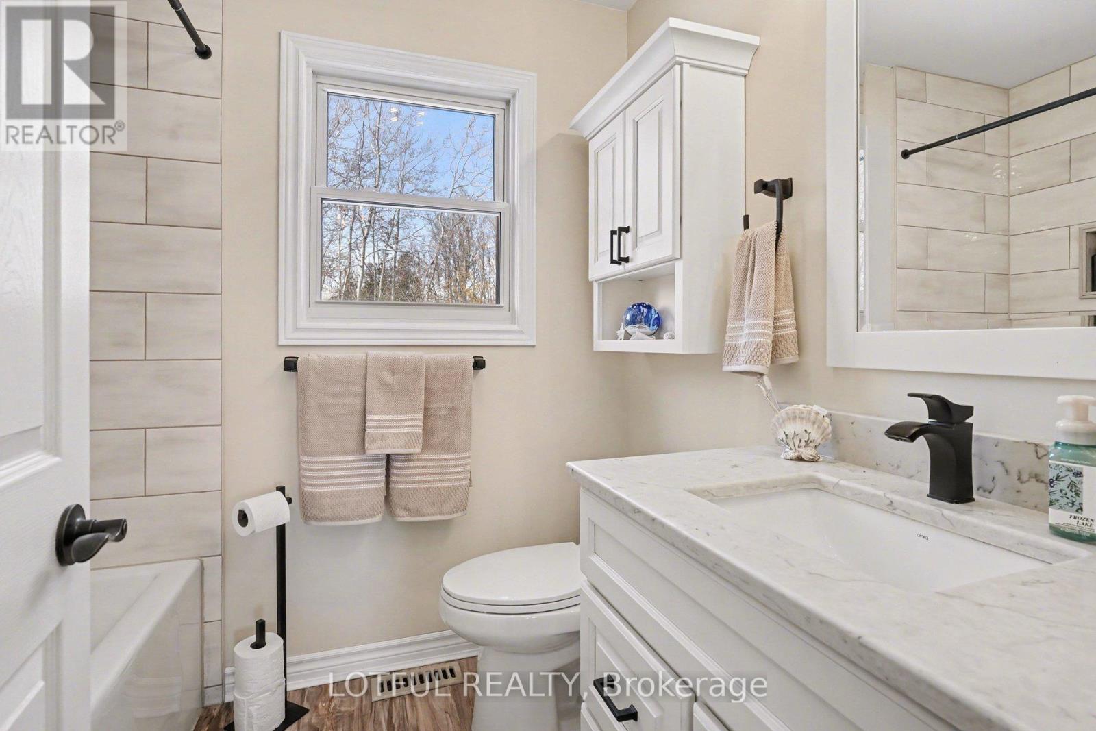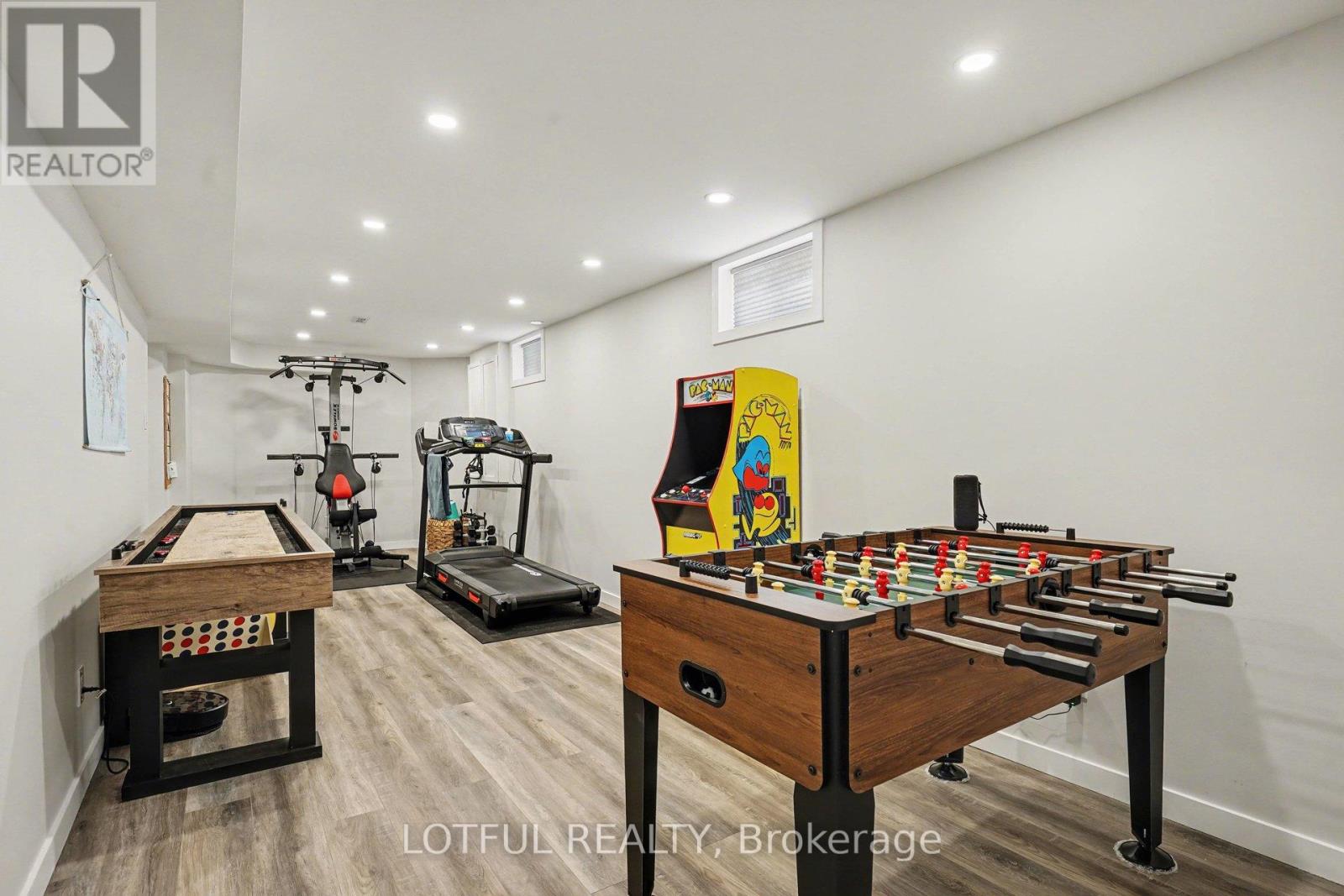 This extensively updated home offers modern finishes, thoughtful renovations, and exceptional living space throughout. The custom kitchen (2019) features high-end KitchenAid appliances, an additional wall oven and microwave, and a functional layout designed for both everyday living and entertaining. All bathrooms have been beautifully renovated - the ensuite (2017), main bath (2019), and powder room (2012).Upstairs, you'll find two generously sized secondary bedrooms and a spacious primary retreat complete with a 3-piece ensuite, along with an additional full bathroom. The finished basement (2025) provides additional versatile living space and includes a rough-in for a future bathroom. Custom laundry (2016) adds convenience and style. Major updates include all windows and exterior front and sliding doors replaced in 2015 (Centennial), furnace, air conditioner and hot water tank (2013), roof (2008), and new eavestroughs with leaf guards (2021). The garage is equipped with a door opener, built-in wooden bench, and upper cabinetry for added storage. Step outside to a truly impressive backyard oasis backing onto the Greenbelt with no rear neighbours on premium pie shaped lot with 75 feet width across the back. Enjoy the expansive interlock patio, a 12x16 wooden gazebo (Yardistry) with screen curtains and roller shades for added privacy, a Tiki bar complete with bar fridge and string lighting, and an 8x10 garden shed. The interlock front walkway enhances the home's curb appeal. A rare opportunity to own a private, turnkey property with exceptional indoor and outdoor living spaces. Come see it today! (id:64974)