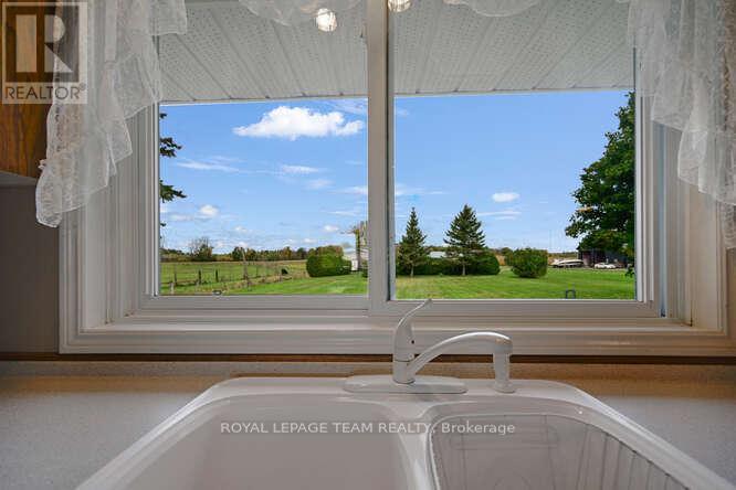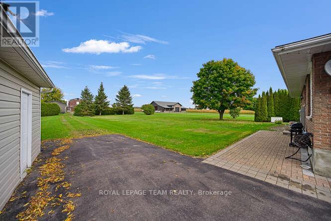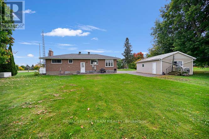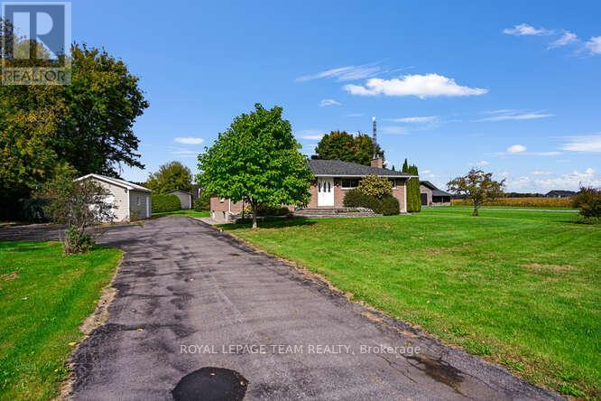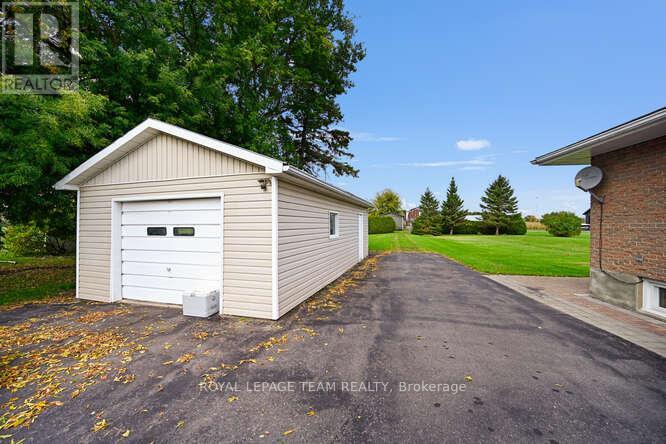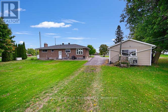 Absolutely lovely country living in a clean and updated brick bungalow. From your kitchen sink enjoy fields of corn as far as the eye can see, and cattle grazing. Close to all major transportation, including the International Bridge. One hour to Ottawa via Hwy 416. Partial River views, near parks, boat launches, and all the Seaway offers. Close to Convenience Store and Gas Mart. Open and renovated kitchen with island, all appliances included . Gleaming hardwood throughout with ceramic accents. 2 large bedrooms. One full bath with whirlpool tub, corner shower, vanity, sink, and the main floor laundry. Basement has one bedroom with natural light , and closets, beautiful ceramic flooring. 2 large Utility rooms. Generous and Warm Family Room, has raised gas stove. Linen closet, entry closet. Security lock. Remote Garage Door on the 16' by 30', steel roofed, one car garage. Clothesline deck and water gather back of garage. Nicely landscaped with interlocking on walkways, flowering shrubs, and raised gardens. New roof 2023, Windows 2015, Furnace and Stove 2017. Generac. All other upgrades found in Documents. 24 Hour Irrevocable. (id:64974)