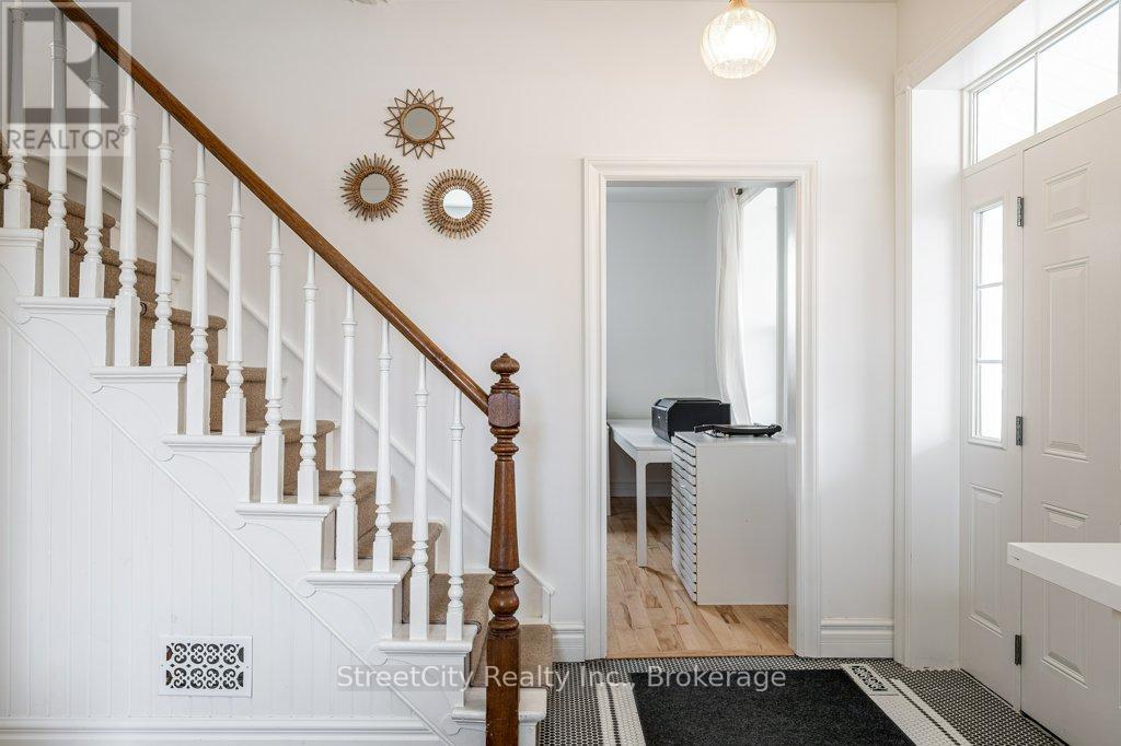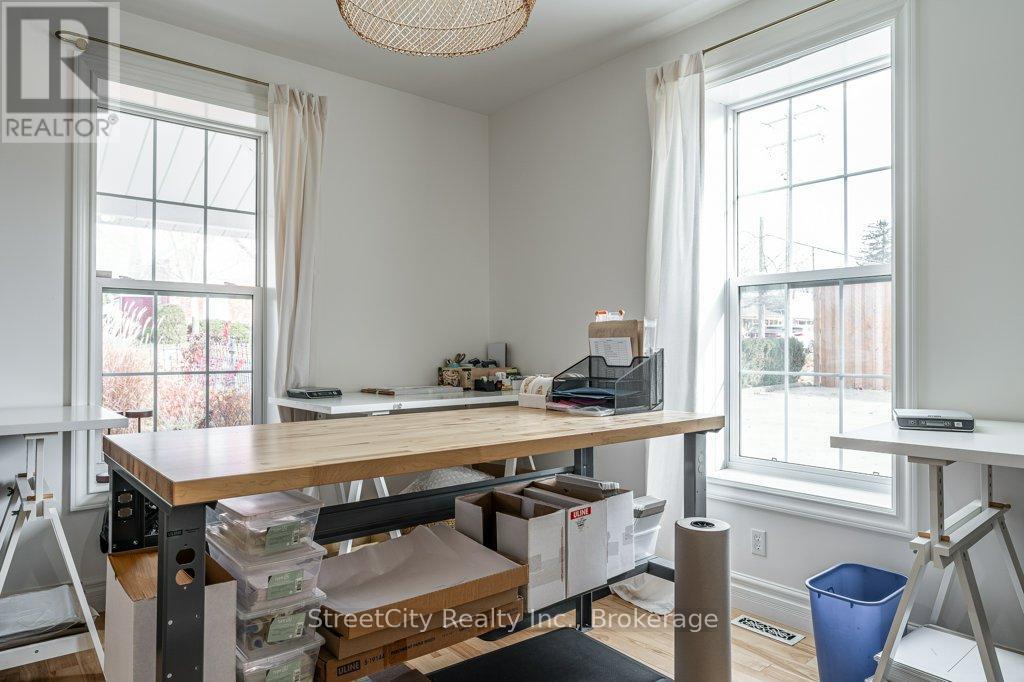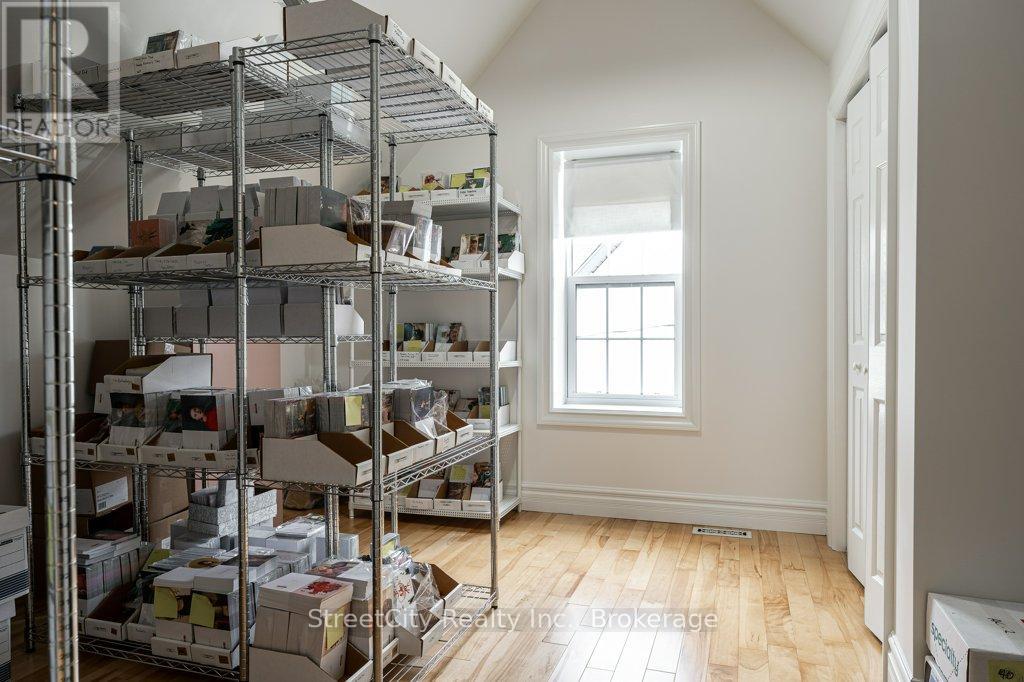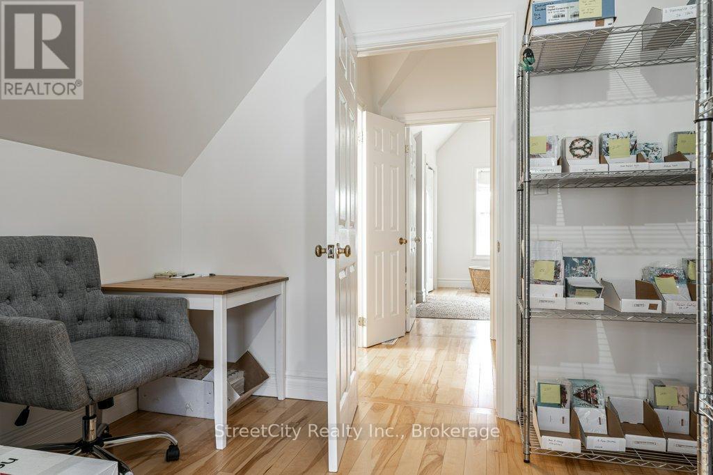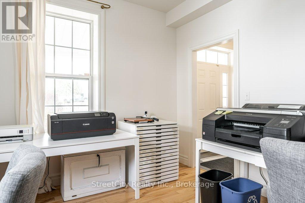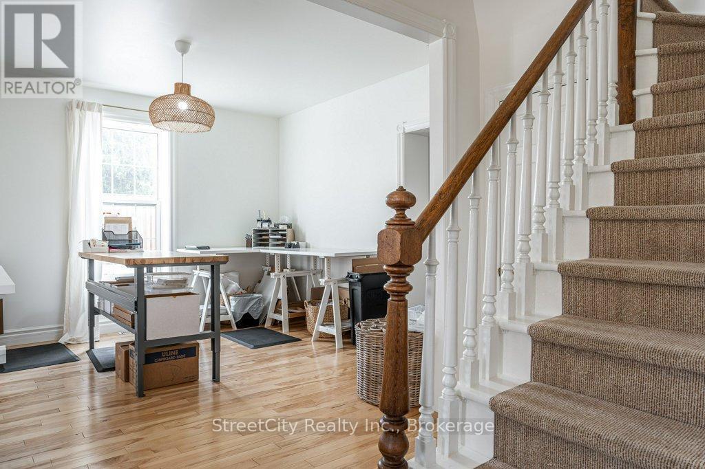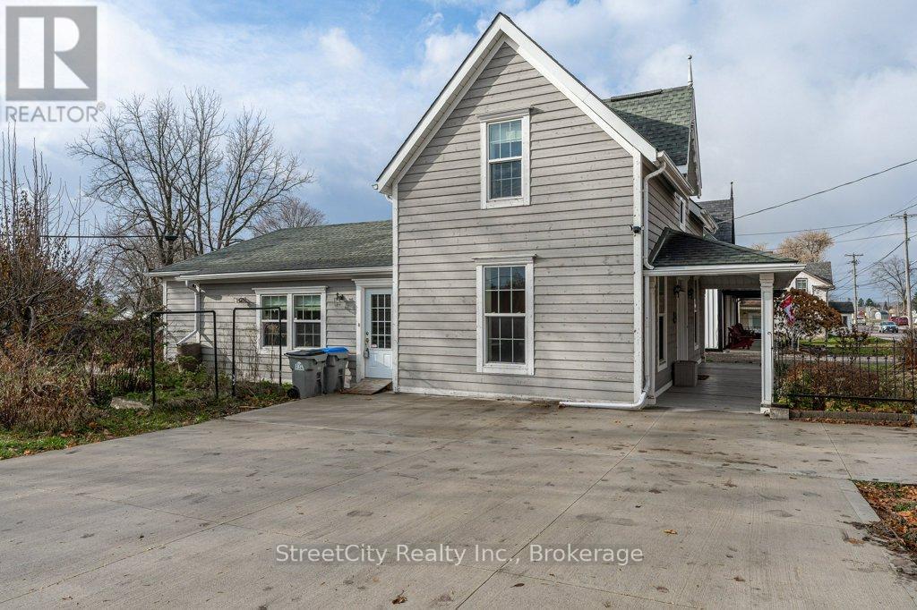 Are you looking for a serene, updated, comfortable and casual commercial space ideally suited for professional office, service or retail? Are you looking for a gorgeous update of a classic century 1.5 storey to make your home? Or are you looking for a perfect affordable work/live space? This charming Shakespeare property checks all of the boxes. Flexible commercial zoning allows for a variety of commercial uses as well as permitted single detached residential use. Phenomenal exposure located on highway corridor between Stratford & Kitchener w/ ample parking in the newly poured concrete driveway/parking area. The interior is freshly renovated throughout w/ numerous updates including spalted maple hardwood flooring, ceramic tile, windows, furnace/AC & more. A flexible interior space offers a traditional floor plan with generous principal rooms on the main level, a large eat-in kitchen w/ island, a 3pc bath, huge mudroom, main floor laundry. The second level offers 2 large bedrooms & a 2 pc bath. The light colour palette and large windows create an airy & bright feel throughout the interior. Oodles of curb appeal w/ traditional wood siding, a welcoming covered front porch (on grade for accessibility), wrought iron fencing encapsulating mature landscaping & gardens, a fenced rear yard w/ raised vegetable gardens & several fruit trees. Ample parking on freshly poured concrete driveway/parking area. Exterior side entry access through the mudroom adds to the versatility of the mixed use potential for the property. An excellent opportunity for a Buyer looking for specific requirements for their commercial property or a Buyer who is looking for a charming, affordable home to make their own. Call for more information or to schedule a private showing. (id:64974)