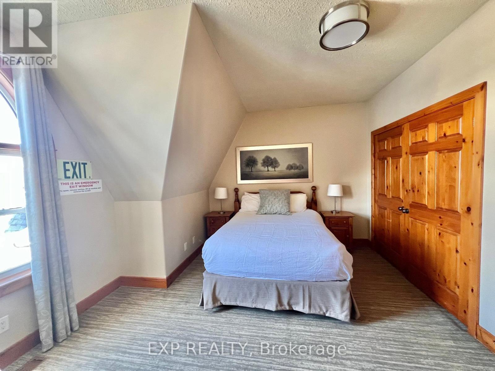 Licensed for Short-Term Rentals! This beautifully designed 2-bedroom, 2-bathroom upper-level condo is located in the highly sought-after Historic Snowbridge community at Blue Mountain Resort. With proven rental performance, it's an ideal opportunity for investors or anyone seeking a four-season retreat. In the winter, enjoy easy access to the ski hills, Blue Mountain Village, and nearby year-round activities. In the summer, take in unobstructed golf course views from the private balcony, primary bedroom, and dining area-perfect for morning coffee or an evening glass of wine. The open-concept layout features soaring vaulted ceilings, oversized windows that flood the space with natural light, and a cozy gas fireplace-ideal for après-ski relaxation. The spacious primary suite includes a private 4-piece ensuite, while the second bedroom and full bath comfortably accommodate family and guests. Additional highlights include in-suite laundry, a dedicated ski locker, and access to a seasonal outdoor pool reserved exclusively for owners and guests. With strong short-term rental demand in the Blue Mountain area, this property seamlessly combines personal enjoyment with reliable income potential. Owners and guests will love the free resort shuttle, offering direct access to Blue Mountain Village, ski hills, restaurants, shops, and nightlife. In the warmer months, enjoy nearby private beaches, championship golf courses, and scenic hiking trails. Whether skiing, hiking, relaxing, or entertaining, Historic Snowbridge delivers the ultimate four-season lifestyle and a proven short-term rental investment.Want this tightened even more for Instagram captions, listing brochures, or a video script? Or should we add numbers (avg nightly rate, occupancy, projected income) to really sell the investment side? (id:64974)