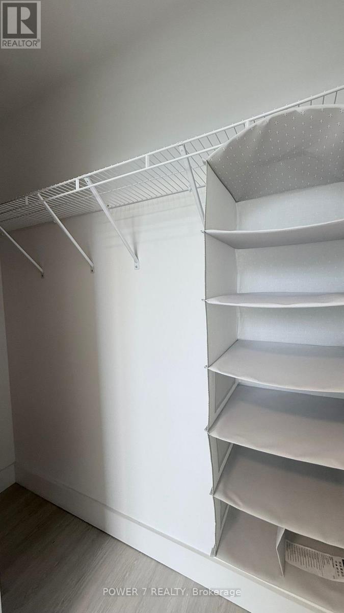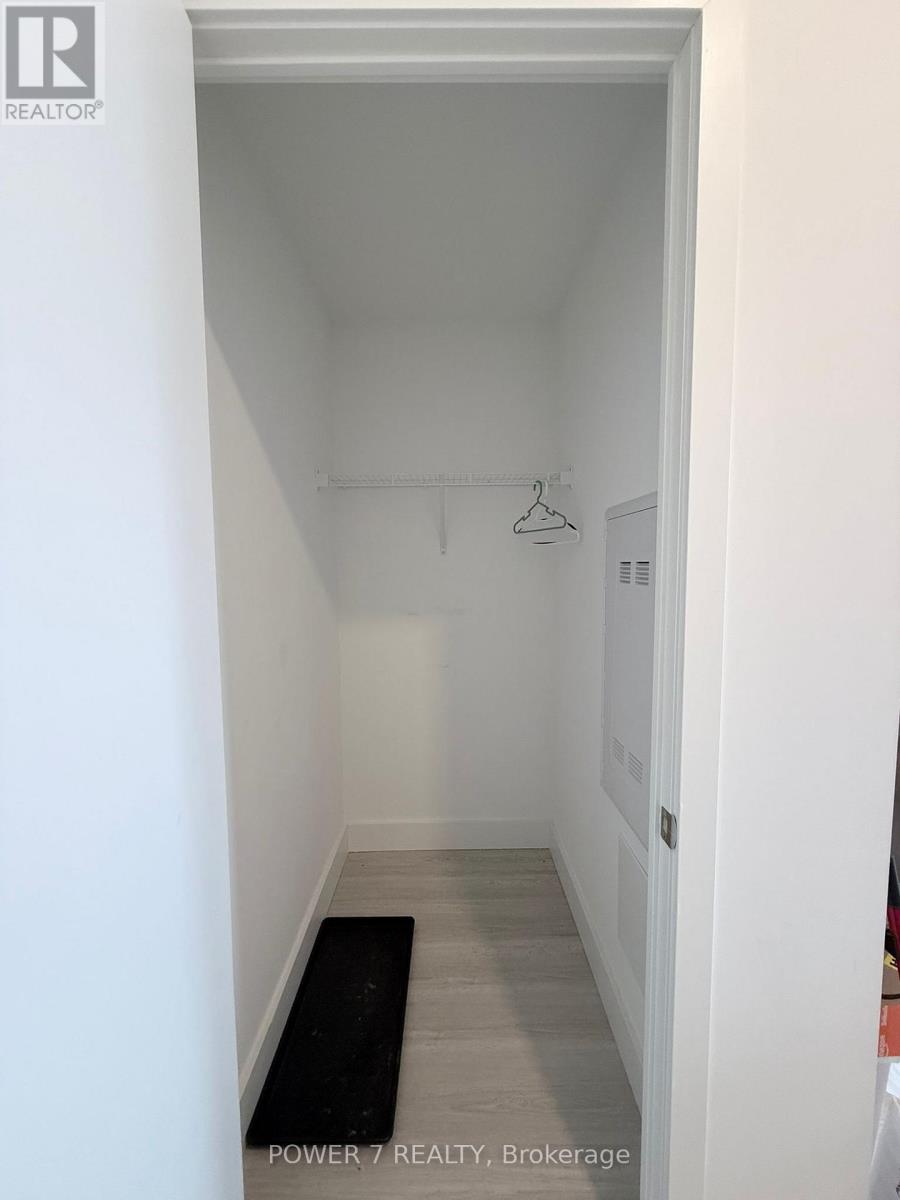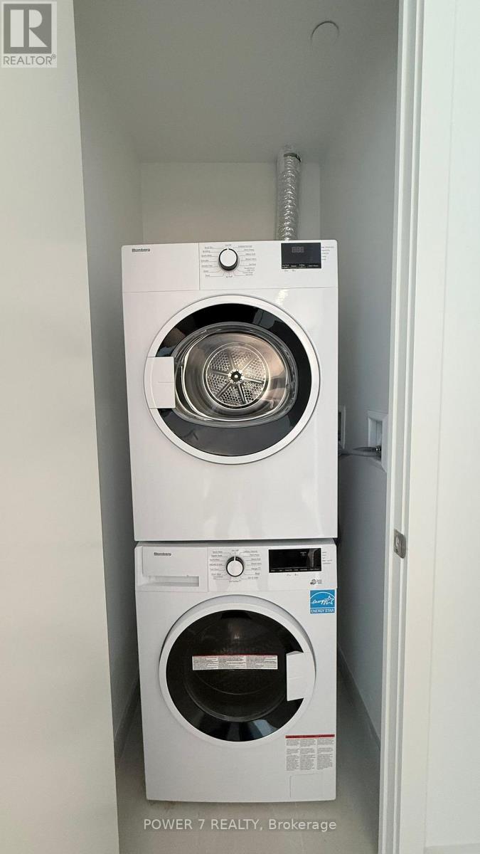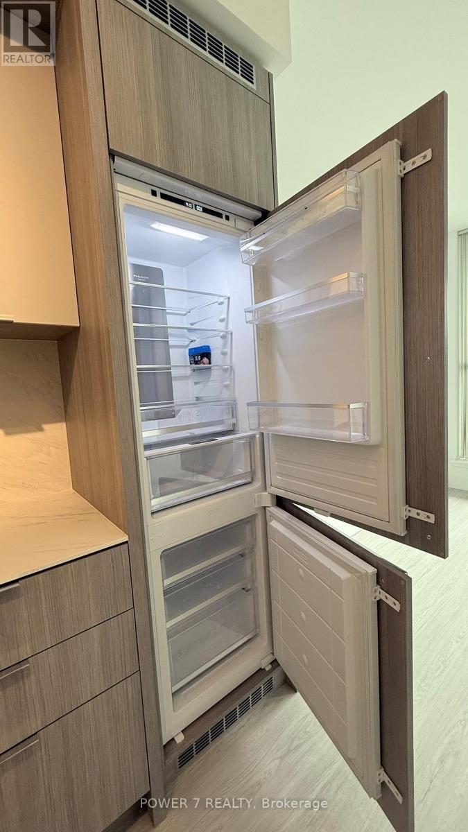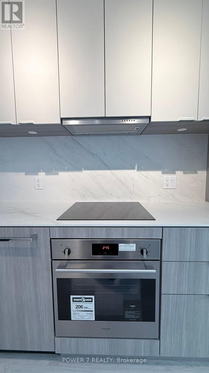 Bayview At The Village - stylish 1-bedroom residence with oversized balcony and upscale finishes. Bright, open-concept 526 sq ft interior with soaring 9-ft ceilings features a sleek integrated kitchen with panelled appliances, quartz counters, and a functional island with breakfast bar. The smart, *efficient* floor plan offers a generous living/dining area with direct walk-out to an impressive 111 sq ft balcony complete with gas line for BBQ, perfect for relaxing or entertaining. Well-proportioned bedroom provides a comfortable retreat, complemented by a separate large linen closet in the foyer. The spacious, spa-inspired bathroom includes an oversized glass shower and contemporary vanity for a luxurious daily routine. Suite also comes with full-size stacked laundry, tall interior doors, and a separate storage area, creating a clean, streamlined living space with no wasted square footage. Residents enjoy exceptional building amenities; fitness centre, party/meeting room, guest suites, 24-hr concierge and more, in a prime location just steps to both Bayview and Bessarion subway stations, Bayview Village Shopping Centre, restaurants, groceries, parks and quick access to Hwy 401 and Hwy 404. (id:64974)