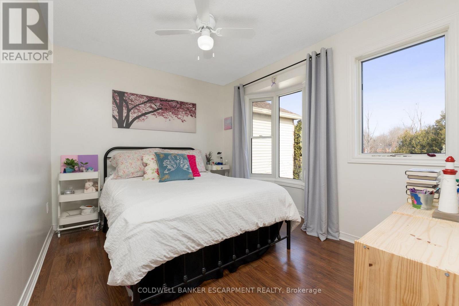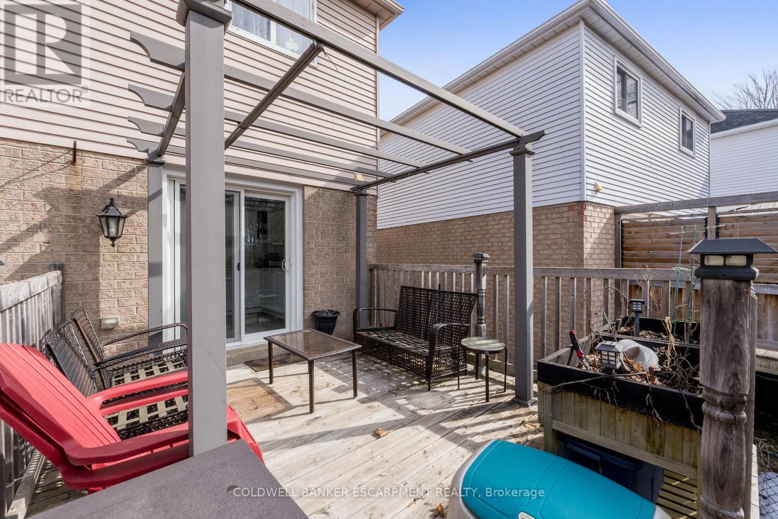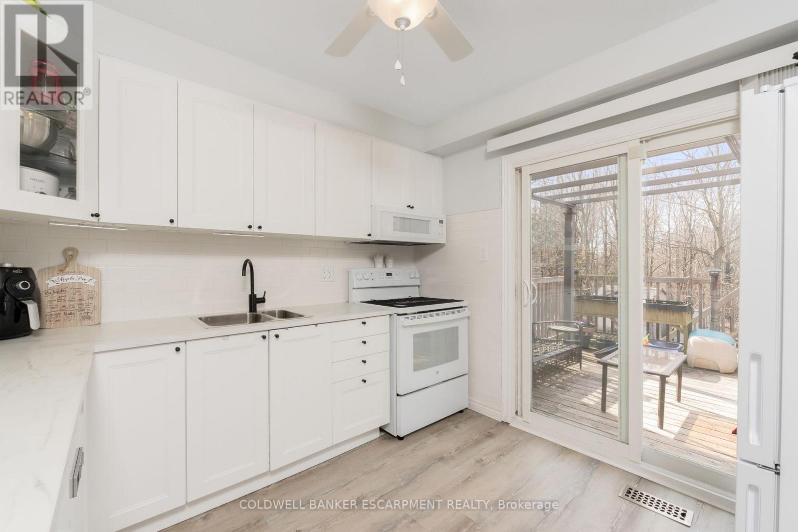 Beautifully renovated 3-bedroom home with no neighbors behind: perfect for starting out, downsizing or starting over! Nothing left to do but unpack and enjoy the compliments! Bright, new kitchen (2024) features crisp white cabinetry, modern white backsplash and lots of cupboard and counterspace. Patio doors lead to backyard deck. Great for barbequing, entertaining or morning coffee! Dining room off the kitchen has a large picture window- a good spot for meals and homework. Spacious living room with bay window overlooking street and renovated powder room off to the side. Main floor has high quality vinyl click floors- low maintenance & scratch resistant- perfect for kids/pets. Upstairs features 3 bedrooms and a beautifully renovated bathroom with white cabinetry and linen tower. The entire home was recently painted in fresh, neutral colors, Newer interior doors and hardware create an upgraded, polished look. Finished basement offers lots of extra living space- perfect for kids, working from home, a home gym, man cave...whatever you'd like! Large backyard is fenced and backs onto treed area. You'll love the privacy, quiet, and the view- especially in the summer and fall. Located in small town Acton within a friendly neighborhood. Walk to multiple schools in minutes. Close to parks, shopping, nature trails, indoor public pool, skate park, and more. One car garage + parking for 2 more cars in driveway. Don't miss out on the opportunity to call this listing "home." Dates: Windows (2017), Front door (2018), Garage door (2018), Main floor flooring (2020), Fridge & stove (2024), Dishwasher (2026), Central air (2018) ** This is a linked property.** (id:64974)
