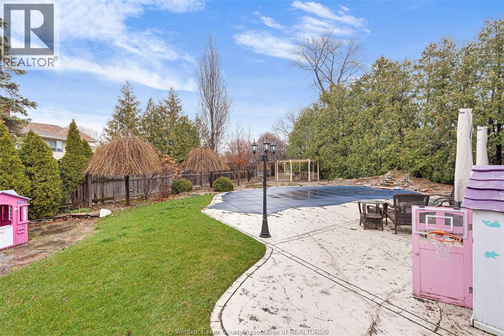 This beautiful home sits on a quiet cul-de-sac in a most desirable Tecumseh neighbourhood. Boasts two main floor living rooms, a dining area, and half bath. Large updated kitchen and 2nd living room with stone fireplace. Backyard oasis features a large i/g heated swimming pool. Upstairs to 4 large bedrooms incl primary bedroom/ensuite and second full bath. The fully finished basement includes laundry/utility/storage, a 3rd living room, and 2 add'l rooms for use as bedrooms/office/gym/etc. Updates include: furnace/AC (2018), sump pump/back up valve (2020), pool liner (2020), pool heater and safety pool cover (2022), tankless water heater (2023), Google nest smart home (smoke detectors, thermostat, doorbell, and security cameras in front/backyards)(2023). Amazing location near wonderful schools, parks, shopping, restaurants. Call L/S for your showing today! (id:64974)