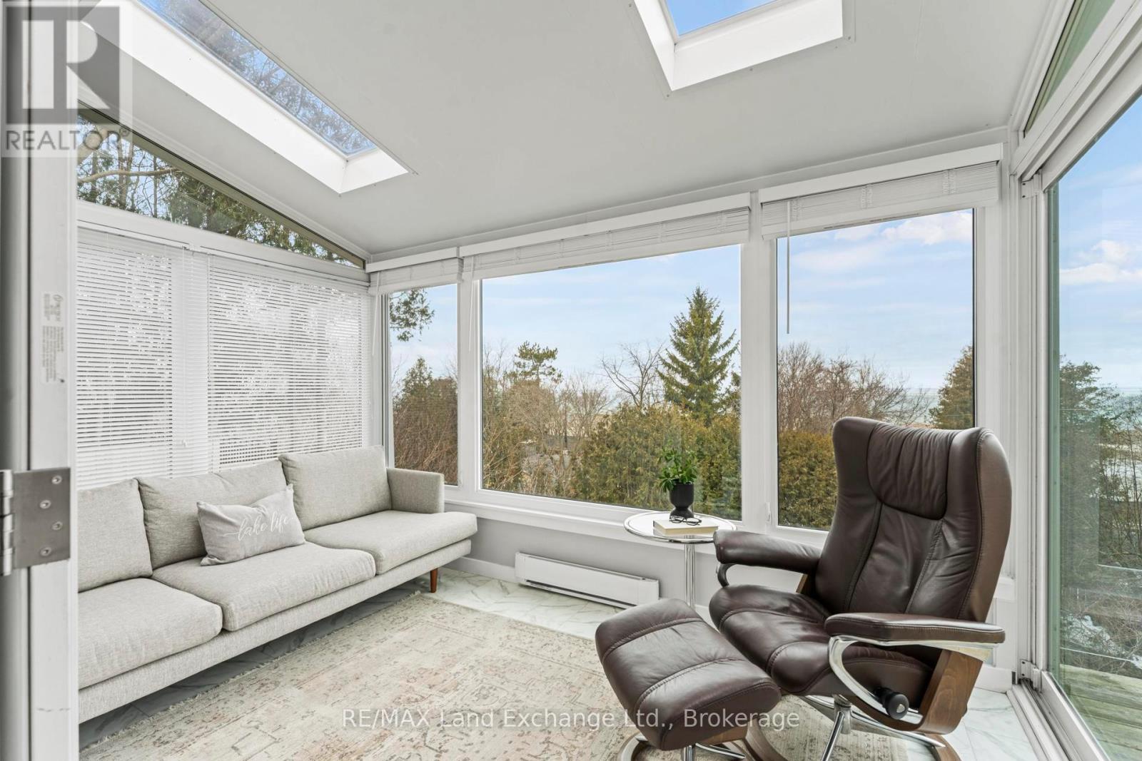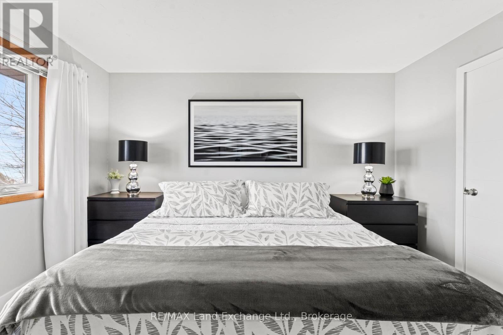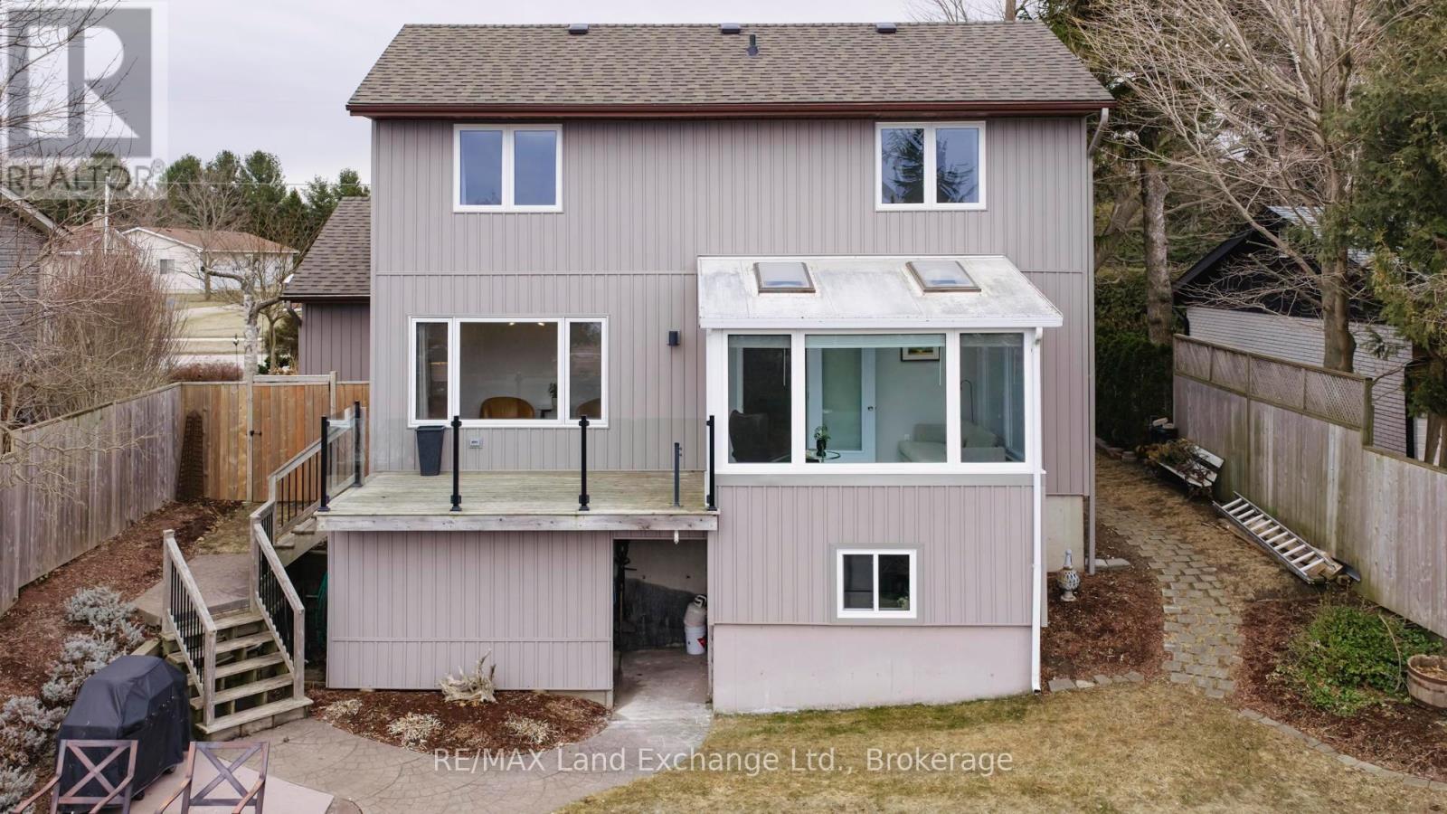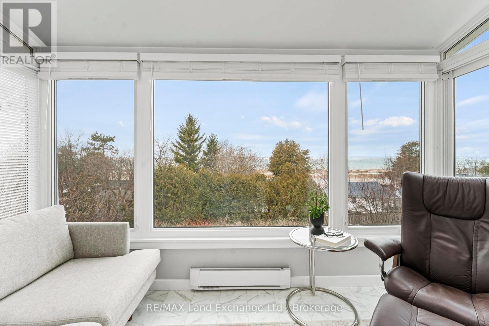 If a lakeside lifestyle beckons you, come home to 222 Penetangore Row in Kincardine! This most desirable year-round home is located on a highly sought after street in Kincardine, close to the sand beach, boardwalk, harbour and downtown shopping. This stylish, contemporary home enjoys breathtaking views of Lake Huron, displaying world-famous sunsets from large bright windows in the cozy sunroom, the comfortable sitting room, or the backyard deck. Upon arrival at the property, you will note the tasteful landscaping and modern facade, and stepping into the foyer you are welcomed by a great room with soaring ceilings, an abundance of windows plus a striking black brick feature wall enhanced by a gas fireplace. The open floor plan further leads to a modern kitchen complete with granite countertops and newer appliances; a dining area and sitting room beautifully complimented by the stunning views; a three-season sunroom which, with 3 walls of windows, allows endless hours enjoying those panoramic views; and a deck from the sunroom on which to relax during those lazy, hazy days of summer. Stairs from the great room lead up to a landing, open to below, and two spacious bedrooms each with those captivating views, plus an updated 4 piece bathroom. The lower level offers a family room complete with newer bar/kitchenette area, 3rd bedroom, office or workout room, new 3 pc bathroom, laundry/utility room and storage/mudroom with walkout to backyard. The home has had many upgrades in recent years including new siding, front door and garage doors; shingles, skylight and windows; bathrooms, hot water tank, upper level doors & trim, and kitchen appliances. Natural gas furnace & A/C 2017. An in-law suite is an option in the basement, with a separate entrance, full bathroom, kitchenette and laundry. Embrace lakeside living and the natural beauty of Kincardine! (id:64974)