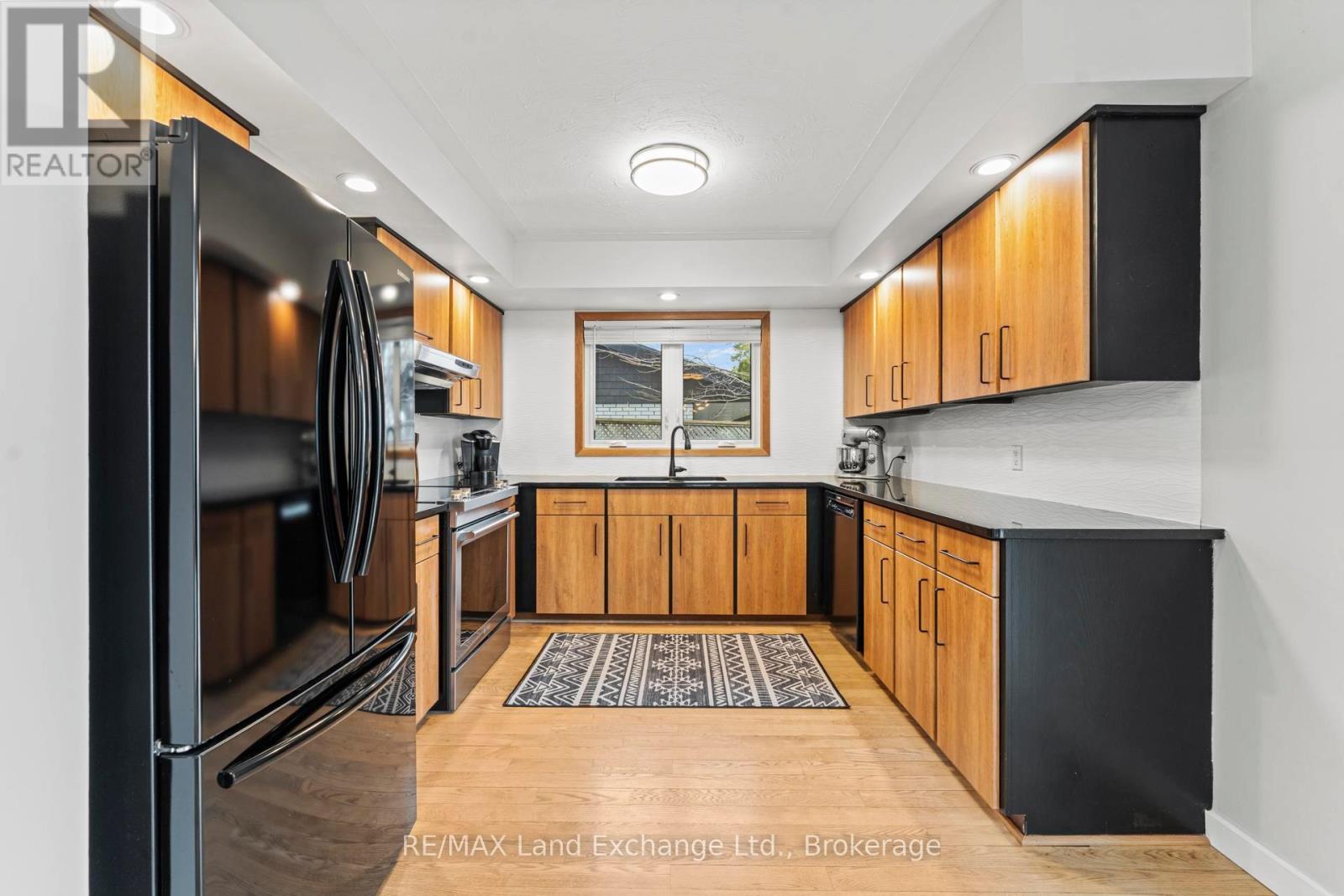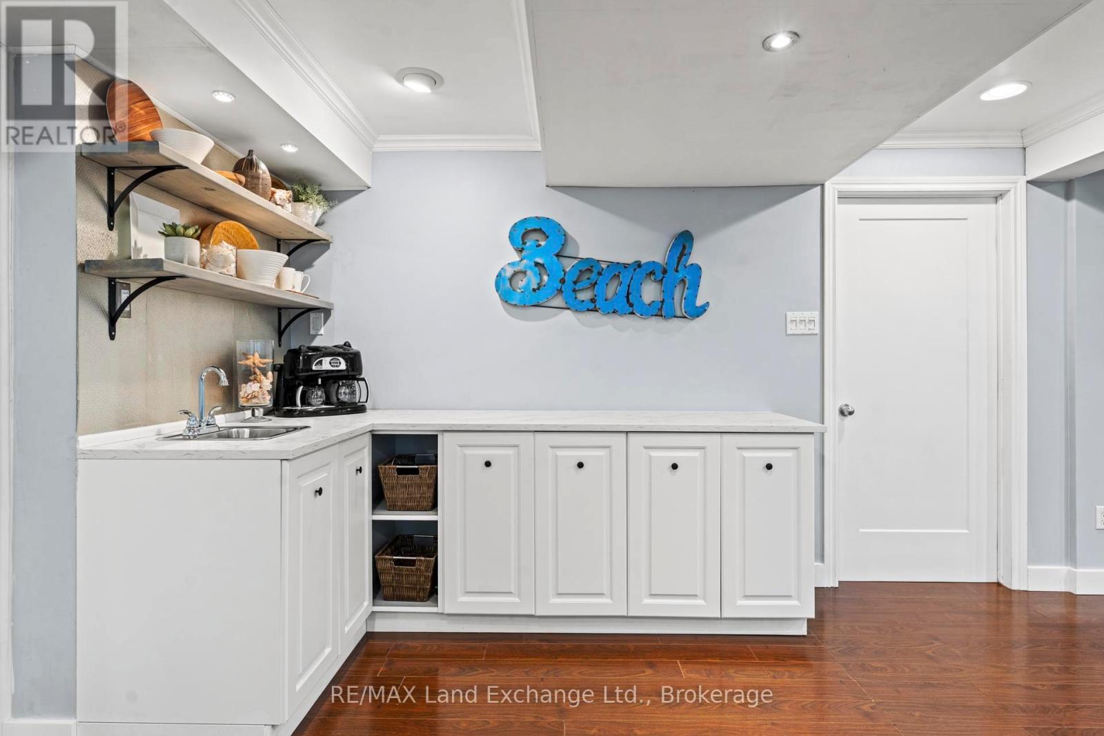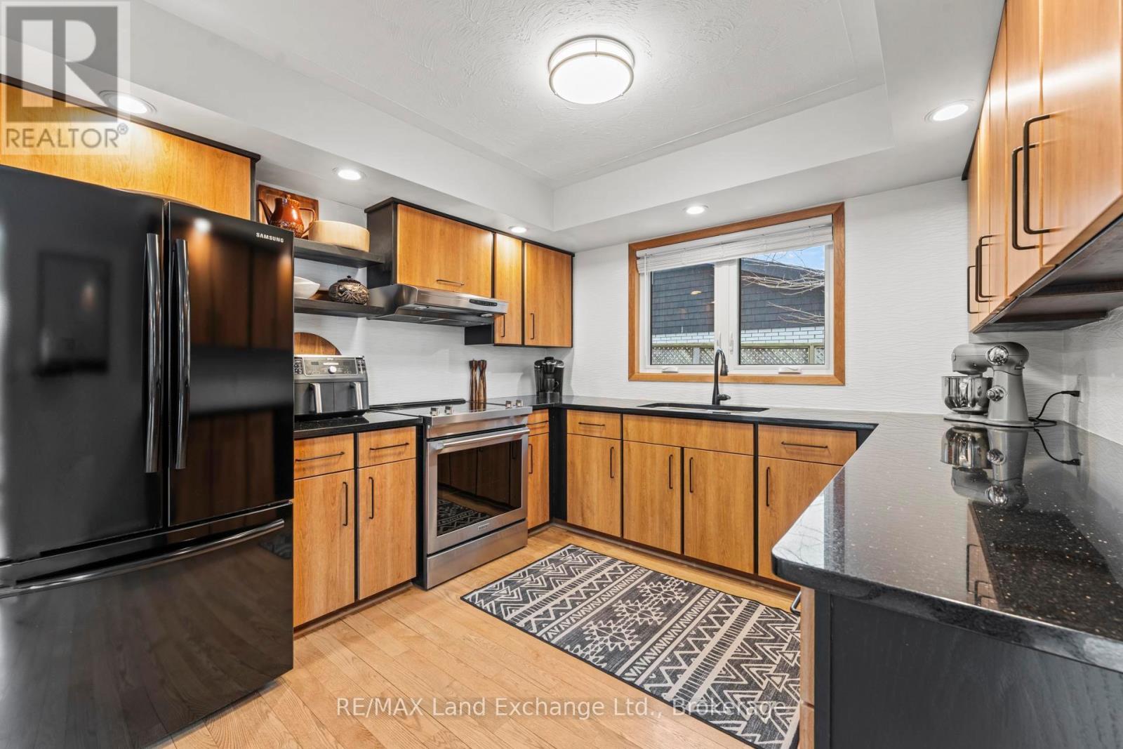 If a lakeside lifestyle beckons you, come home to 222 Penetangore Row in Kincardine! This most desirable year-round home is located on a highly sought after street in Kincardine, close to the sand beach, boardwalk, harbour and downtown shopping. This stylish, contemporary home enjoys breathtaking views of Lake Huron, displaying world-famous sunsets from large bright windows in the cozy sunroom, the comfortable sitting room, or the backyard deck. Upon arrival at the property, you will note the tasteful landscaping and modern facade, and stepping into the foyer you are welcomed by a great room with soaring ceilings, an abundance of windows plus a striking black brick feature wall enhanced by a gas fireplace. The open floor plan further leads to a modern kitchen complete with granite countertops and newer appliances; a dining area and sitting room beautifully complimented by the stunning views; a three-season sunroom which, with 3 walls of windows, allows endless hours enjoying those panoramic views; and a deck from the sunroom on which to relax during those lazy, hazy days of summer. Stairs from the great room lead up to a landing, open to below, and two spacious bedrooms each with those captivating views, plus an updated 4 piece bathroom. The lower level offers a family room complete with newer bar/kitchenette area, 3rd bedroom, office or workout room, new 3 pc bathroom, laundry/utility room and storage/mudroom with walkout to backyard. The home has had many upgrades in recent years including new siding, front door and garage doors; shingles, skylight and windows; bathrooms, hot water tank, upper level doors & trim, and kitchen appliances. Natural gas furnace & A/C 2017. An in-law suite is an option in the basement, with a separate entrance, full bathroom, kitchenette and laundry. Embrace lakeside living and the natural beauty of Kincardine! (id:64974)