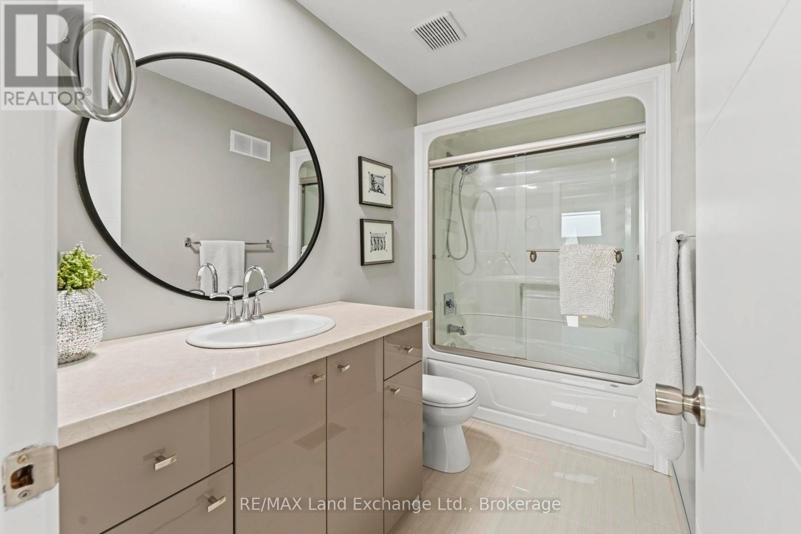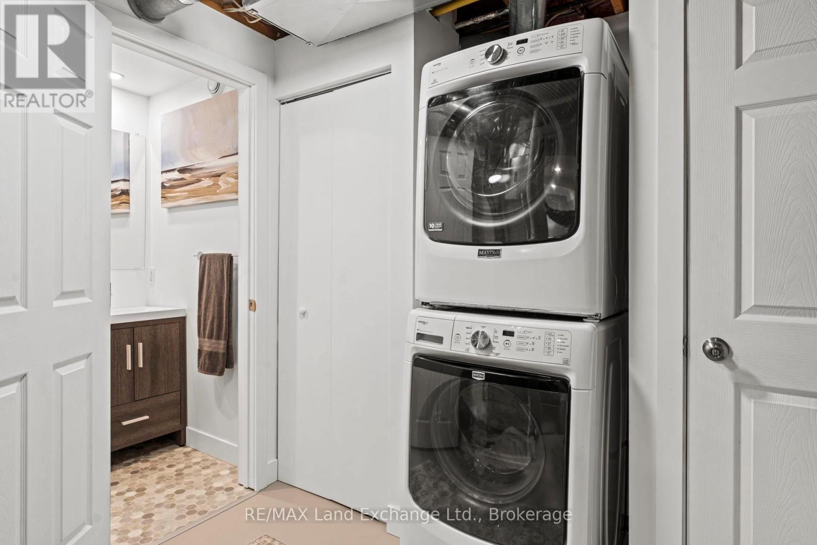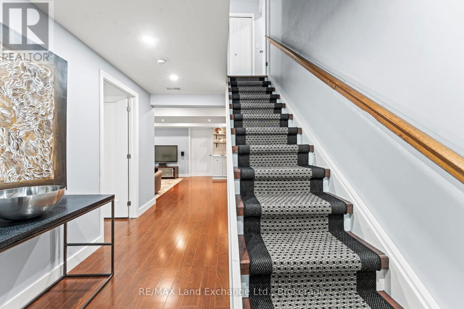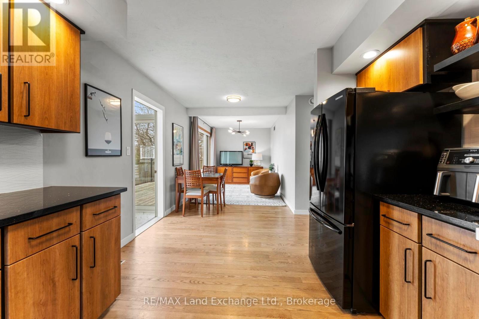 If a lakeside lifestyle beckons you, come home to 222 Penetangore Row in Kincardine! This most desirable year-round home is located on a highly sought after street in Kincardine, close to the sand beach, boardwalk, harbour and downtown shopping. This stylish, contemporary home enjoys breathtaking views of Lake Huron, displaying world-famous sunsets from large bright windows in the cozy sunroom, the comfortable sitting room, or the backyard deck. Upon arrival at the property, you will note the tasteful landscaping and modern facade, and stepping into the foyer you are welcomed by a great room with soaring ceilings, an abundance of windows plus a striking black brick feature wall enhanced by a gas fireplace. The open floor plan further leads to a modern kitchen complete with granite countertops and newer appliances; a dining area and sitting room beautifully complimented by the stunning views; a three-season sunroom which, with 3 walls of windows, allows endless hours enjoying those panoramic views; and a deck from the sunroom on which to relax during those lazy, hazy days of summer. Stairs from the great room lead up to a landing, open to below, and two spacious bedrooms each with those captivating views, plus an updated 4 piece bathroom. The lower level offers a family room complete with newer bar/kitchenette area, 3rd bedroom, office or workout room, new 3 pc bathroom, laundry/utility room and storage/mudroom with walkout to backyard. The home has had many upgrades in recent years including new siding, front door and garage doors; shingles, skylight and windows; bathrooms, hot water tank, upper level doors & trim, and kitchen appliances. Natural gas furnace & A/C 2017. An in-law suite is an option in the basement, with a separate entrance, full bathroom, kitchenette and laundry. Embrace lakeside living and the natural beauty of Kincardine! (id:64974)