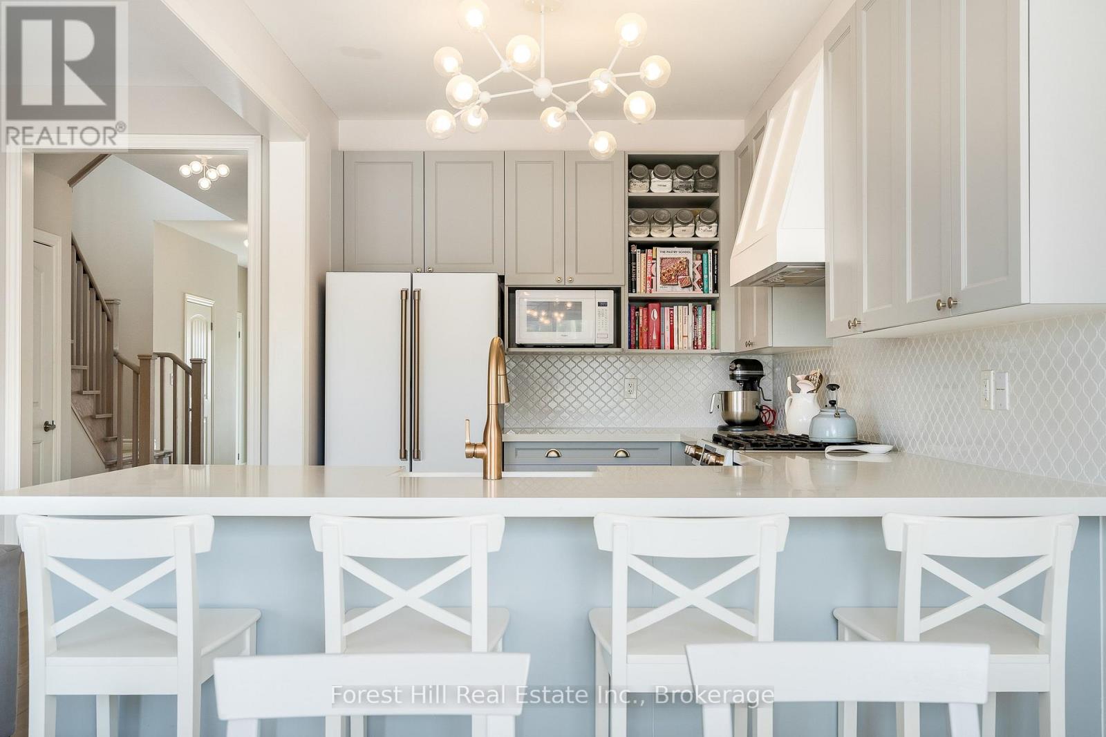 Welcome to 222 Springfield Crescent, a beautifully upgraded all-brick home in one of Stayner's growing family-friendly communities. Set on a massive premium pie-shaped lot, one of the largest in the neighbourhood, this sun-filled 3-bedroom home offers rare privacy with no rear neighbours, peaceful pond views, and a backyard that feels truly serene. Inside, the open-concept main floor features 9-foot ceilings, main floor laundry, a cozy gas fireplace, and over $100,000 in custom upgrades throughout. The stunning customized kitchen is a true showpiece, complete with extended quartz countertops, custom cabinetry, a gas stove, matte white GE Café appliances with brushed bronze hardware, and a custom hood fan. Upstairs, the spacious primary suite features a walk-in closet and a luxurious 5-piece ensuite with a deep soaker tub and glass shower. All of this is set in a peaceful small-town location with convenient access to schools, amenities, Wasaga Beach, Collingwood, Blue Mountain, Barrie, and everything this four-season region has to offer. (id:64974)