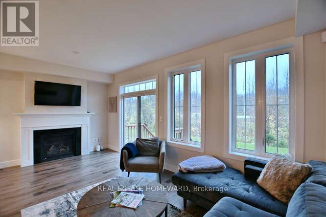 FULLY FURNISHED, DECORATED AND COMPLETELY TURN-KEY WITH INCREDIBLE MOUNTAIN VIEWS OF BLUE MOUNTAIN'S SKI HILLS!! Premium Lot backing onto Georgian's tree-lined trails. WALKING DISTANCE to the Blue Mountains Orchard Chairlift! Exclusive access to The Shed," an exclusive recreation clubhouse with hot and cold pools, sauna, gym and party room. Sought after "MOWAT Model" featuring three spacious bedrooms, three and a half stylish bathrooms, all showcasing exceptional craftsmanship and thoughtful upgrades. Gas fireplaces are perfect for cozy nights in. BBQ hooked with gas line on deck is for you to enjoy. Upstairs you will love spa-like ensuite which features a soaker tub, glass shower, double sinks and custom blinds. Upstairs bedrooms have two queen sizes and a bunkbed. Over 2000 sqft of beautifully designed interior enhanced by Seller furniture and decor with many upgrades including coffered ceiling, fully finished basement with a 3 pc bathroom, 2 gas fireplaces, open staircase, wired for outdoor speakers & hot tub, 200 AMP electrical service, granite countertops, Samsung & Bosch stainless steel appliances including 5 burner gas stove, upgraded flooring. Walking distance to ski lifts, Village, golf course, fine dining restaurants, shopping, trails and much more! (id:64974)