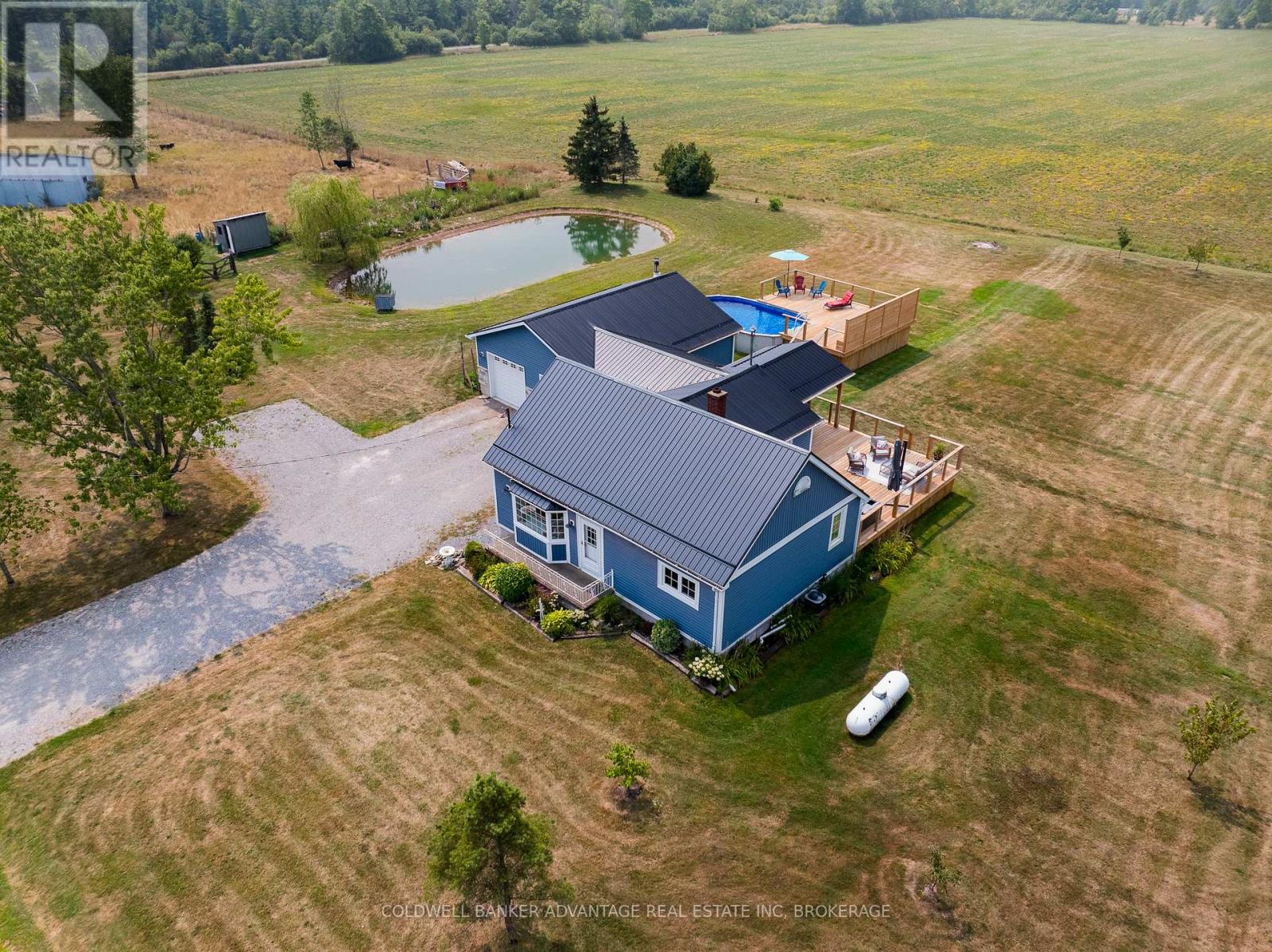 CHARMING COUNTRY RETREAT! Welcome to your private slice of paradise! Nestled in peaceful Stevensville, this charming 3 bedroom home offers the perfect blend of comfort, space, and natural beauty all set on an expansive 22-acre lot. Step inside and you'll find a cozy yet spacious interior, perfect for family living or a peaceful rural getaway. The heart of the home features a large living area, ideal for gatherings and entertaining. Large windows fill the space with natural light and offer stunning views of the surrounding property. Out back, a large deck extends your living space into the great outdoors, perfect for morning coffee, summer barbecues, or simply relaxing while watching the sun set over your private acreage. Outside, the possibilities are endless. With 22 acres of manicured lawn, pasture, farmable land, a nice pond, a 28'x32' garage and 12'x30' barn, this property is perfect for hobby farming, outdoor recreation, or simply enjoying the peace and privacy of rural living. Located not far from town amenities yet far enough away to feel like a true escape, this country gem wont last long! (id:64974)