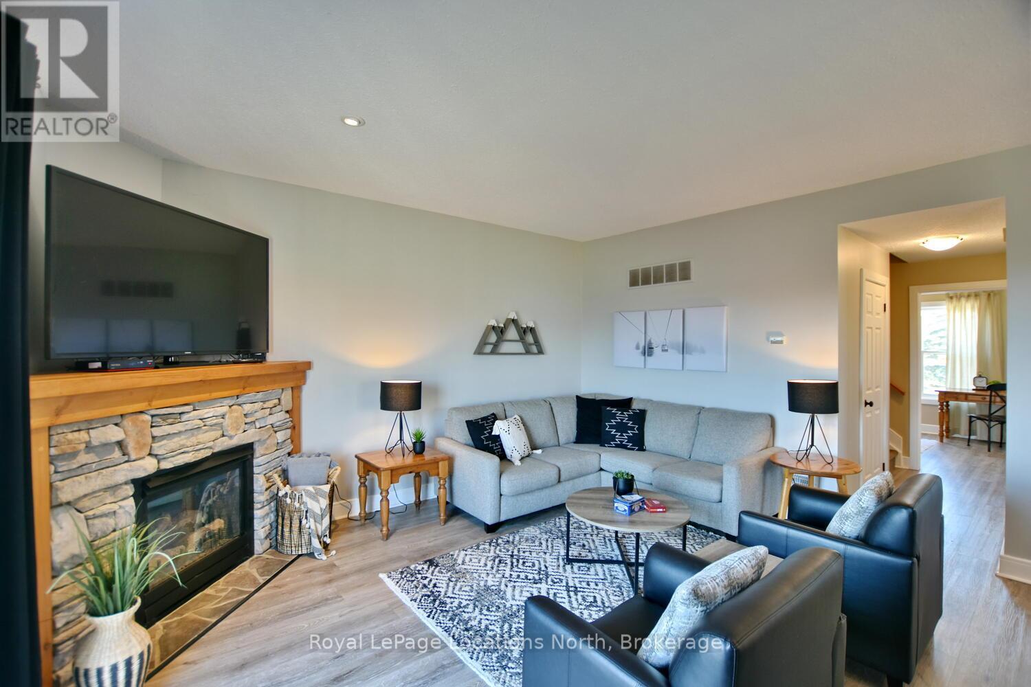 Welcome to Historic Snowbridge! This beautifully updated & fully furnished 3-bed, 2-bath end-unit condo offers stunning views of Blue Mountain, the golf course, & Georgian Bay. Zoned for Short-Term Accommodation (STA) & already a successful Airbnb with glowing reviews, this turnkey property is ready for the summer season; ideal as a vacation retreat, income-generating investment, or both. Inside, the unit showcases chalet-inspired charm with tasteful pine accents, vaulted ceilings, & a warm, inviting ambiance that makes it feel like a true home away from home. The open-concept main floor features a spacious living room with a cozy gas fireplace, a well-appointed kitchen, & a generous dining area perfect for entertaining. Also on the main level is a full bath & a comfortable guest bedroom. Upstairs, you'll find the oversized primary suite with a luxurious ensuite bath, as well as a 3rd bed, perfect for families or groups. As an end unit, this condo benefits from extra natural light & a thoughtful layout that enhances privacy & flow. With sleeping accommodations for 8+ guests & a track record of strong rental income, this property checks all the boxes for savvy buyers. Located in one of Blue Mountains most prestigious communities, you'll enjoy seasonal access to a private outdoor pool, beautifully maintained walking trails, & convenient shuttle service to the Village; just a 10-min stroll away. Owners also benefit from exclusive Blue Mountain Resort privileges. This is a rare opportunity to own a piece of the 4-season lifestyle at its finest. Whether you're hitting the slopes, playing a round of golf, or enjoying the bay views with your morning coffee, Snowbridge offers a perfect blend of relaxation, recreation, & revenue potential. Just bring your suitcase; everything else is already here! Currently licensed for short-term rentals. Used recreationally by current owners & also in a rental program to offset ownership costs. Don't miss out on this exceptional property!! (id:64974)