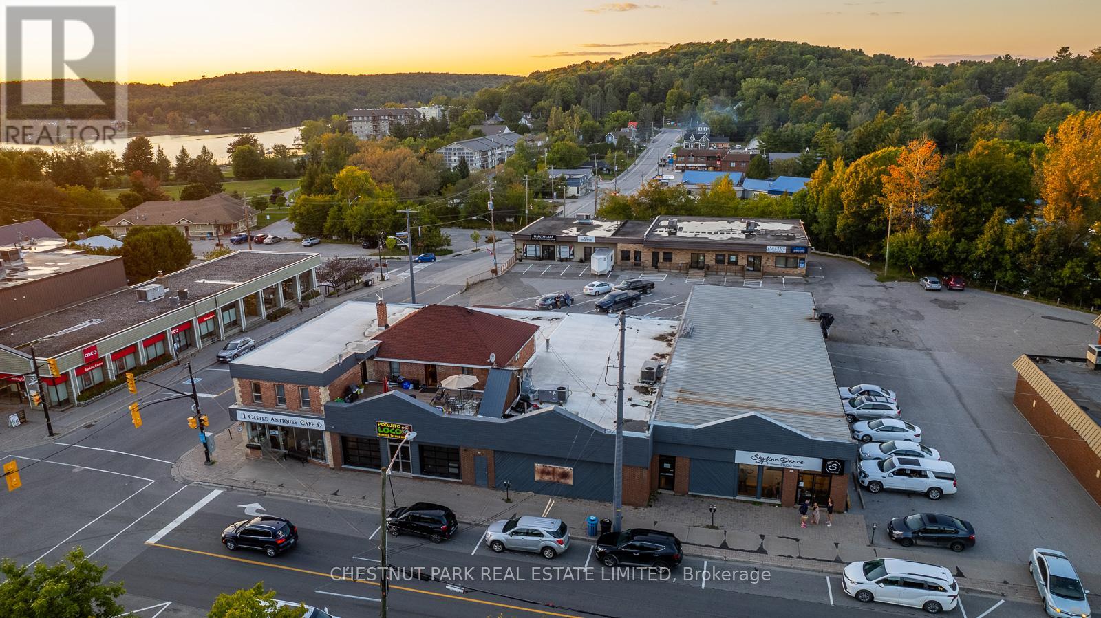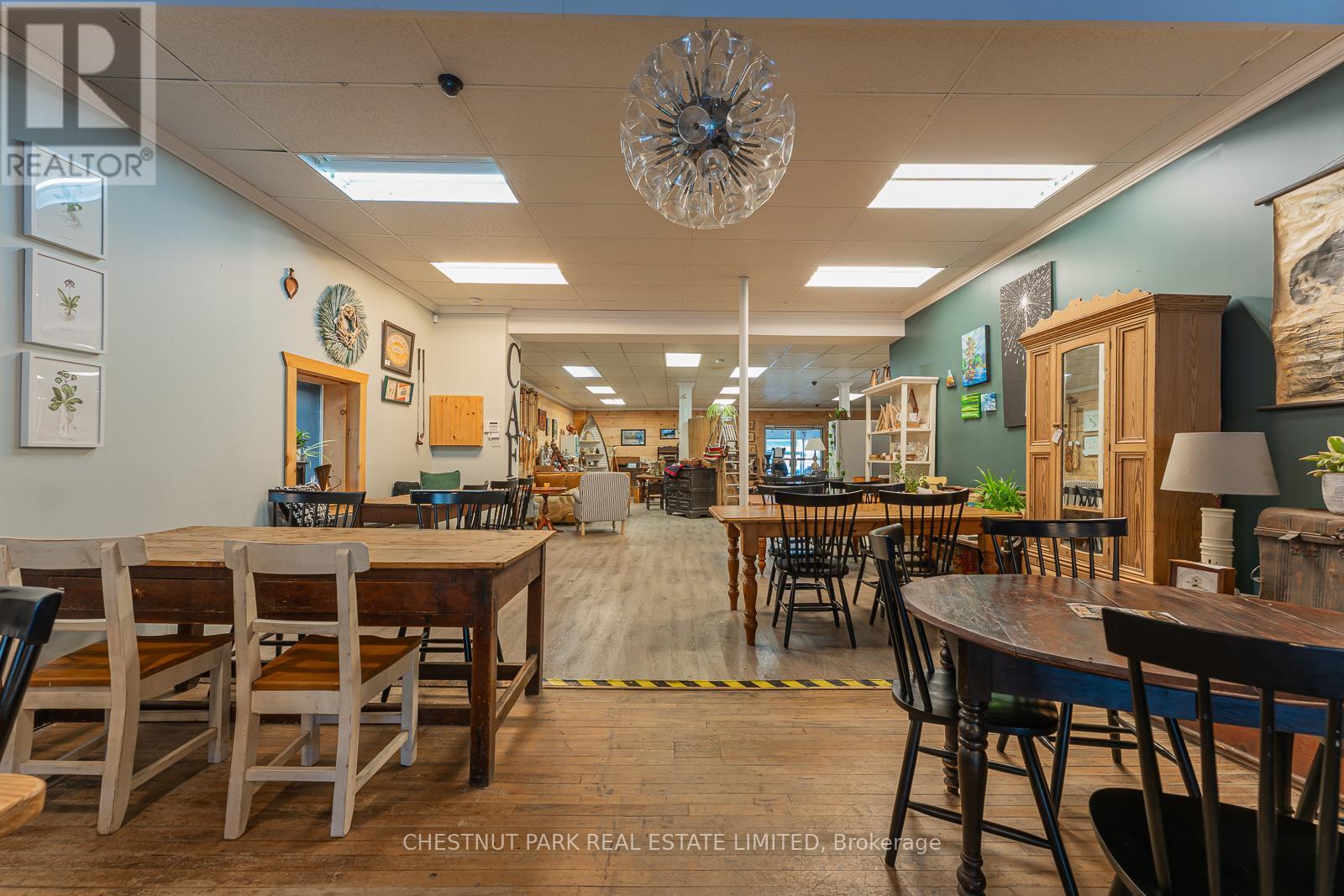 Located in the heart of Haliburton, this prime commercial property offers unmatched visibility, flexibility, and opportunity. Perfectly positioned on a major thoroughfare, it delivers the exposure and scale your business needs to thrive in this growing community. With more than 12,000 sq. ft. of combined retail and café space, the main level provides a true blank canvas, featuring an open-concept layout and endless customization options. The additional 10,000 sq. ft. on the lower level supports a wide range of commercial uses, adding even more versatility. Recent building updates and renovations allow you to focus on business rather than repairs. Multiple income streams make this a smart investment: two apartments provide steady rental revenue, while a popular local eatery and an established on-site dance studio contribute additional reliable income. Beyond its financial upside, the property serves as a community hub. The café, retail space, and studio are already woven into the fabric of Haliburton, offering built-in traffic and a loyal customer base. Situated on two separately deeded parcels, the property also presents exciting opportunities for expansion, redevelopment, or future resale. Whether you're expanding an existing business, launching a new venture, or seeking a strong commercial investment, this offering stands out as a rare opportunity in one of Haliburton's most dynamic locations. Find out how you can explore the full potential this property offers. (id:64974)