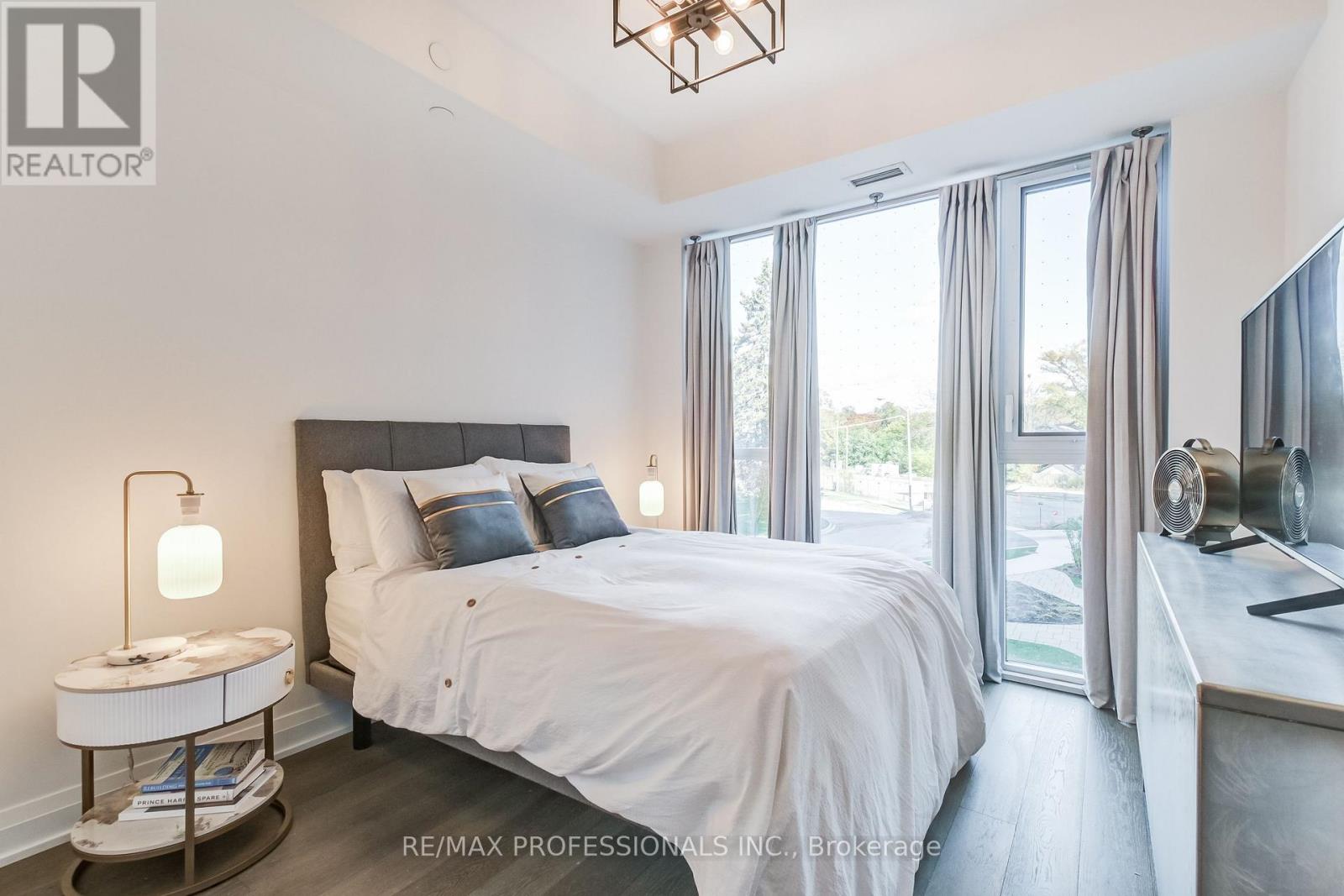 Step into this beautifully designed 2-bedroom, 2-bathroom condo offering a functional split layout and timeless finishes. The primary suite features a 3-piece ensuite and a walk-in closet, second bedroom with double wide closet and easy access to the full second bath. Impeccably maintained with 9-foot ceilings, wide-plank engineered wood flooring, smooth ceilings, and a bright east-facing view over the courtyard. The modern kitchen boasts Caesarstone counters, a backsplash, centre island, and stainless steel appliances. Designed by the award-winning Quadrangle Architects, the building offers exceptional amenities. State-of-the-art, 3,420 sq ft fitness studio was conceived, planned and equipped by Matt Nichol, a world-renowned strength and conditioning coach. Enjoy the outdoors from the expansive rooftop terrace with breathtaking views of the neighbouring green space. With a firepit, gazebo, trellis, and lounge-style seating, it's the perfect place to host a party. Additional amenities include social and lifestyle spaces curated by Patton Design Studio - a Dining Room with a caterer's kitchen, party room, a games area with billiards and foosball, pet wash station, and guest suites. Welcome to 293 The Kingsway, an address of distinction. (id:64974)