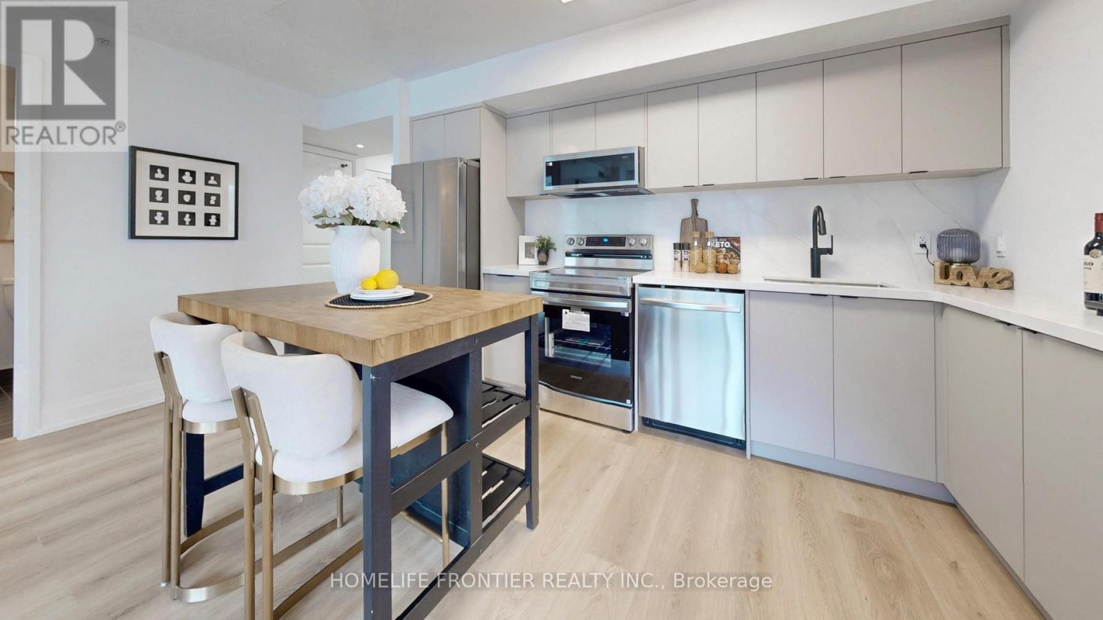 Located in one of Richmond Hill's most sought after neighbourhoods, this newly renovated 2-bedroom 2-bath corner suite offers the perfect blend of style, comfort, and convenience. Recent upgrades include a custom kitchen (end of 2025), extra wide 9" vinyl plank flooring (end of 2025), stainless steel kitchen appliances (end of 2025), front loading washer and dryer (end of 2024), and new LED ceiling light fixtures. Abundant natural light fills the open concept living and dining areas, creating an inviting space ideal for gatherings and entertaining. The beautifully renovated new kitchen features extended lower cabinetry, sleek quartz countertops, a matching quartz backsplash, under-valance lighting, soft closing doors, new sink and faucet. The primary bedroom boasts windows on two sides and a 3-piece ensuite with a walk-in shower stall. The thoughtful split bedroom layout ensures privacy, while additional highlights include a private balcony with view of a parkette, two full bathrooms with marble vanity tops, roller blinds throughout, and fresh paint. The suite is positioned on the quiet side of the complex, and it comes with one underground parking space and one locker for added storage. Building amenities features as an exercise room, party room, 24-hour concierge, and both surface and underground visitor parking. Its unbeatable location offers exceptional everyday convenience: Viva and York Transit at your doorstep, walking distance to plazas, banks, medical offices, shops, and restaurants, and just minutes to Highways 407 & 404, the bus terminal, and GO Station. The property is also situated within St. Robert Catholic High School catchment area. Don't miss this opportunity to own a truly move in ready condo in a prime Richmond Hill location! (id:64974)