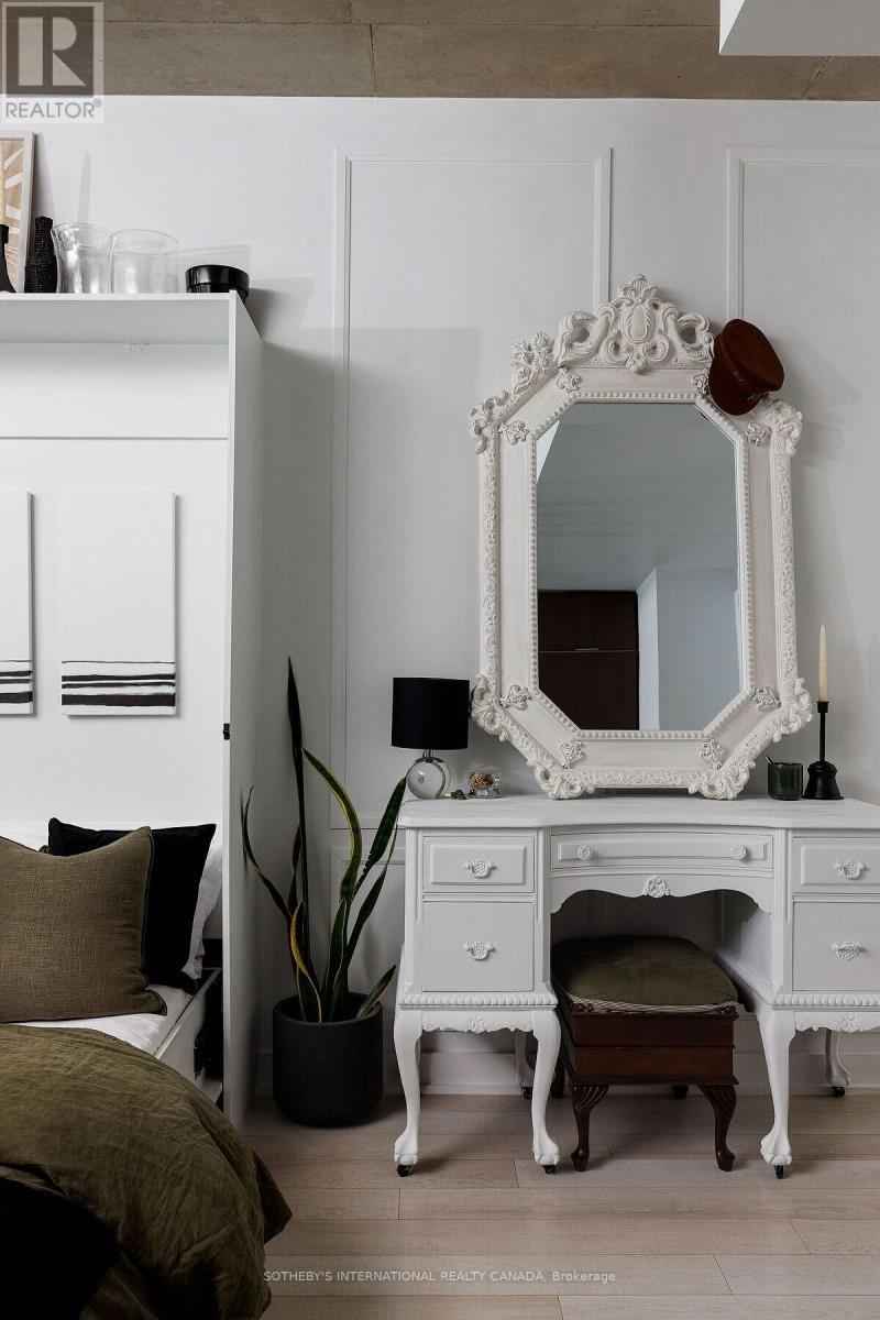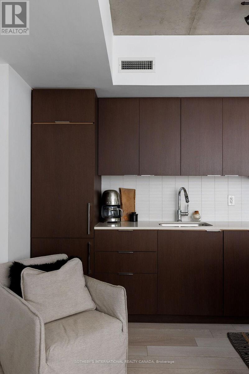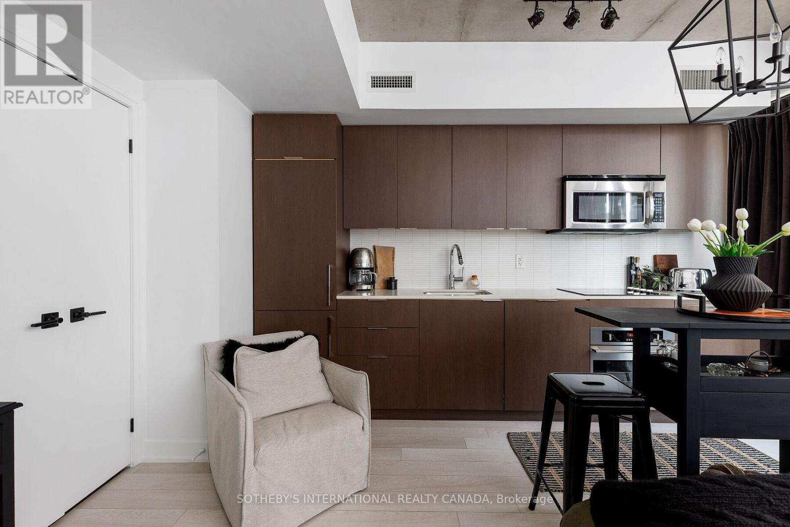 Find happiness on Hanna Ave in this stylish studio apartment at the ever popular Liberty Market Lofts! Suite 223 has been designed with function and flare - available partially furnished with a Murphy bed, making the most of the open concept space, you'll find unique pieces & smart storage solutions throughout. The modern kitchen features quartz counters, integrated & stainless steel appliances & ample cabinet space. Your balcony is an extension of the living space, equipped with furniture, lighting and planters where you can grow your own flowers/plants! Love living in Liberty Village just steps to parks, grocery stores, shops, restaurants, bars, fitness clubs, theTTC, the Exhibition GO Train, Budweiser Stage, Lake Ontario & so much more! Amenities at the LibertyMarket Lofts include; 24 hour concierge, visitor parking, two guest suites, party room with Billiards area, multiple meeting rooms, dog wash, communal large sized washing machine & dryer, a private courtyard, a gym with Peloton Bike, squat rack, free weights and cardio equipment and a yoga room + a half court basketball court! + Rental parking is available in the building. (id:64974)