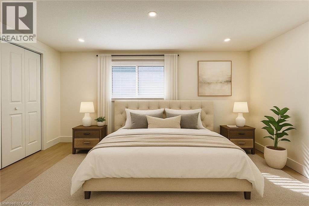 Welcome to this beautifully transformed townhome offering modern updates and PLENTY OF SPACE FOR COMFORTABLE LIVING. Step inside to find brand-new flooring throughout the main and upper levels. The lower level provides convenient inside access from the garage, a full 3-piece bathroom, and a laundry area. The updated kitchen features MODERN CABINETRY, A STYLISH BACKSPLASH, and stainless appliances. From here, walk out to your private, FULLY FENCED YARD complete with a large two-tiered deck—perfect for relaxing or entertaining. The bright and spacious living room is HIGHLIGHTED BY LARGE FRONT WINDOWS and LED pot lights, creating a warm and inviting space. Upstairs, you’ll find three generous bedrooms and a newly renovated 4-piece bathroom. Enjoy parking for two vehicles—a PRIVATE SINGLE GARAGE plus a driveway space. Don’t miss this opportunity schedule your private showing today. Updates include: New Paint whole house (2025), Reverse Osmosis drinking water system, New Electrical panel and wiring (2019), softener (2019) Furnace & A/C (2019), Water softener (2019), Kitchen (2019), Flooring second and third floor (2025), lower bathroom toilet & vanity (2019) Upstairs bathroom reno (2025) New attic upgraded insulation (2025) Fencing (2023) Newer Windows All new light switches, outlets, and LED lighting throughout for energy efficiency. Water is included in rent. Tenants responsible for gas and electricity utilities only. (id:64974)