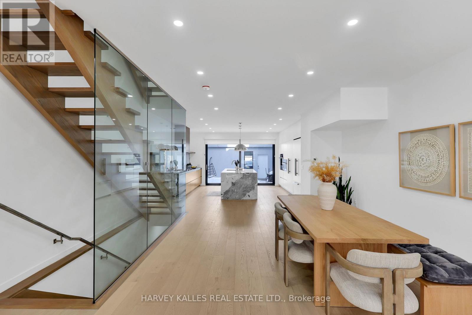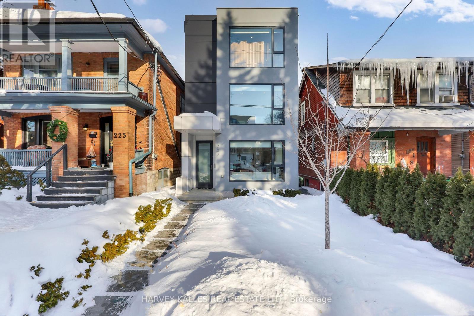 A striking modern statement in the heart of St. Clair West, 223 Wychwood Crescent delivers approximately 4,000 square feet of newly built architectural living across four impeccably finished levels. Designed with intention and executed with precision, this residence blends clean contemporary lines with timeless, refined detailing.Offering 4 generously scaled bedrooms and 5 beautifully appointed bathrooms, the home is thoughtfully configured for sophisticated family living. The primary suite is a private sanctuary, complete with a spa-inspired ensuite designed for quiet indulgence and everyday retreat.Interiors showcase soaring ceilings, wide-plank oak flooring, heated floors, custom millwork, and carefully curated storage solutions that enhance both form and function. The chef's kitchen is elegantly appointed with premium finishes, bespoke cabinetry, and a dramatic central island that anchors the space - ideal for both entertaining and daily living.The fully enclosed backyard offers rare privacy in the city - a serene outdoor extension of the home, perfect for gatherings or relaxed evenings.A detached two-car garage, complemented by two additional driveway spaces, provides parking for four vehicles. With roughed-in plumbing already in place, the garage offers the opportunity to create a future rental or in-law suite above - a rare value-add in this coveted neighbourhood.Situated within the sought-after Humewood School District and steps to the boutiques, dining, parks, and transit of St. Clair Village, this is refined urban living in one of Toronto's most desirable communities.A bold architectural presence. A rare opportunity. (id:64974)