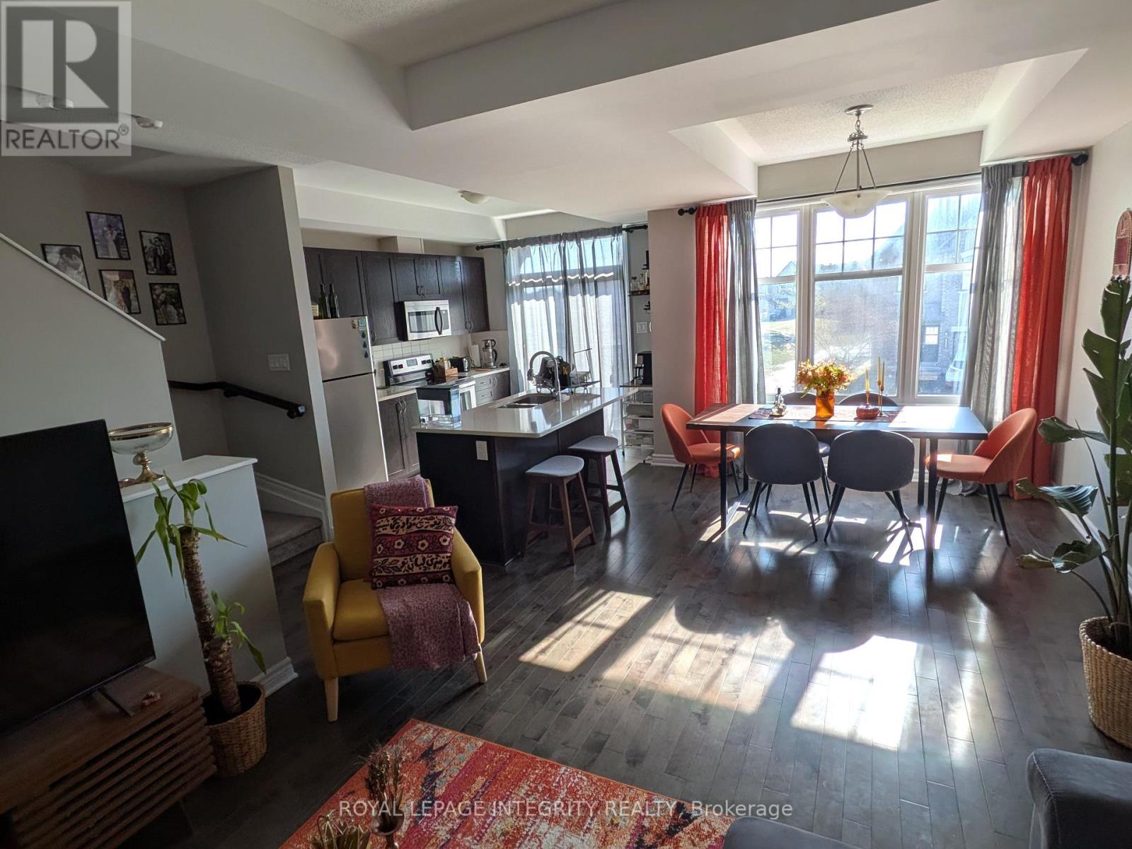 Discover refined living in this beautifully maintained two-bedroom, three-storey townhome overlooking Arcadia Park in the highly desirable Huntmar area on the border of Kanata and Stittsville. Offering approximately 1,388 square feet of thoughtfully designed space, this home combines comfort, style, and convenience in an exceptional location just minutes from Tanger Outlets.The bright, open-concept main living area features rich hardwood flooring in the living and dining rooms, creating a warm and inviting atmosphere ideal for both relaxing and entertaining. The modern kitchen is appointed with quartz countertops and comes fully equipped with fridge, stove, dishwasher and microwave oven - everything you need for effortless living. Washer and Dryer are also included. Step out onto the private deck off the kitchen and enjoy peaceful park views - perfect for summer BBQs or a quiet morning coffee overlooking Arcadia Park.This well-designed home offers 1.5 bathrooms and the rare convenience of three parking spaces, including a single attached garage with indoor access.Tenant pays utilities. Deposit: $4,800. (id:64974)