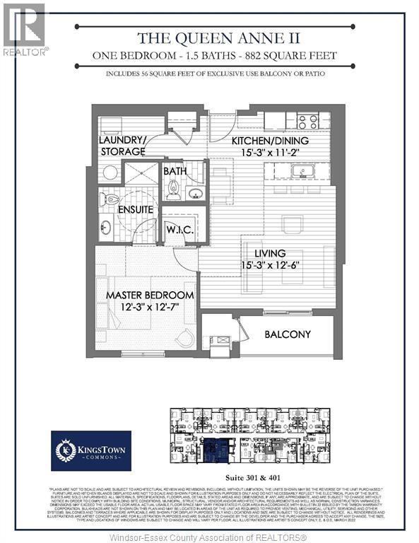 Welcome to KingsTown Commons, with 1 and 2 bedroom units, this development is just steps from Main Street with convenient access to medical buildings, shops, restaurants, grocery stores, gyms, parks, and schools. Take a quick drive to Lakeside Park, beaches, marina and wineries or take a walk around this beautiful little town that has so much to offer. 15 minute drive to Essex or Leamington and a 25 minute drive to Windsor. The only 6 storey building with luxury living in the heart of Kingsville. This suite features in-suite laundry, stunning Whirlpool appliance package, bright Quartz countertops in kitchen and bathrooms, Euro glass/tile showers in ensuite, Under cabinet lighting in kitchen and so much more! Private glass railing balcony. Secure entrance, dual elevator, common room, and the privilege of an on-site property manager. Tenants responsible for own utilities. Application and credit check required. (id:64974)