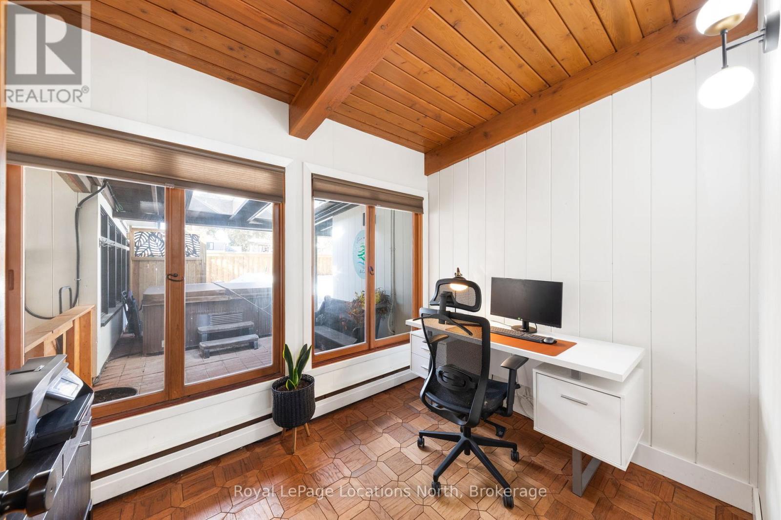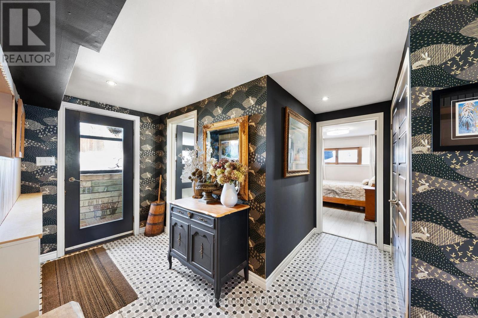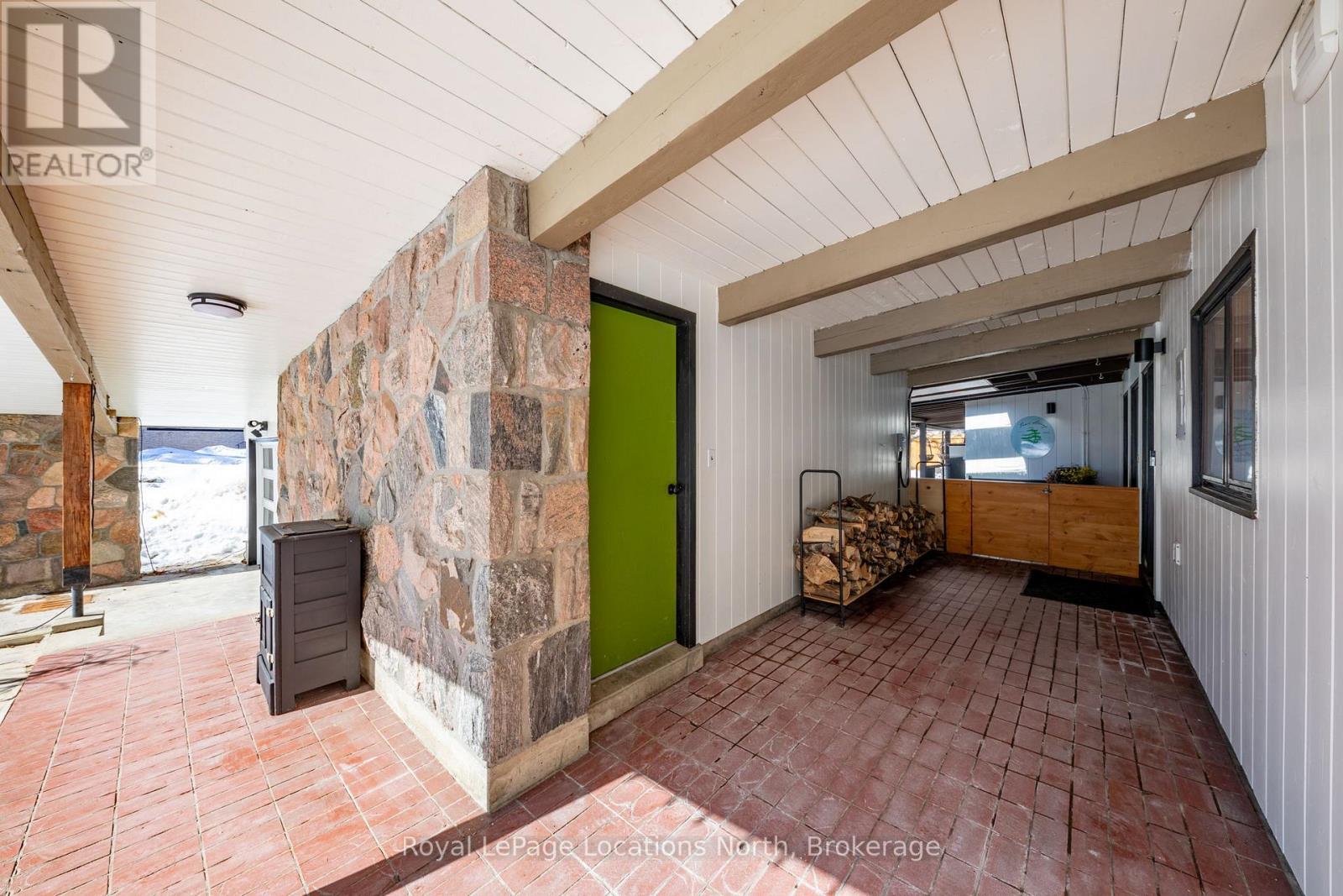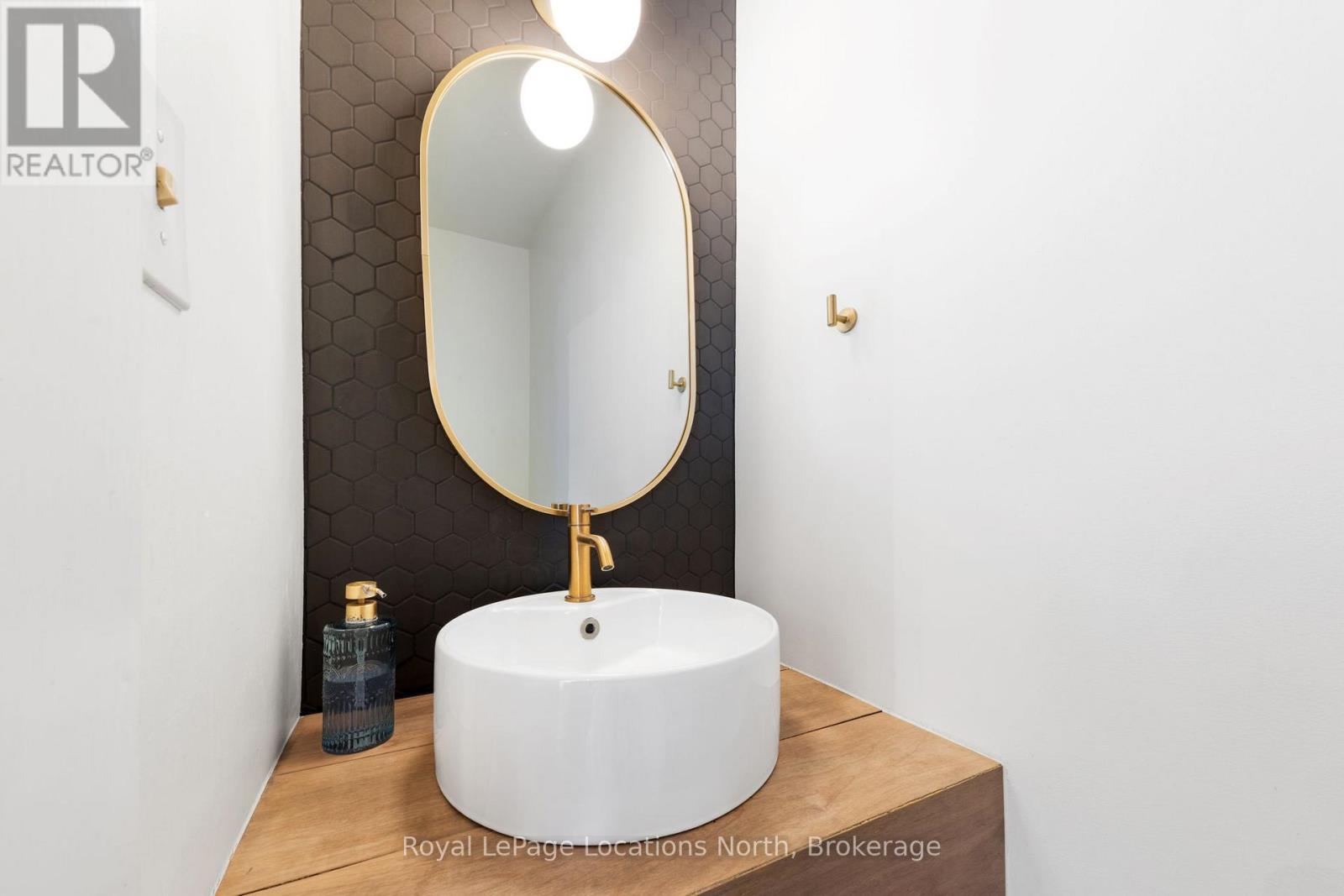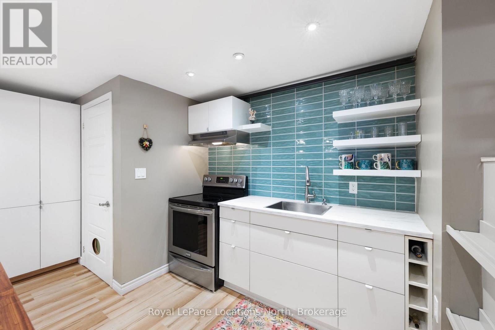Modern mid-century multi-generational home located on a desirable quiet street in the charming town of Stayner, set on a large fully fenced lot. A covered breezeway connects the home to the heated two-car garage, offering sheltered access year-round. Inside, a spacious entryway welcomes you into a stunning dining room featuring a dramatic floor-to-ceiling stone wood-burning fireplace, original exposed wood ceiling beams, and a walkout to the backyard. The bright living room is filled with natural light from oversized windows, creating a warm and inviting space for family gatherings. The updated kitchen is designed for both style and functionality with stainless steel appliances, dual sinks, a large waterfall butcher block island with built-in wine fridge, and a generous pantry. The main level also offers a handy home office and convenient 2-piece bath. Upstairs, the impressive primary suite features a walk-in closet, large ensuite with soaker tub and separate shower, in-suite laundry, and doors leading to a private balcony. Three additional well-sized bedrooms and a modern 3-piece bathroom with oversized shower complete the upper level. The lower level offers a bright, self-contained two-bedroom apartment with above-grade windows, separate entrance, and interior access from the main home - ideal for multi-generational living or potential income. This space features a modern kitchen with stainless steel appliances and butcher block island, a comfortable living area, laundry off the kitchen, and a 3-piece bathroom. The apartment was fully updated in 2020.Recent updates include electrical panel (2020), main kitchen renovation (2022), and new garage door with opener (2022). The heated garage adds year-round comfort. Extensive landscaping along the west side of the home and a new fence installed in 2025 complete the outdoor space. This is a fantastic opportunity to own a spacious multi-generational home in the welcoming community of Stayner. Don't miss this one! (id:64974)