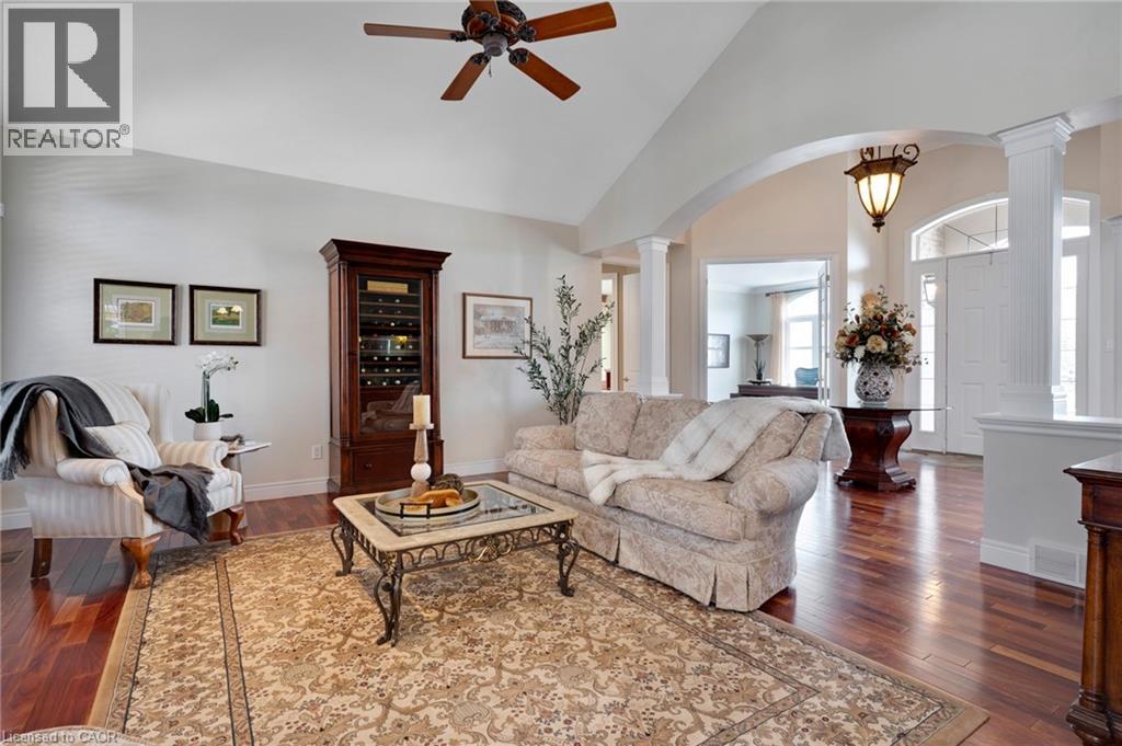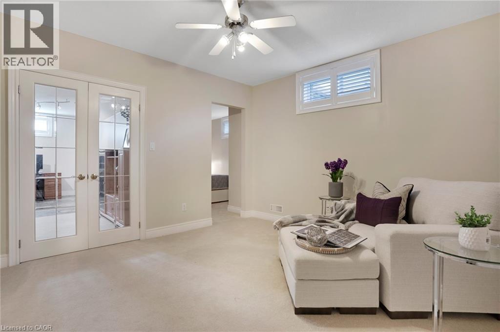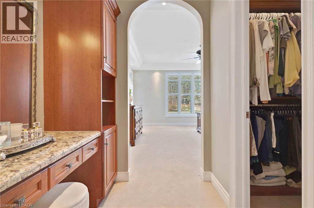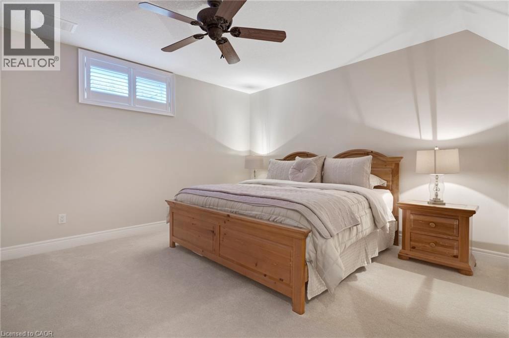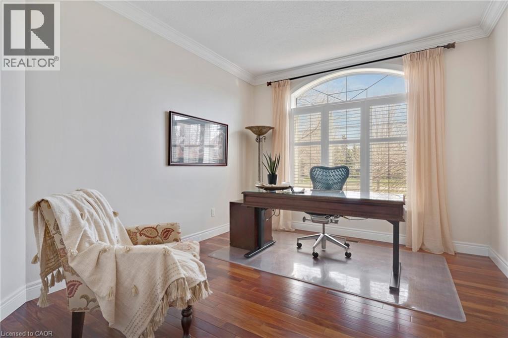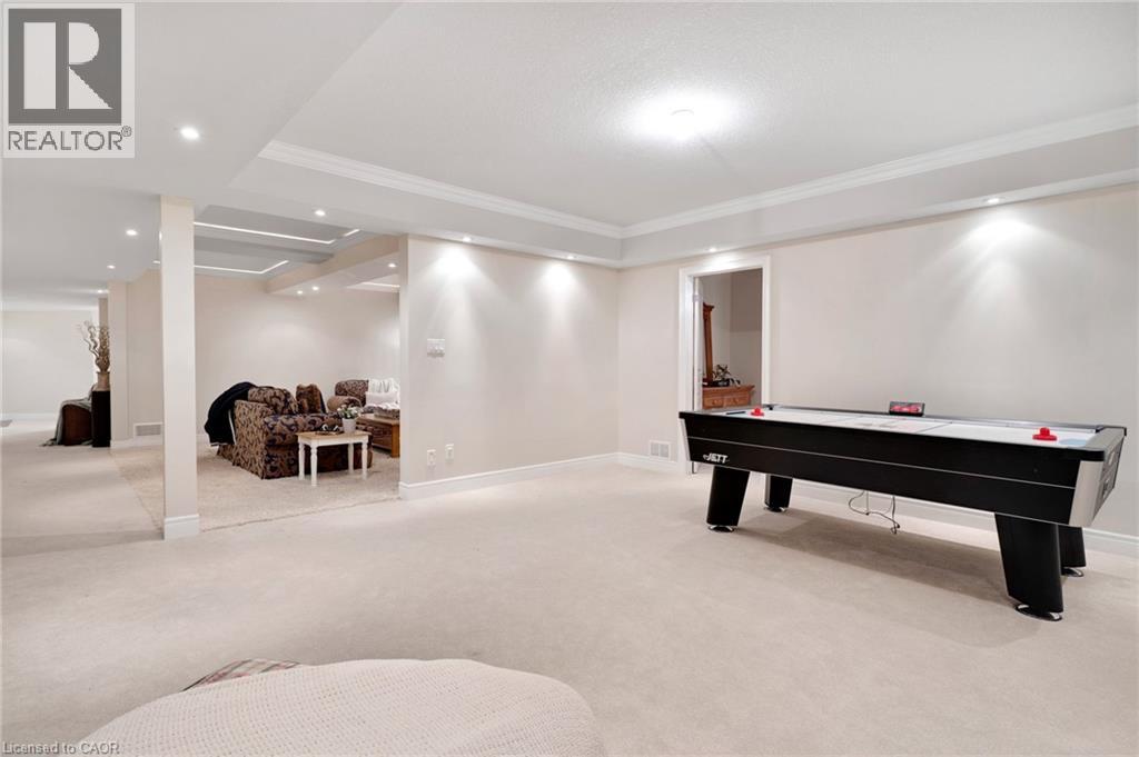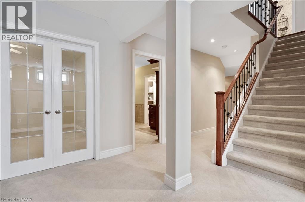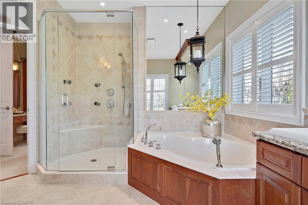 Located in the highly sought-after Doon Village area, this spacious bungalow is tucked away on an exclusive private court with just six homes, offering a quiet setting surrounded by mature trees and scenic walking trails. Set on a fully landscaped pie shaped lot of over 0.6 acres, the property provides exceptional privacy along with convenient access to amenities, Conestoga College, and Highway 401. With over 5,400 square feet of total living space, this home offers a well-designed layout with room for a variety of living arrangements. The main floor features an open and welcoming foyer, leading into bright principal rooms finished with hardwood floors, slate tile, 9-foot ceilings, and California shutters throughout. A large living room with gas fireplace anchors the space, complemented by a separate home office and a formal dining room with a built-in servery. The kitchen is both spacious and functional, equipped with high-end appliances including a six-burner gas range, and an eat-in area that opens to a sunroom overlooking the backyard. The main level includes three well-sized bedrooms, including a large primary suite set privately with a walk-in closet and a 5-piece ensuite. The fully finished lower level adds even more versatility, featuring two additional bedrooms, an oversized bathroom, a recreation room, home gym, playroom, and a sitting area/ office with rough-in for a wet bar. With direct access from the garage, this level is well suited for extended family or multi-generational living. Outside, the backyard offers a private retreat with an in-ground pool, patio, and hot tub, all surrounded by mature landscaping. A rare opportunity to own a well-appointed home in a quiet, established pocket of Doon. (id:64974)