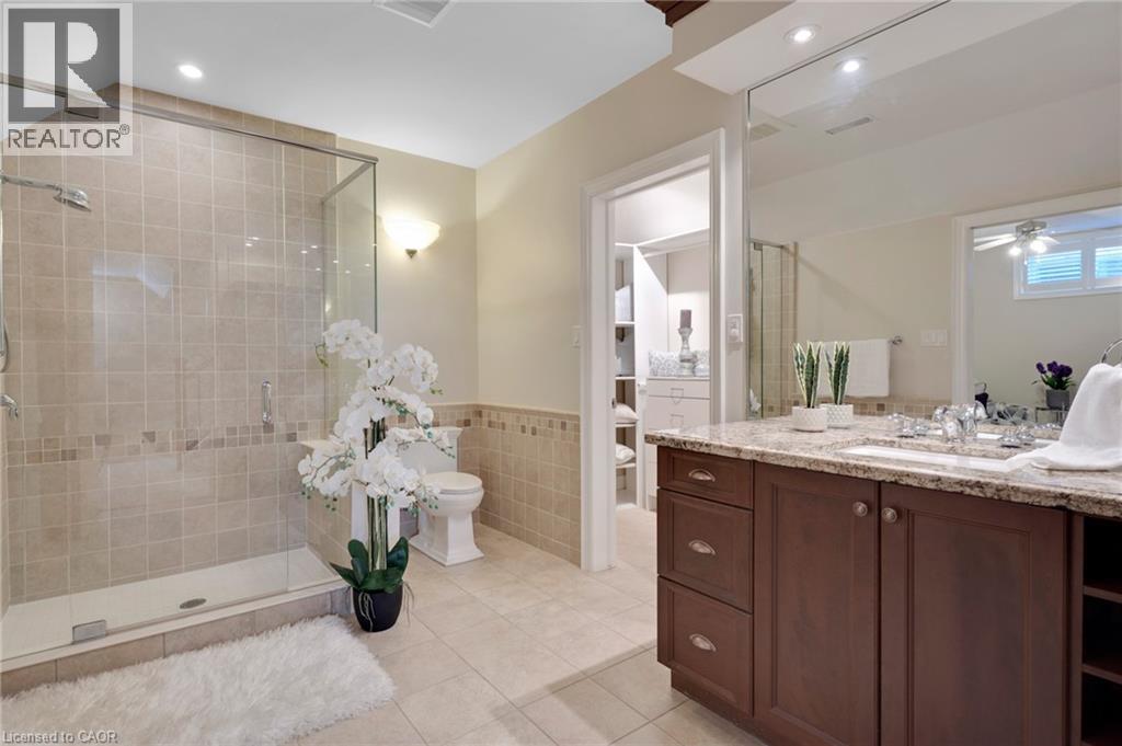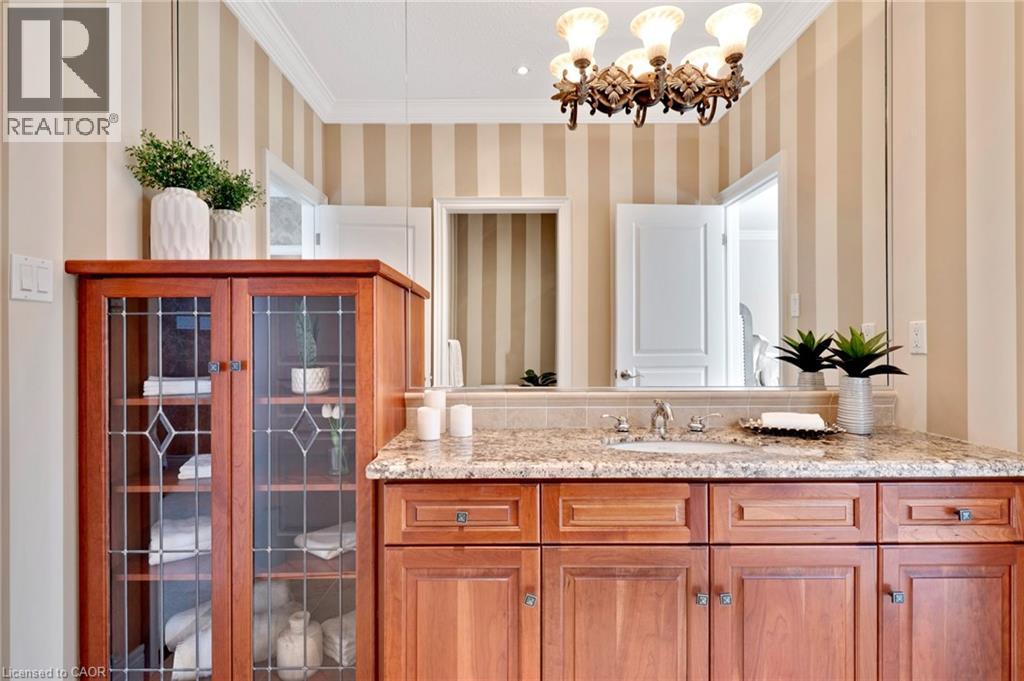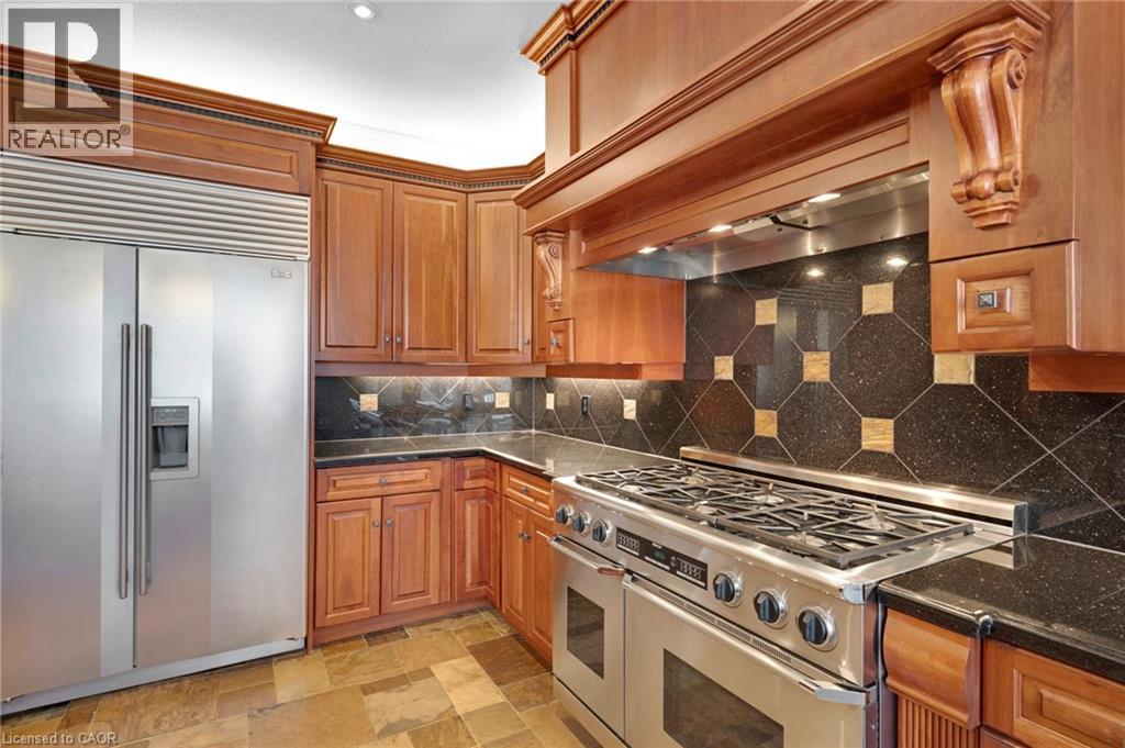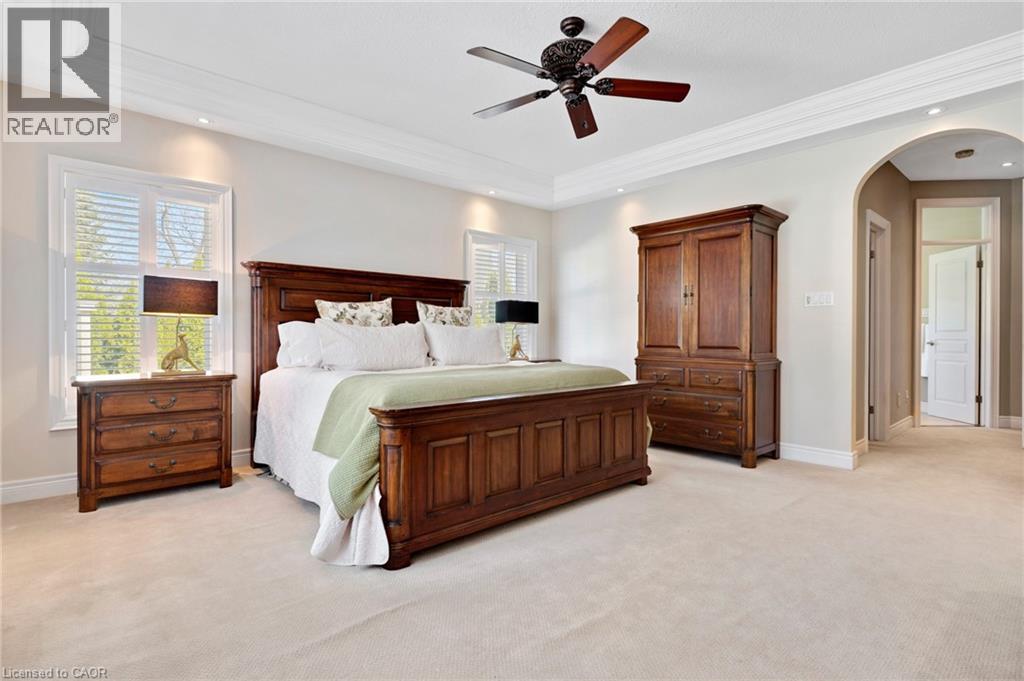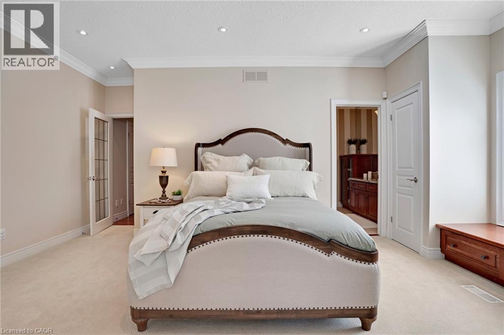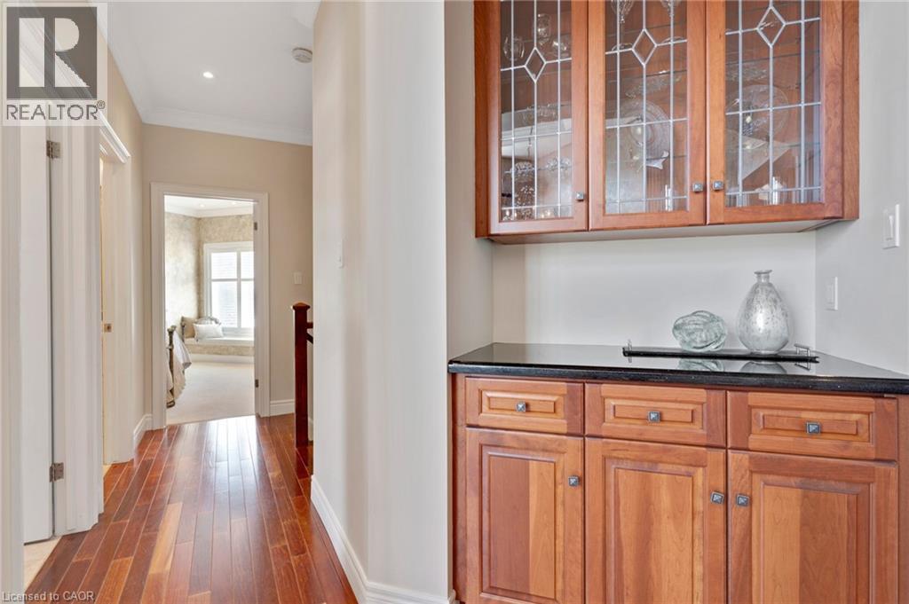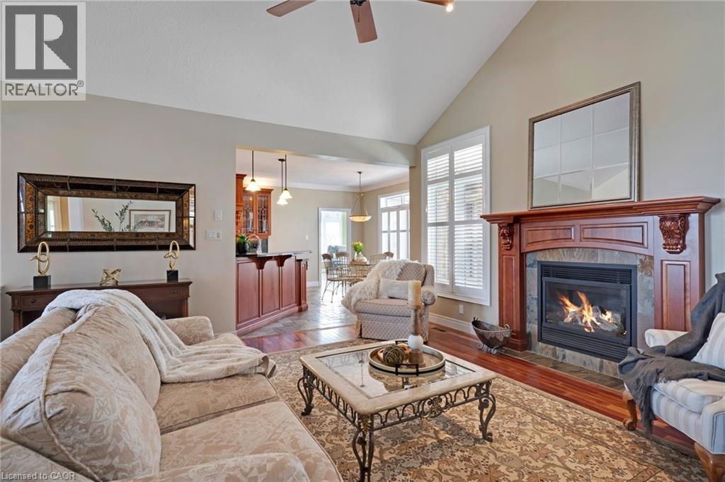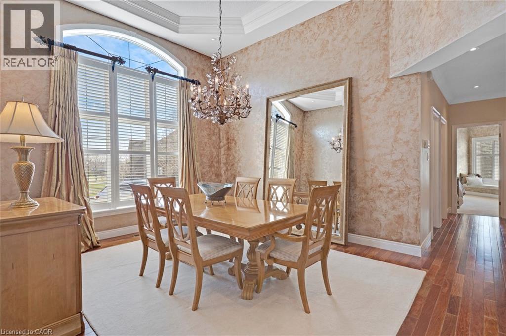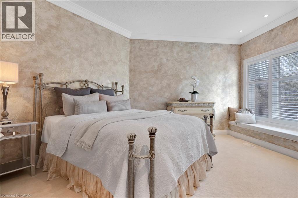 Located in the highly sought-after Doon Village area, this spacious bungalow is tucked away on an exclusive private court with just six homes, offering a quiet setting surrounded by mature trees and scenic walking trails. Set on a fully landscaped pie shaped lot of over 0.6 acres, the property provides exceptional privacy along with convenient access to amenities, Conestoga College, and Highway 401. With over 5,400 square feet of total living space, this home offers a well-designed layout with room for a variety of living arrangements. The main floor features an open and welcoming foyer, leading into bright principal rooms finished with hardwood floors, slate tile, 9-foot ceilings, and California shutters throughout. A large living room with gas fireplace anchors the space, complemented by a separate home office and a formal dining room with a built-in servery. The kitchen is both spacious and functional, equipped with high-end appliances including a six-burner gas range, and an eat-in area that opens to a sunroom overlooking the backyard. The main level includes three well-sized bedrooms, including a large primary suite set privately with a walk-in closet and a 5-piece ensuite. The fully finished lower level adds even more versatility, featuring two additional bedrooms, an oversized bathroom, a recreation room, home gym, playroom, and a sitting area/ office with rough-in for a wet bar. With direct access from the garage, this level is well suited for extended family or multi-generational living. Outside, the backyard offers a private retreat with an in-ground pool, patio, and hot tub, all surrounded by mature landscaping. A rare opportunity to own a well-appointed home in a quiet, established pocket of Doon. (id:64974)
