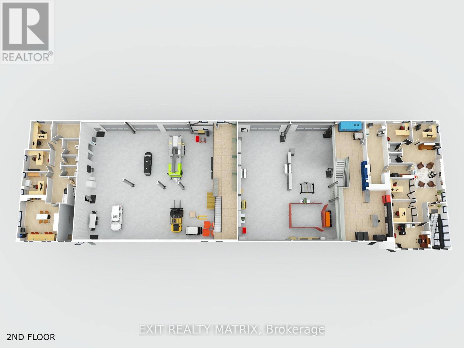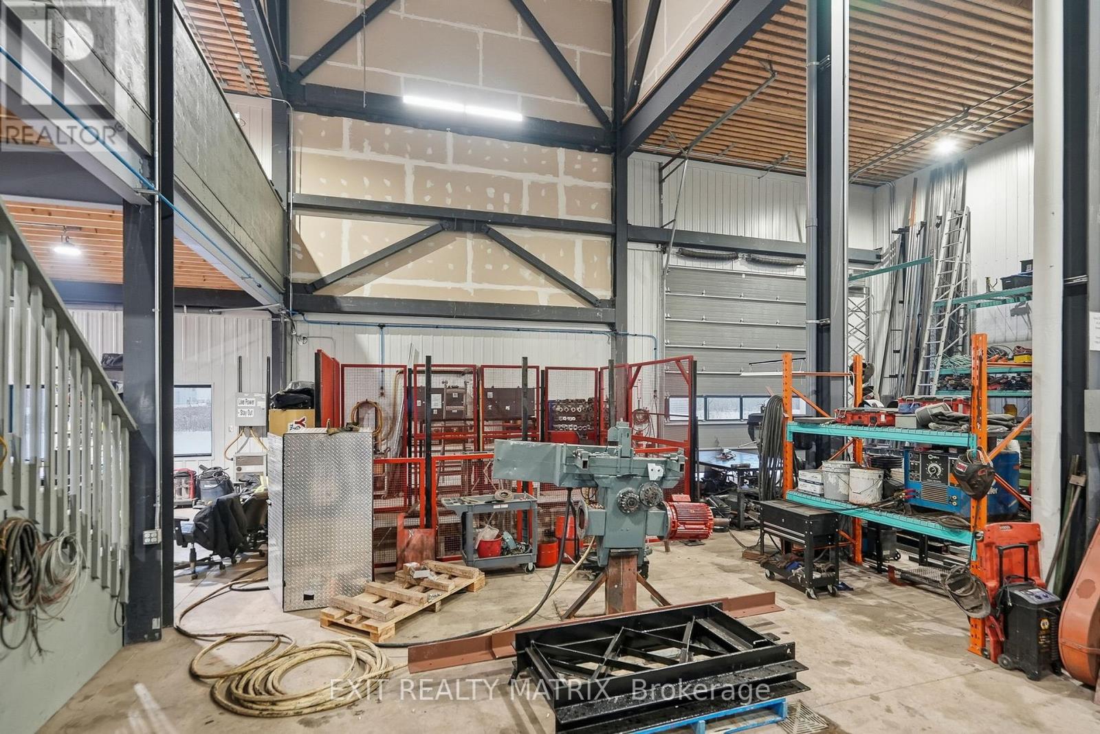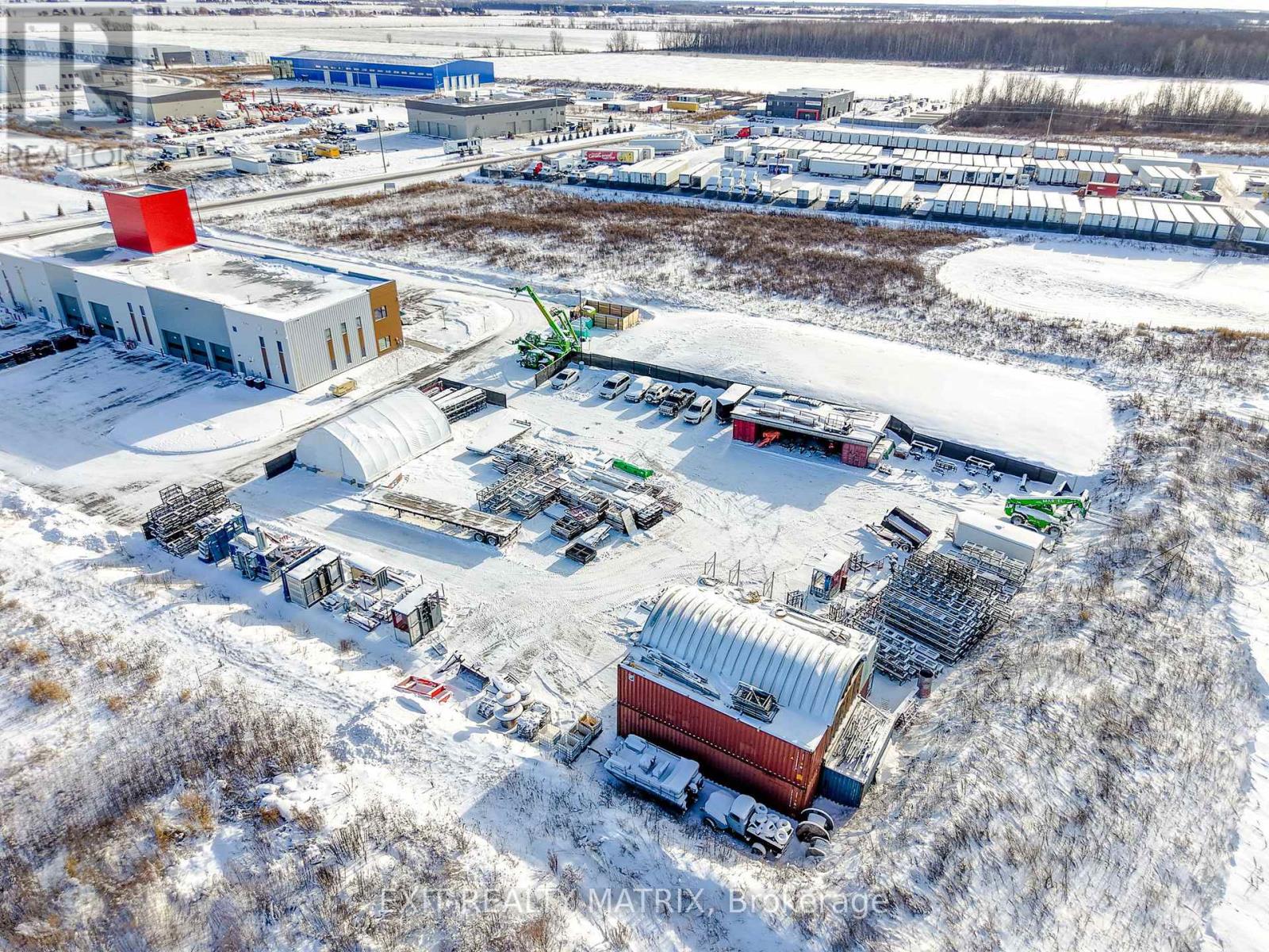This pristine, 2024-built 15,000 sq. ft. industrial facility offers a rare "two-in-one" design, providing unmatched versatility for investors or owner-users seeking a premium corporate headquarters with high-yield potential. Strategically located with immediate access to the 417 Highway, the property features two independent industrial wings, each paired with sophisticated two-storey office suites comprising a combined total of 13 private offices, two grand boardrooms, two spacious lunch/break rooms and modern staff amenities. The industrial components boast a 24ft clear height, reinforced by a robust 400amp/600V power supply and natural gas heating. Operational efficiency is at the forefront, with one side offering six 12'x10' grade-level doors and the other featuring three oversized 14'x12' bays, supplemented by loft storage and dedicated in-shop offices. Complete with expansive outdoor acreage for machinery, ample paved parking, and a polished professional aesthetic, this site is the definitive choice for logistics, manufacturing, or multi-tenant investment. (id:64974)