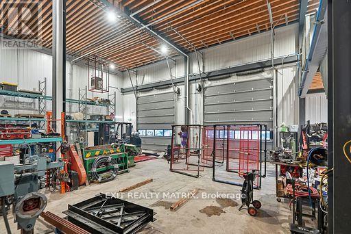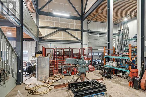 This pristine, 2024-built 15,000 sq. ft. industrial facility offers a rare "two-in-one" design, providing unmatched versatility for investors or owner-users seeking a premium corporate headquarters with high-yield potential. Strategically located with immediate access to the 417 Highway, the property features two independent industrial wings, each paired with sophisticated two-storey office suites comprising a combined total of 13 private offices, two grand boardrooms, two spacious lunch/break rooms and modern staff amenities. The industrial components boast a 24ft clear height, reinforced by a robust 400amp/600V power supply and natural gas heating. Operational efficiency is at the forefront, with one side offering six 12'x10' grade-level doors and the other featuring three oversized 14'x12' bays, supplemented by loft storage and dedicated in-shop offices. Complete with expansive outdoor acreage for machinery, ample paved parking, and a polished professional aesthetic, this site is the definitive choice for logistics, manufacturing, or multi-tenant investment. (id:64974)