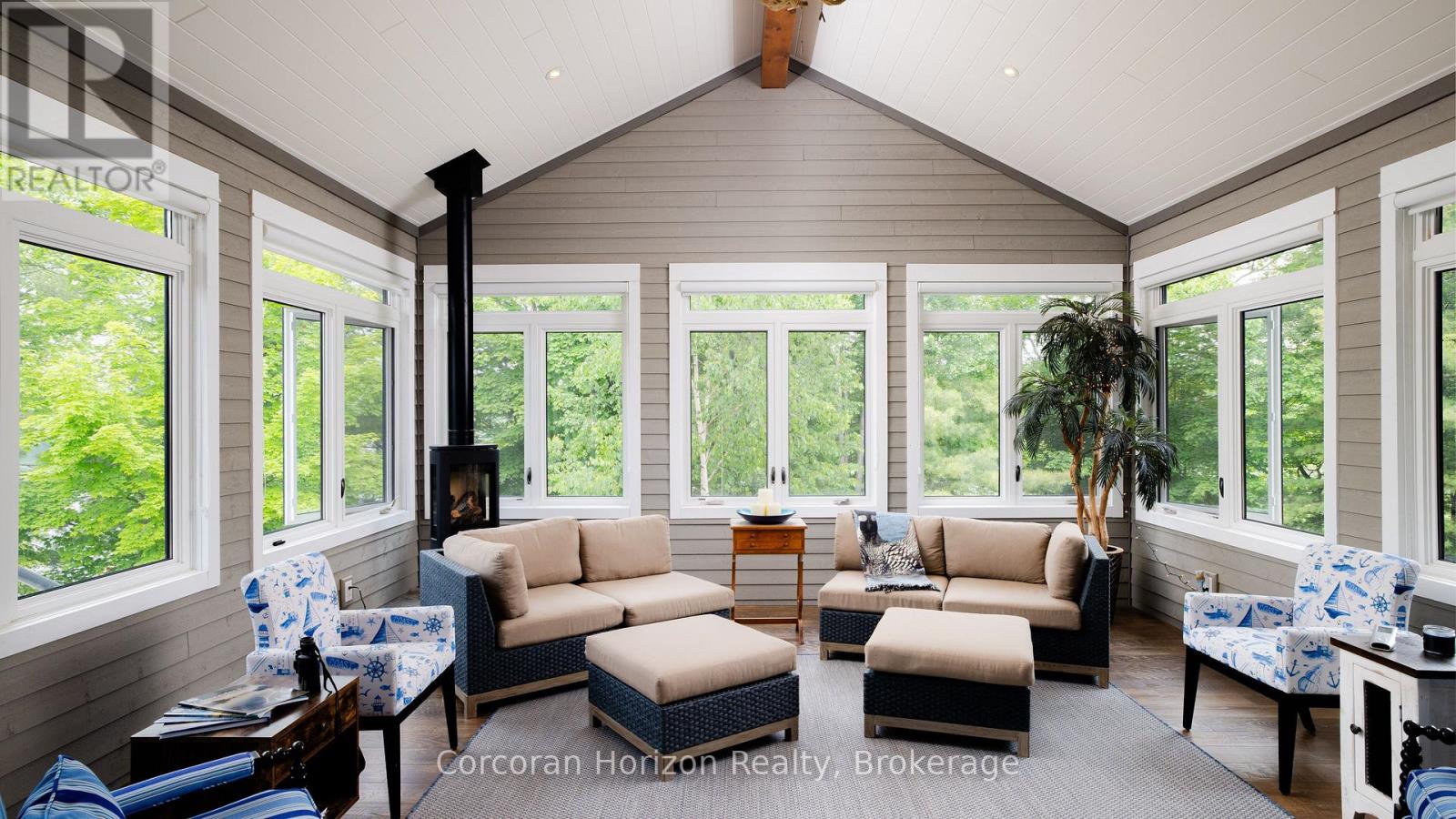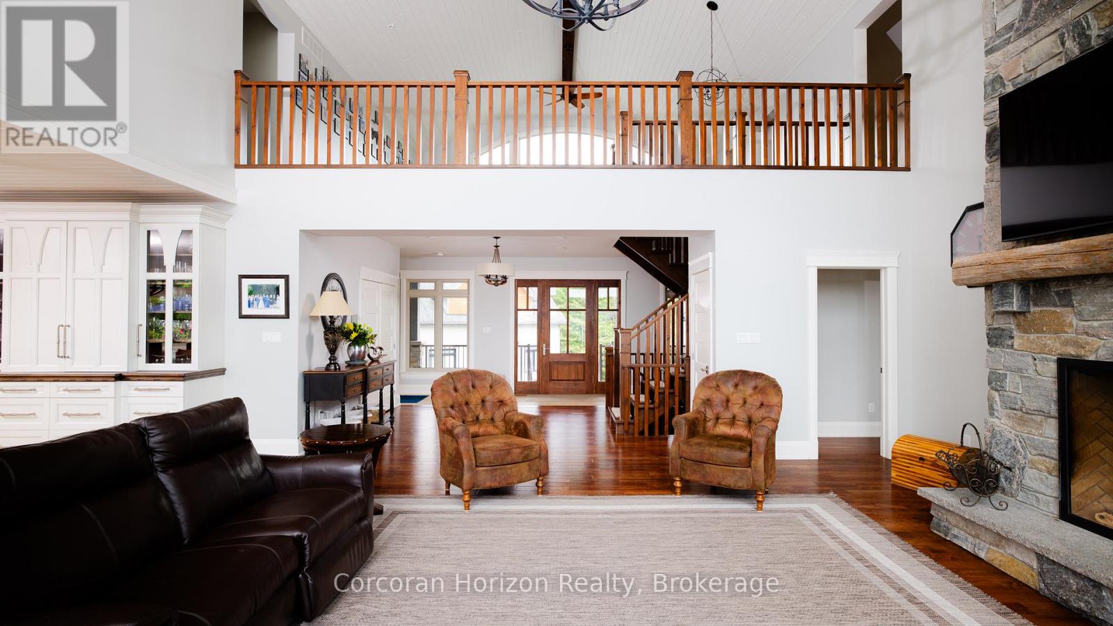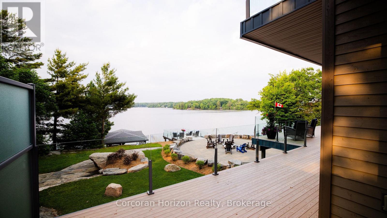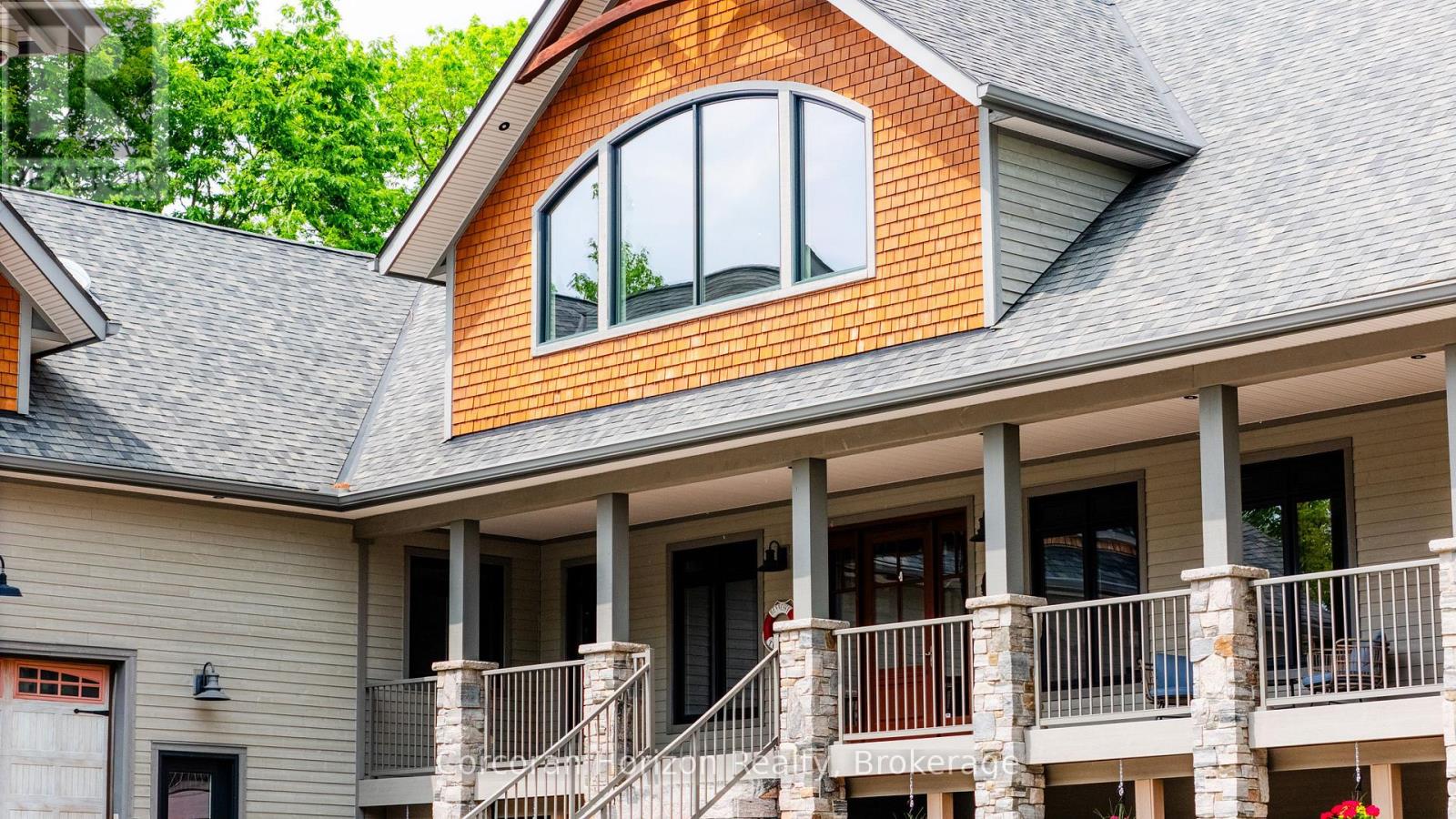 Welcome to the crown jewel of Ontario's world-renowned cottage country an exquisite combination of 10,000+ sq. ft. custom-built estate retreat perched on the exclusive southeast tip of Pilkington Island, one of only five estate lots with rare year-round road access and just 90 minutes from Toronto, minutes off Highway 400. This private peninsula offers over 550+ feet of pristine shoreline on Gloucester Pool, part of the historic Trent-Severn Waterway, featuring deep, clean water ideal for endless boating, swimming, and waterfront relaxation. A rare double-slip steel boat port, separate floating dock, and breathtaking panoramic views ensure every sunset is unforgettable. Inside, luxury abounds with a grand Great Room and floor-to-ceiling granite fireplace, a formal dining room for 16, a gourmet kitchen with professional appliances and walk-in pantry, a serene Muskoka Room, a main-floor Master and VIP suite, four upper-level bedroom suites with a loft and kids den, plus a walk-out lower level with two additional suites, granite fireplace, wet bar, games and exercise rooms. The estate also includes an oversized attached double garage, a detached garage with a nanny/in-law suite above, newly paved driveway, and fresh landscaping the ultimate blend of exclusivity, elegance, and the cottage lifestyle. (id:64974)