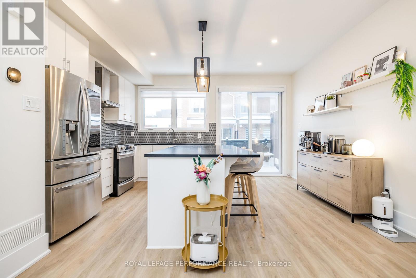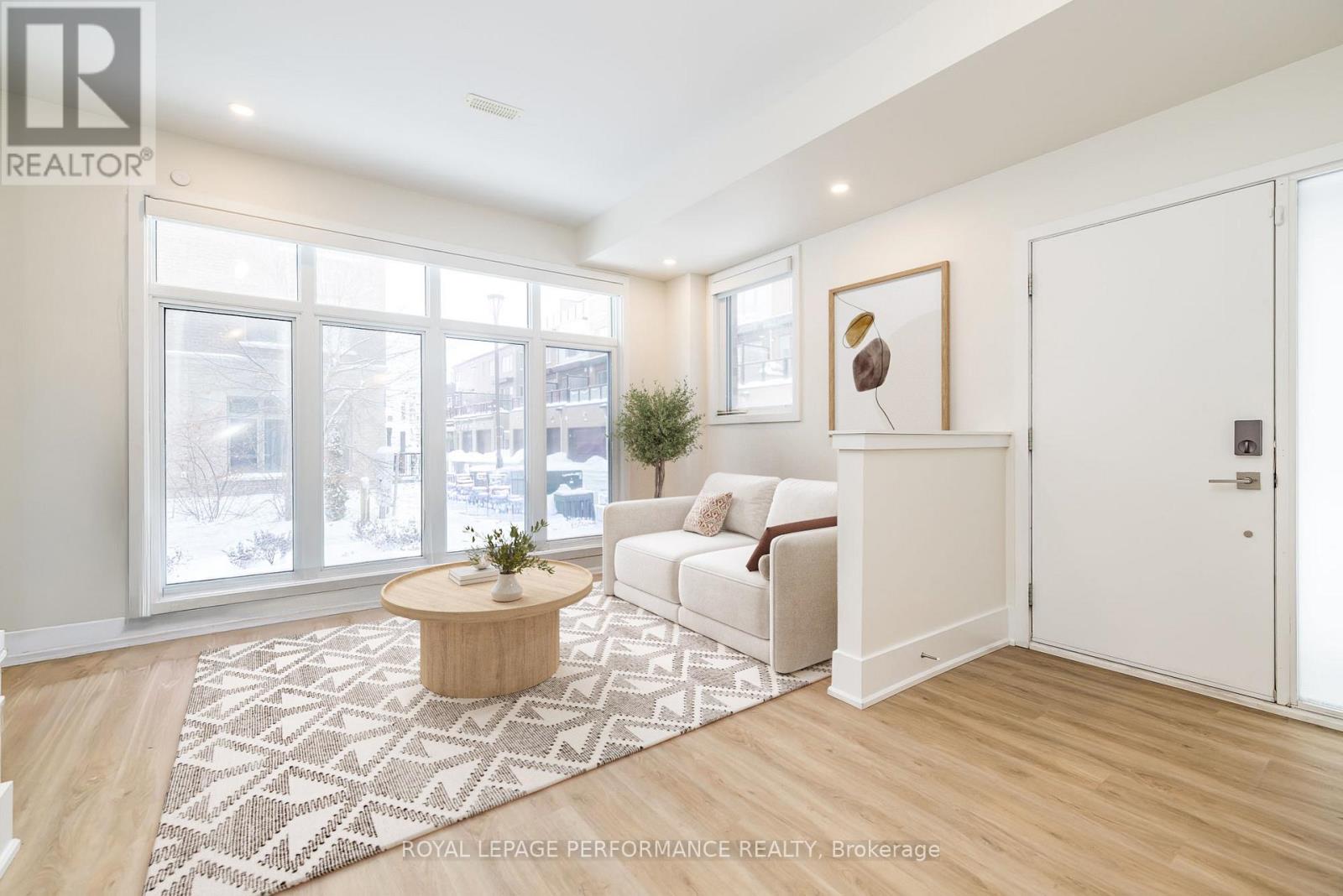 Beautifully updated 3-bedroom, 3-bathroom corner freehold townhome offering style and space in a lovely neighbourhood. Freshly painted and new flooring throughout, this move-in-ready home is filled with thoughtful finishes and natural light. The main level welcomes you with a comfortable family room featuring a cozy fireplace and a convenient powder room. Smooth ceilings, pot lights, and oversized windows enhance the bright, modern feel. Enjoy inside access to the oversized single-car garage, complete with an electric vehicle plug. Up one level, the open-concept kitchen, living, and dining area is ideal for both everyday living and entertaining. The modern kitchen offers quartz countertops, a large island, ample cabinetry, a statement backsplash, and high-end appliances. Step out onto the balcony to enjoy a seamless extension of the living space with an easy indoor-outdoor flow. Hunter Douglas motorized blinds add both comfort and convenience. The top floor is designed for privacy and functionality, with a spacious primary bedroom featuring ample closet space and a stylish ensuite with a walk-in shower. Two additional well-sized bedrooms with large windows share a full bathroom. Laundry is conveniently located on this level. Ideally situated close to the LRT, restaurants, the Ottawa River, and nearby green spaces including Eugène Martineau Park and Codd's Road Park. A fantastic opportunity in a sought-after location. Some photos have been virtually staged. Association fee of $127 per month covers garbage removal, snow removal and landscaping of the common areas. (id:64974)