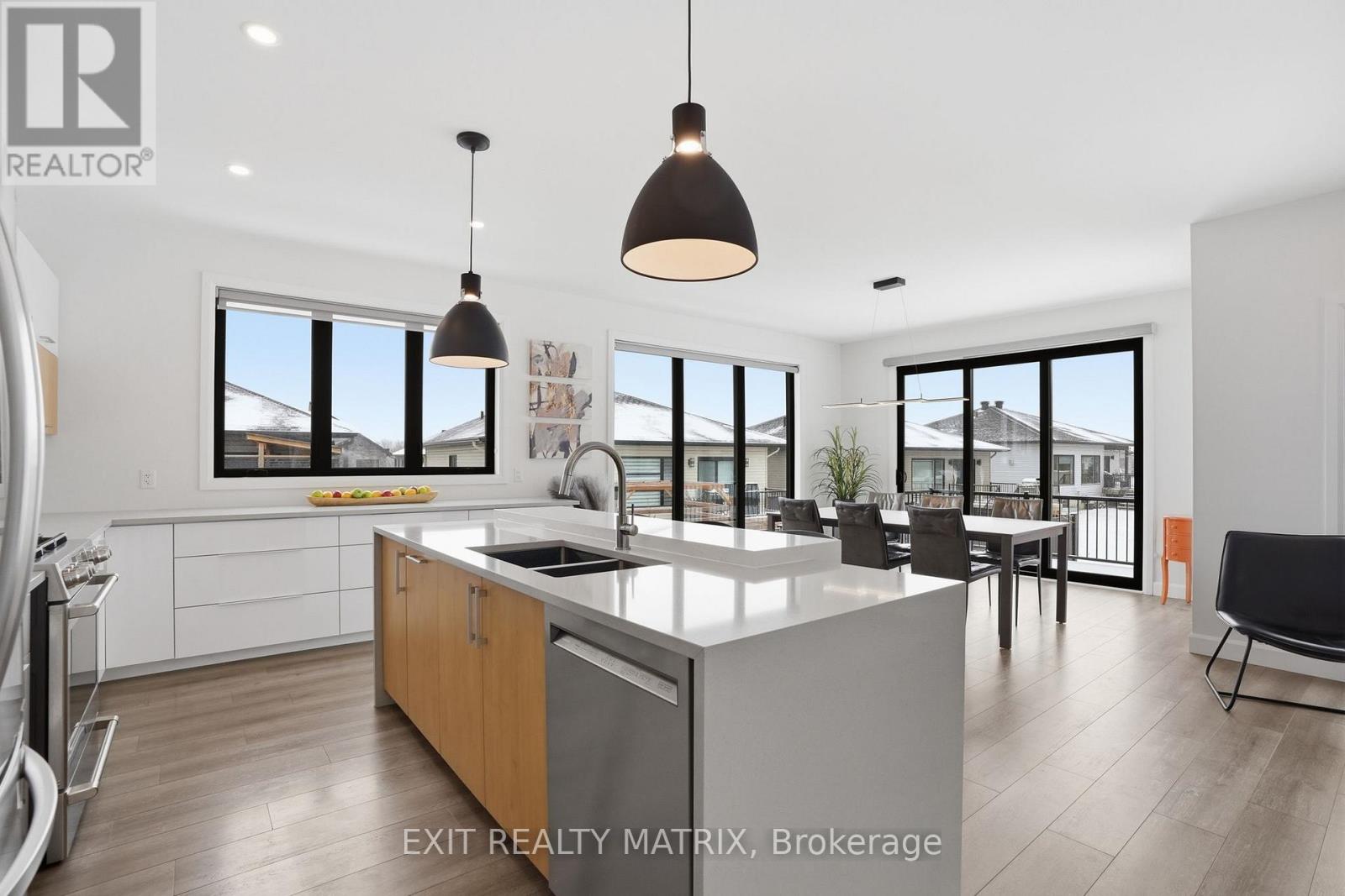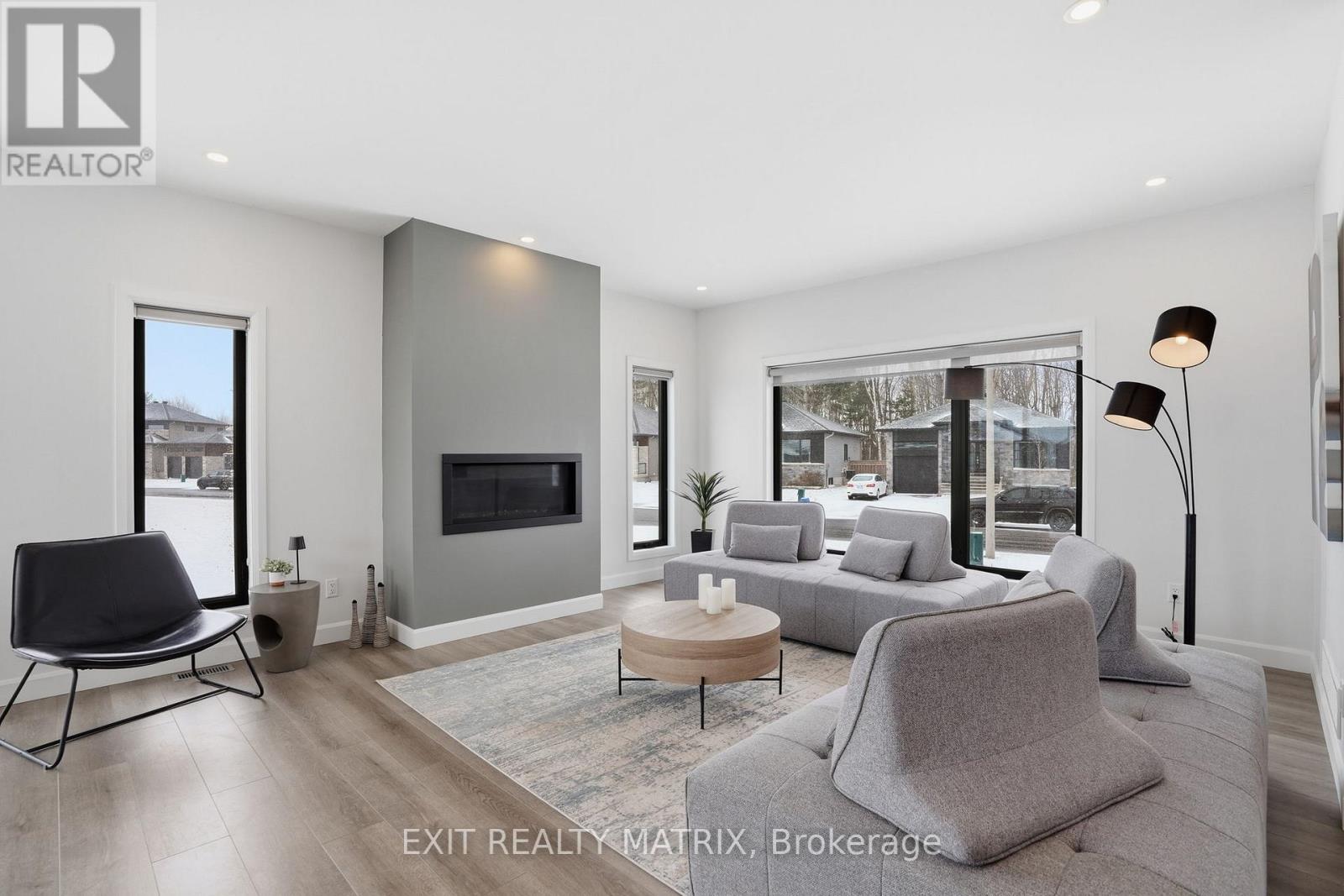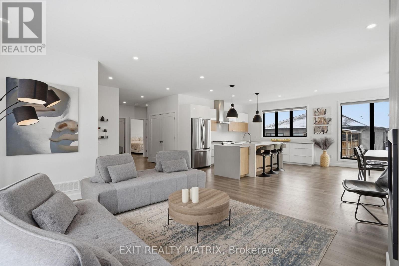 Welcome to this beautifully crafted modern bungalow on a premium corner lot, ideally located close to all amenities-offering the perfect blend of style, comfort, and everyday convenience. From the moment you step inside, you're welcomed by a bright, inviting foyer that instantly feels like home. The main floor features a sun-filled open-concept layout, enhanced by expansive floor-to-ceiling windows that fill the space with natural light. The kitchen is designed for real life and entertaining, with abundant cabinetry, generous counter space, and all appliances included-flowing effortlessly into the dining area with patio doors leading to the back deck, perfect for relaxing or hosting. The warm and inviting living room, centered around a modern gas fireplace, creates a cozy yet refined space to unwind. The main level also offers a comfortable primary bedroom with a walk-in closet, a second spacious bedroom, and a sleek 3-piece bathroom-ideal for families, guests, or a home office setup. Downstairs, the partially finished lower level adds flexibility and value, featuring a bright bedroom with a large window, an impressive 4-piece bathroom, a den, and ample storage-plus additional space ready to be customized to your lifestyle. With its thoughtful layout, modern finishes, and welcoming atmosphere, this move-in ready home is perfect for buyers looking for a space that feels both stylish and truly livable. A rare opportunity on a corner lot you won't want to miss. (id:64974)