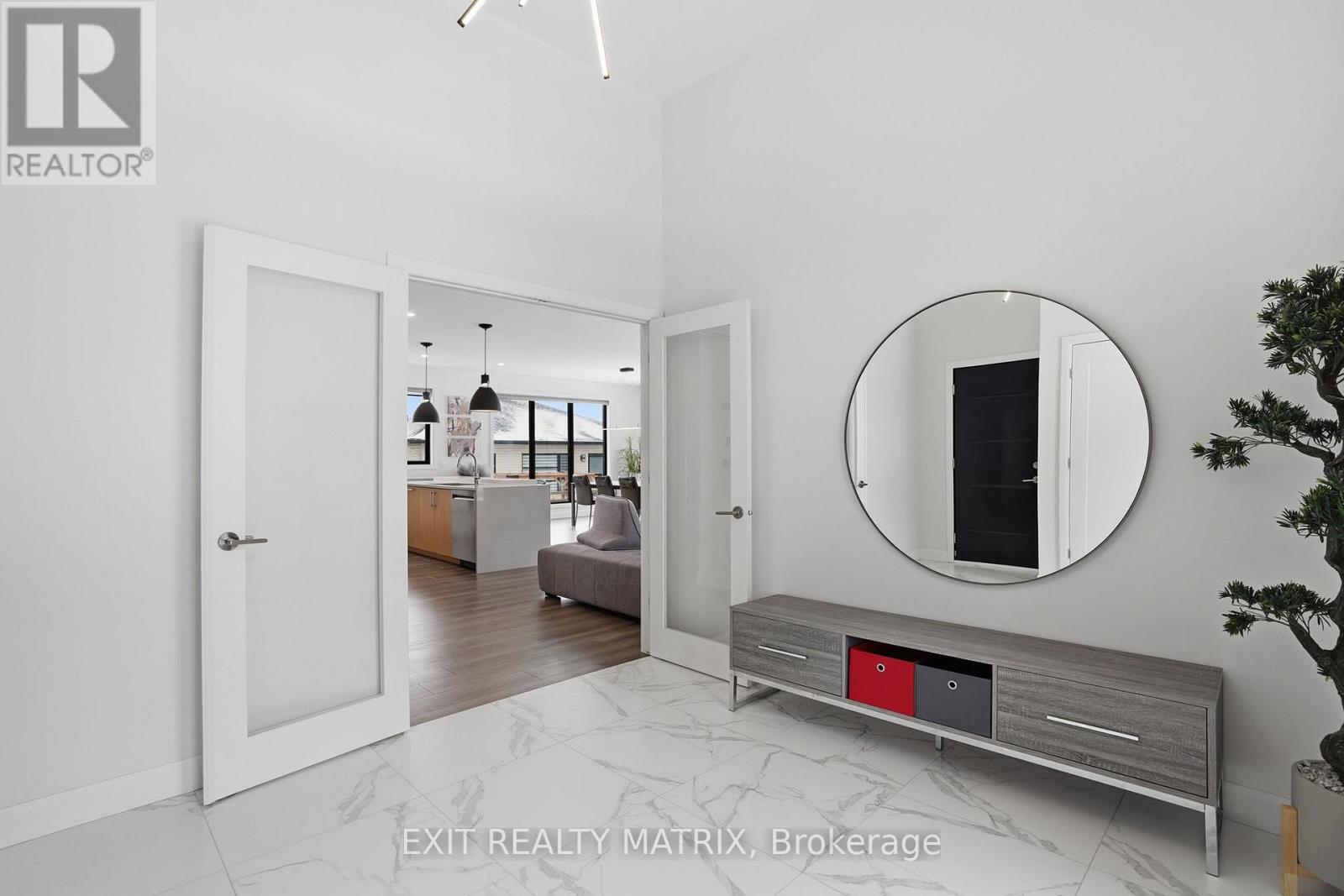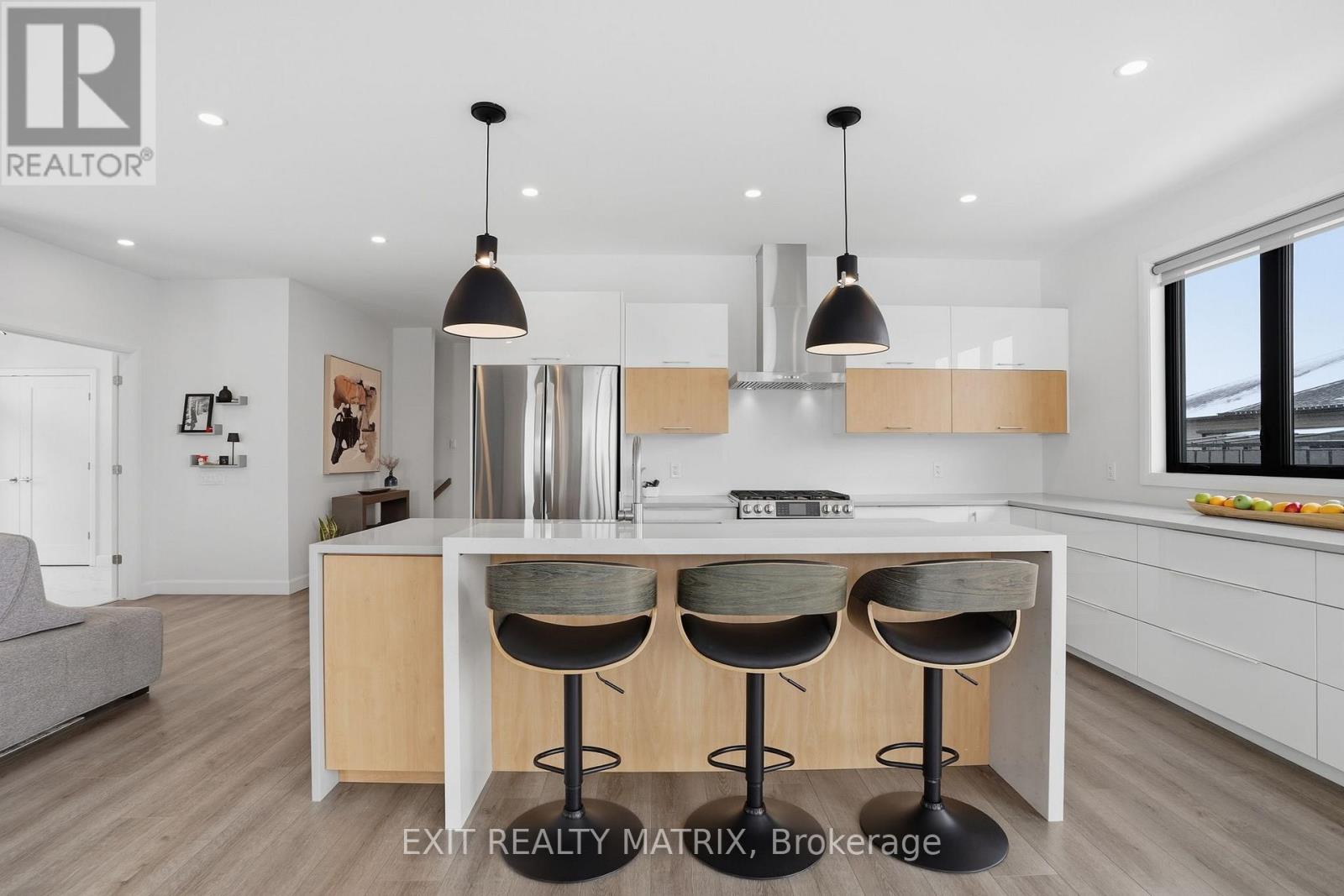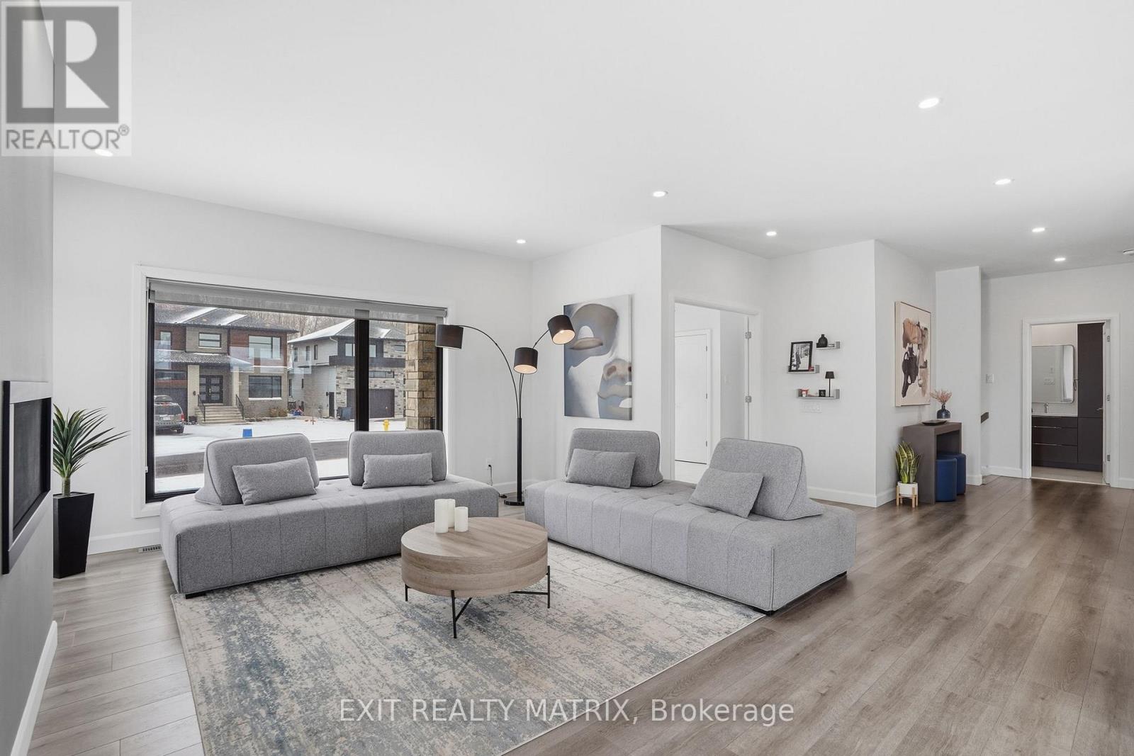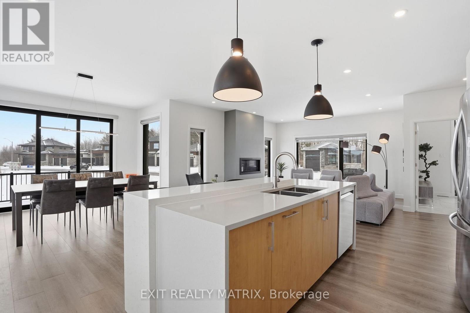 Welcome to this beautifully crafted modern bungalow on a premium corner lot, ideally located close to all amenities-offering the perfect blend of style, comfort, and everyday convenience. From the moment you step inside, you're welcomed by a bright, inviting foyer that instantly feels like home. The main floor features a sun-filled open-concept layout, enhanced by expansive floor-to-ceiling windows that fill the space with natural light. The kitchen is designed for real life and entertaining, with abundant cabinetry, generous counter space, and all appliances included-flowing effortlessly into the dining area with patio doors leading to the back deck, perfect for relaxing or hosting. The warm and inviting living room, centered around a modern gas fireplace, creates a cozy yet refined space to unwind. The main level also offers a comfortable primary bedroom with a walk-in closet, a second spacious bedroom, and a sleek 3-piece bathroom-ideal for families, guests, or a home office setup. Downstairs, the partially finished lower level adds flexibility and value, featuring a bright bedroom with a large window, an impressive 4-piece bathroom, a den, and ample storage-plus additional space ready to be customized to your lifestyle. With its thoughtful layout, modern finishes, and welcoming atmosphere, this move-in ready home is perfect for buyers looking for a space that feels both stylish and truly livable. A rare opportunity on a corner lot you won't want to miss. (id:64974)