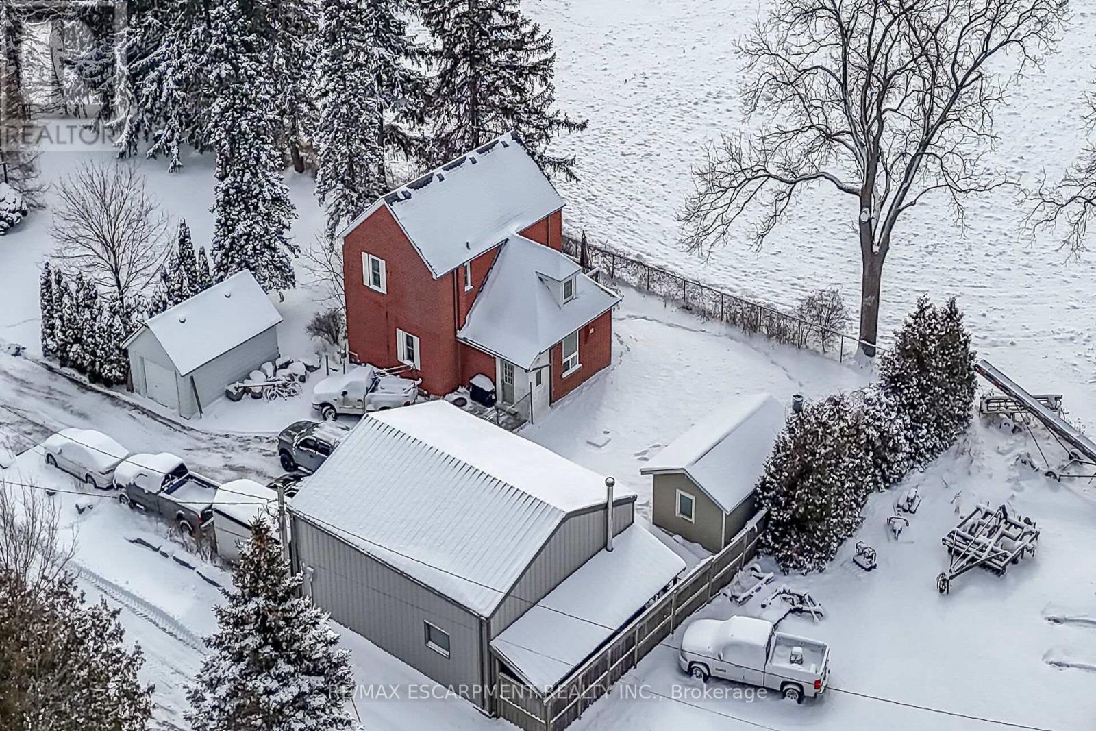 Experience "Country in the City" here at 2250 Highway 56 located in the heart of Binbrook - less than a 10 minute commute to Stoney Creek & Hamilton's amenities with Binbrook's vibrant town center minutes south includes schools, churches, parks, eateries & shopping centers. Check out this 0.54 acre rural property showcasing well maintained 2 storey century home positioned handsomely on mature treed lot introducing 1786sf of tastefully presented living area offering large, bright, family-sized kitchen features convenient island, ample cabinetry & storage room - leads to formal dining room boasting 8.5ft coved plastered ceilings - continues past roomy front foyer to west side living room enjoying patio door walk-out to 12'x20' entertainment deck & private fenced side/rear yard. Centrally designed staircase ascends to spacious upper level includes 3 sizeable bedrooms, unique multi-purpose room suitable for office or 4th bedroom completed with updated 4pc bath. The vintage dwelling's classic interior sports gleaming original hardwood flooring complimented with beautiful gum-wood doors, trim & baseboards. Hi & dry 653sf service-style basement houses efficient n/g hot water boiler-2007 includes laundry room & open storage/workshop space. Aspiring Mechanics, Truckers or Landscapers will salivate once entering the metal clad 30'x35' insulated "Dream" shop features free span I-beam construction, vaulted hoist worthy ceilings, concrete floor, 200 amp hydro, 12'x14' & 9'x7' insulated roll-up doors & wood stove (AS IS). Looking for extra space - there is 12'x20' versatile wood clad building-2014 features concrete flooring, 40 amp hydro & roll-up door plus 12'x20' detached garage. Extras - roof covering-2007, large parking compound, 2 portable AC units, 100 amp hydro, all appliances, cistern & septic system. Incredible well priced package with something for everyone! (id:64974)