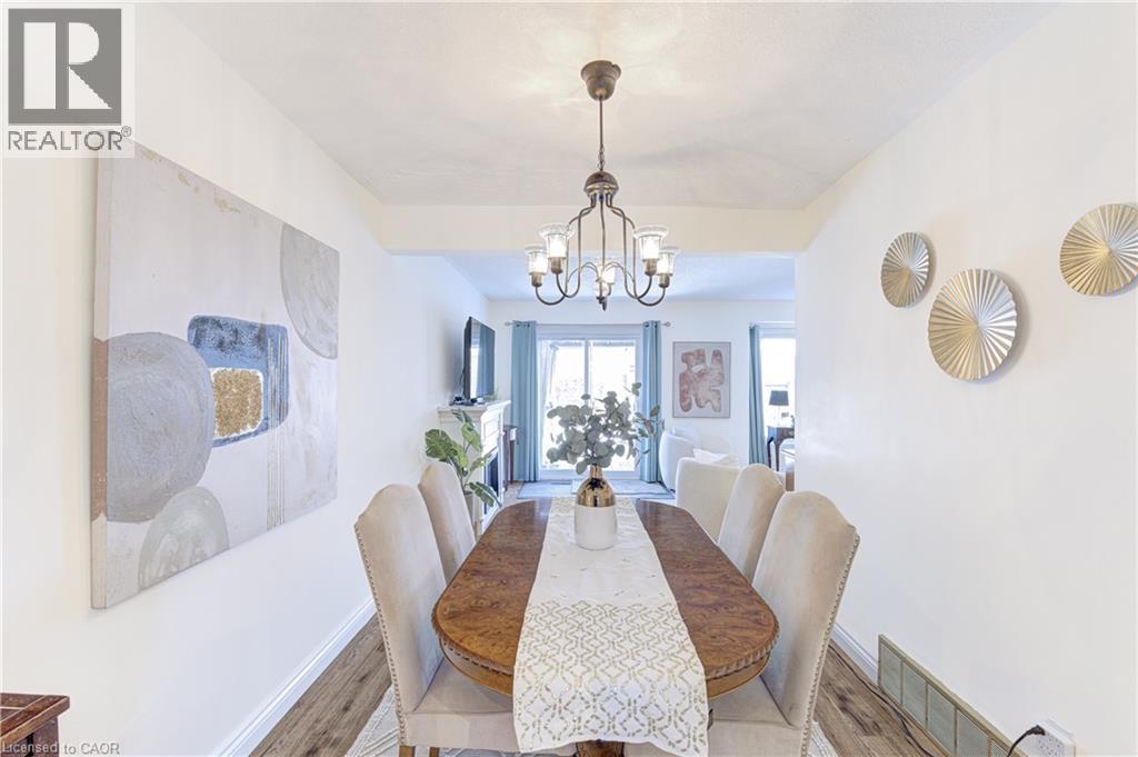 Welcome to Forest Heights - a rarely offered townhome with a private double-car garage, quietly tucked into a serene enclave of architecturally distinctive homes in Burlington's sought-after Brant Hills neighbourhood. Ideal for first-time buyers or empty nesters, this home delivers the perfect balance of low-maintenance living and everyday comfort. Step inside to a sun-filled kitchen featuring gleaming counters, a stainless-steel induction stove (2023) and new stainless-steel dishwasher (2025) - a welcoming space for both daily living and entertaining. The adjacent living room invites cozy evenings by the fireplace, complemented by a stylish custom mantel installed in 2024. The dining room offers a seamless walk-out to a newer composite deck complete with gazebo, lighting, and gas BBQ hookup - perfect for relaxed summer dinners and weekend gatherings. Surrounded by garden space, the fully fenced backyard is ideal for gardeners and outdoor enthusiasts alike and provides direct access to your private double garage. Upstairs, you'll find three generously sized bedrooms and two full bathrooms, including a spacious primary retreat with a recently updated ensuite featuring a new vanity and quartz countertops. The lower level adds even more versatility with a large recreation room, and a thoughtfully designed laundry area and a built-in folding table, plus a sizeable finished storage room. Enjoy resort-style living with access to the indoor pool, or host celebrations in the recently updated party room (2023). This is a home that truly offers comfort, convenience, and community - an exceptional opportunity in one of Burlington's most established neighbourhoods. Condo fees include: windows, doors and roof are included in exterior maintenance, water, cable ,common elements, building insurance, parking, snow removal, lawn maintenance. (id:64974)