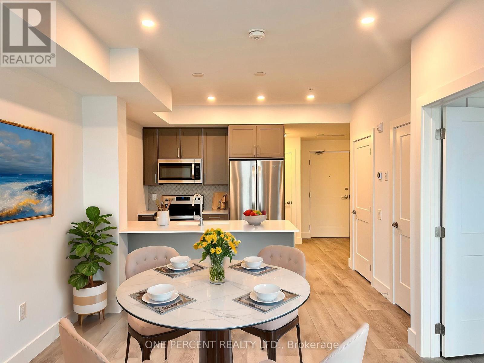Discover the Perfect Blend of Luxury and Lifestyle. This rare ONE BEDROOM PLUS DEN condo offers exceptional value and a chance to embrace resort-style living in the heart of Collingwood. With 775 square feet of modern, open-concept design, this unit is thoughtfully crafted to provide both comfort and style. High-end finishes, including quartz countertops and stainless steel appliances, create a kitchen that any home chef will appreciate. The bright, south/east-facing views fill the living space with natural light, while the spacious walkout balcony is an inviting retreat for morning coffee or evening relaxation. The primary bedroom features a Jack-and-Jill 4-piece ensuite, offering convenience and privacy. The unit also includes a dedicated underground parking space, ensuring your vehicle remains protected and accessible year-round.This condo offers more than just a home its a lifestyle opportunity with amenities designed to enhance your day-to-day living. Entertain guests on the stunning rooftop terrace, complete with barbecues and breathtaking views of the nearby ski hills. Stay active with access to an indoor pool, a fully equipped gym,and recreational spaces including a golf simulator, putting green, billiards room, and games room. Located just minutes from your front door, Collingwoods vibrant outdoor lifestyle awaits. Enjoy skiing, scenic trails,hiking, and pristine beaches, along with world-class golf courses and opportunities for kayaking and boating. This property is perfect for those seeking a full-time residence or a weekend retreat. With flexible closing date options, this condo makes it easier than ever to step into your dream property. Schedule your showing today and discover everything this exceptional home and its location have to offer. Some photos have been virtually staged. (id:64974)