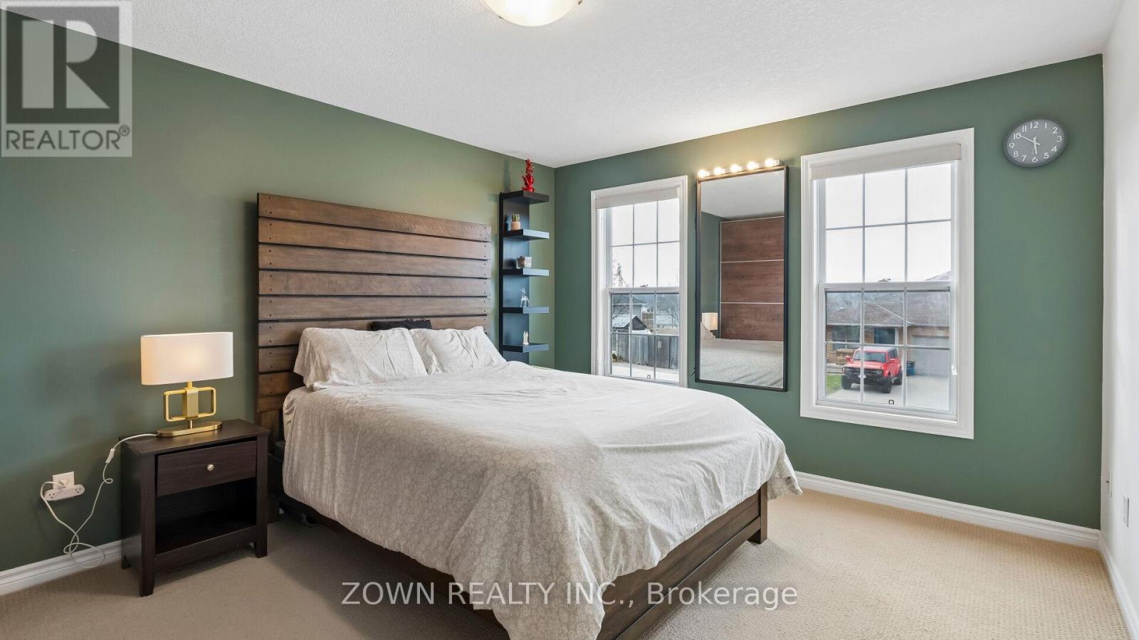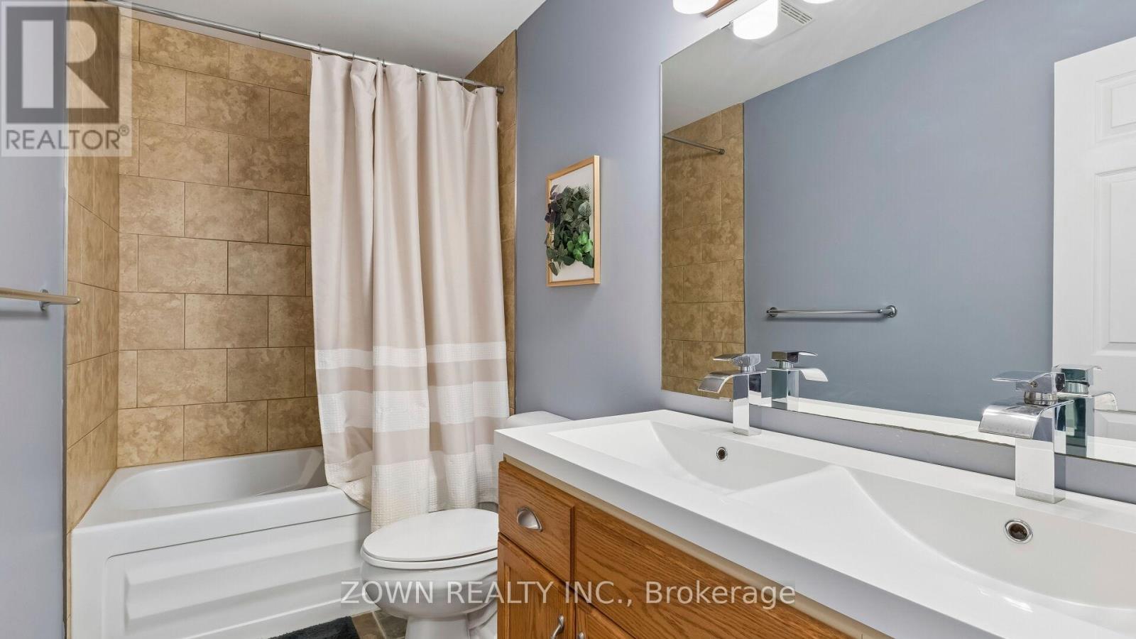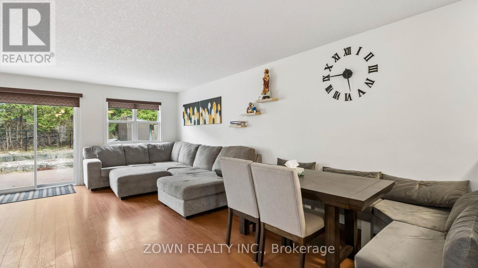 Enjoy an easy, affordable lifestyle with no condo fees in this stylish, low-maintenance, and spacious 2-storey brick townhouse! Offering simple, carefree living-there's nothing to do but move in and enjoy. Located on a quiet cul-de-sac in a desirable school district, this home sits in a peaceful neighborhood just minutes from Highway 401, making it perfect for commuters. The main floor features a bright, open-concept design with a large living and dining area, along with a modern kitchen complete with a breakfast bar and pot lighting. All appliances are included: fridge, stove, dishwasher, and built-in microwave/range hood. This level also offers two spacious bedrooms, including a primary with a walk-in closet, a 4-piece bathroom with double sinks, and a generous laundry room with washer, dryer, and an additional shower. Step outside to relax on the deck and enjoy the nicely landscaped yard with armor stone. The lower level offers secure inside access from the insulated garage to a grade-level foyer, along with a convenient powder room and an expansive L-shaped family room featuring built-in ceiling speakers (included)-perfect for a home theatre or entertaining guests. Tastefully decorated throughout. Extras include shingles (2020), gas BBQ hookup, reverse osmosis system, and water softener. (id:64974)