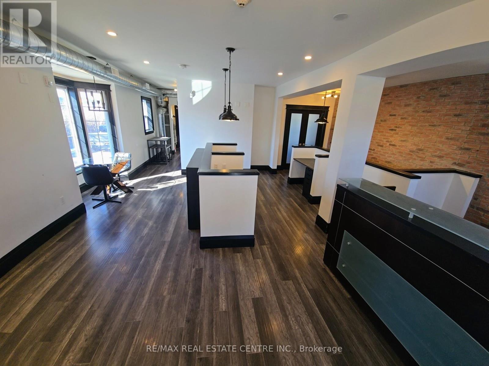 Fantastic Opportunity For A Business Owner Or Investor Looking For A Commercial/Residential Mixed-Use Property. The Main Floor Offers A Professional Office Environment Featuring A Bright Open Workspace With Multiple Built-In Workstations, A Dedicated Reception Area For Greeting Clients, Large Windows Providing Excellent Natural Light And Stylish Interior Finishes Including Exposed Brick Accent Walls, Contemporary Lighting And Durable Modern Flooring. The Main Level Also Includes A Kitchen Area And A 2 Pc Bathroom, Creating A Functional Layout For A Variety Of Professional Uses. The Fully Finished Basement Provides Additional Professional Space And Includes A Large Boardroom Ideal For Meetings And Presentations, A Private Office, A 3 Pc Bathroom And Laundry Area. The Layout Is Perfect For Businesses Looking For A Professional Client-Facing Environment With Flexible Workspace For Teams, Meetings Or Private Offices. C2 Zoning Allows A Wide Range Of Commercial Uses Including Professional Offices, Real Estate Offices, Accounting Firms, Consulting Businesses, Marketing Agencies, Medical Or Wellness Clinics, Personal Service Businesses, Therapy Practices, Creative Studios And More. This Well-Maintained Property Sits On A Massive 85 X 159 Foot Lot With Ample On-Site Parking. The Property Also Features A Detached Garage At The Back Which Is Rented Separately Providing Additional Income. The Upper Residential Unit Is A 2 Bedroom Apartment Located On The Top Floor And Loft Level And Includes A Walkout To An Enclosed Deck. The Unit Is Currently Rented Providing Additional Income For Investors. The Main Floor Professional Space Is Move-In Ready Making It Ideal For A Business Owner Looking To Operate From Their Own Property While Benefiting From Additional rental income. (id:64974)