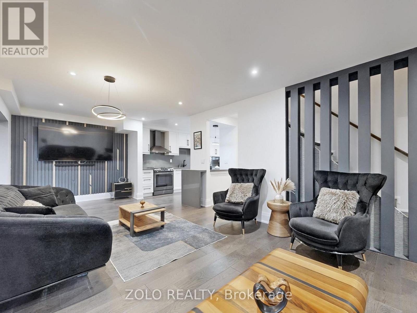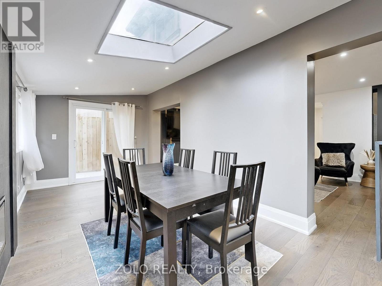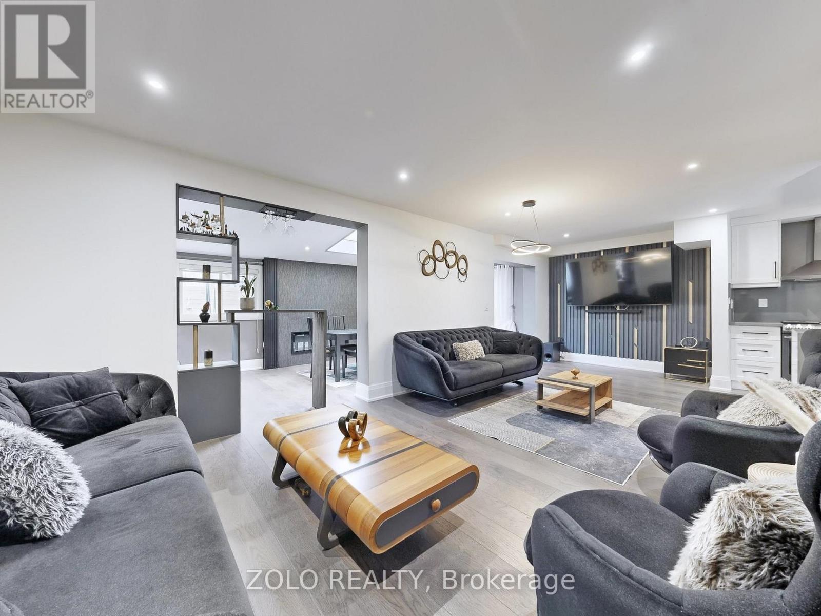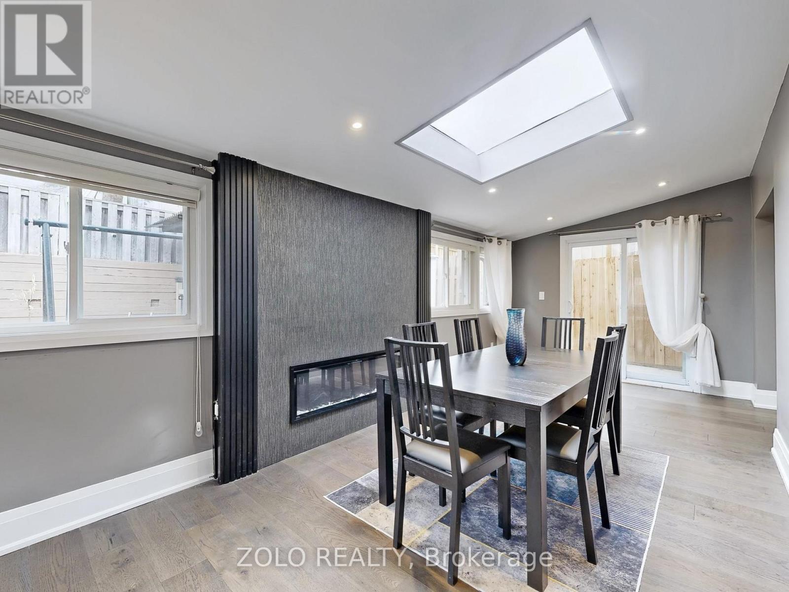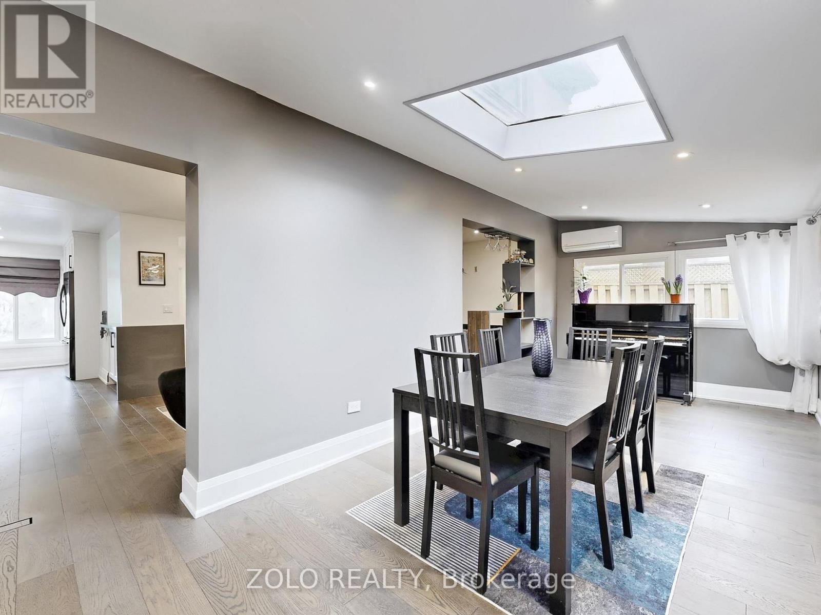 Bright and well-maintained detached home located on a quiet, family-friendly crescent in a desirable Newmarket neighbourhood. The property offers a functional layout with spacious principal rooms, hardwood flooring on the main level, and a modern kitchen featuring stainless steel appliances, updated cabinetry, and clean finishes. The main floor includes a sun-filled dining area overlooking the backyard, enhanced by a skylight, electric fireplace, and a dedicated wall-mounted heating and cooling unit, providing comfortable additional living space. The dining area has been legally extended with permit approval, creating an improved layout and enhanced flow. The upper level features generously sized bedrooms, including a large primary bedroom with a walk-in closet, along with two full bathrooms and the convenience of upper-level laundry. The finished basement, with a separate entrance, provides flexible space for extended family use. Basement finishing was completed by a previous owner and may not have retrofit status. Additional features include a private garage with driveway parking for up to three additional vehicles. The exterior has been updated with a stucco finish on the upper level, offering a clean, modern appearance. Conveniently located close to parks, schools, shopping, transit, and major commuter routes. (id:64974)