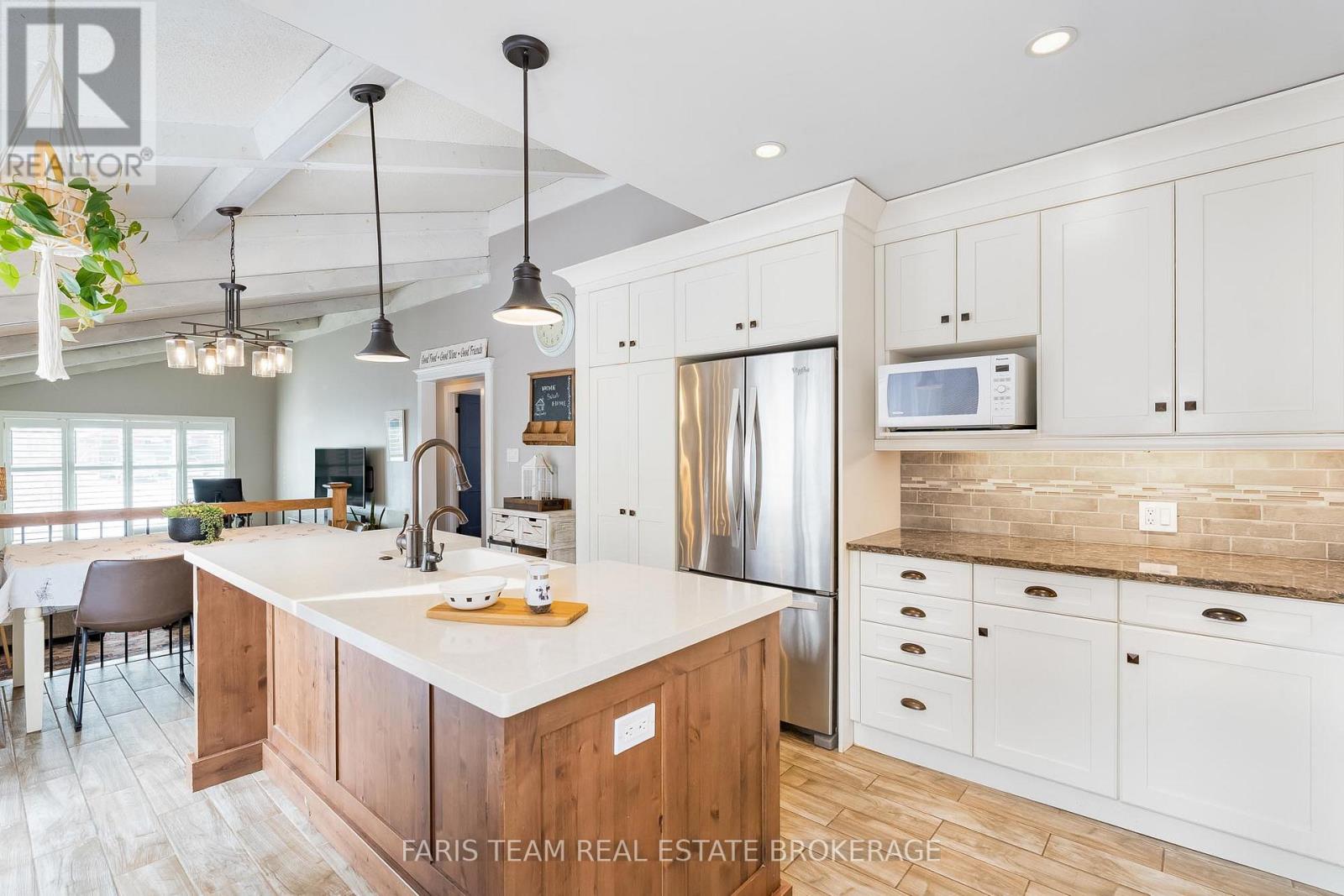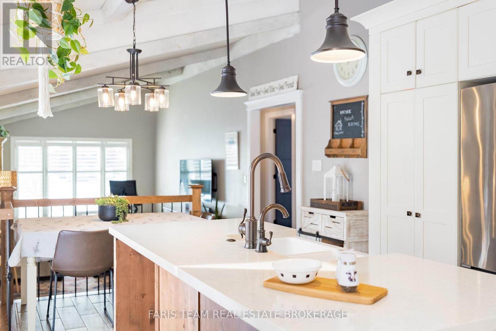 Top 5 Reasons You Will Love This Home: 1) Set in a family-friendly neighbourhood in the heart of Alcona, offering laid-back living just steps to the beach and an hour from Toronto, with easy access to Highway 400, the GO station, schools, and everyday shopping 2) Short walk bringing you to Lake Simcoe, nearby beaches, and a public boat launch, perfect for boating, fishing, and spontaneous summer days by the water, without the cottage-country drive 3) With just over 1,800 square feet of finished living space, four generously sized bedrooms, and two bathrooms, this bungalow delivers the space and flexibility families need 4) Inside, the main level features a mindfully updated gourmet kitchen with Caesarstone countertops, decorative cabinetry, a cast-iron farmhouse sink, recessed lights, and ceramic flooring, all flowing seamlessly into a welcoming living room with a cathedral ceiling 5) Recent upgrades provide true peace of mind, including a new furnace and air conditioner, front door, and bedroom windows (all 2025), plus a metal roof, HEPA filtration system, and renovated bathrooms, making this a move-in-ready home on a spacious lot with room to gather around the firepit and enjoy the outdoors. 1,104 above grade sq.ft. plus a finished basement. *Please note some images have been virtually staged to show the potential of the home. (id:64974)