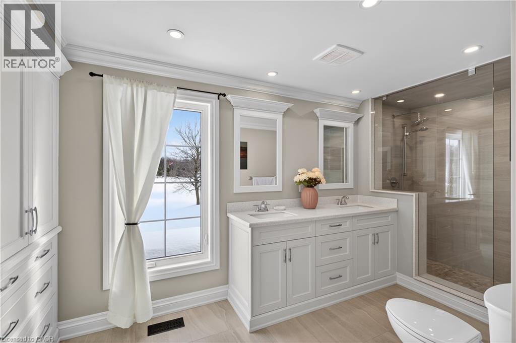 Imagine trading the soundtrack of the City for something that's far more luxurious, silence!! No honking, no rushing just space to breathe & mornings that actually belong to you. At 2264 Britannia Road, that shift isn't theoretical - it's instant. A long, private drive leads you past a tranquil pond and into this exquisite North Burlington Estate situated on 5 pristine acres where the true measure of space is found in freedom, privacy, and possibility. Inside this beautifully finished residence, every room opens to nature's own artwork -- rolling fields & evergreen groves. A warm & welcoming home that balances the best of both worlds, offering formal rooms for special occasions & informal spaces where life naturally unfolds. The primary suite blends comfort & function with your own balcony, a relaxed sitting area & a 4 piece ensuite showcasing double sinks & an oversized shower. With 2600 sq ft, 4 bedrooms & 2.5 bathrooms, the home balances elegance with ease. And for the dreamers, doers & collectors the 2400 square foot in-floor heated outbuilding is pure possibility -- studio, workshop, hobby space. This is where your someday becomes real. This isn't just a home, it's a lifestyle & once you experience it you'll never want to leave. (id:64974)