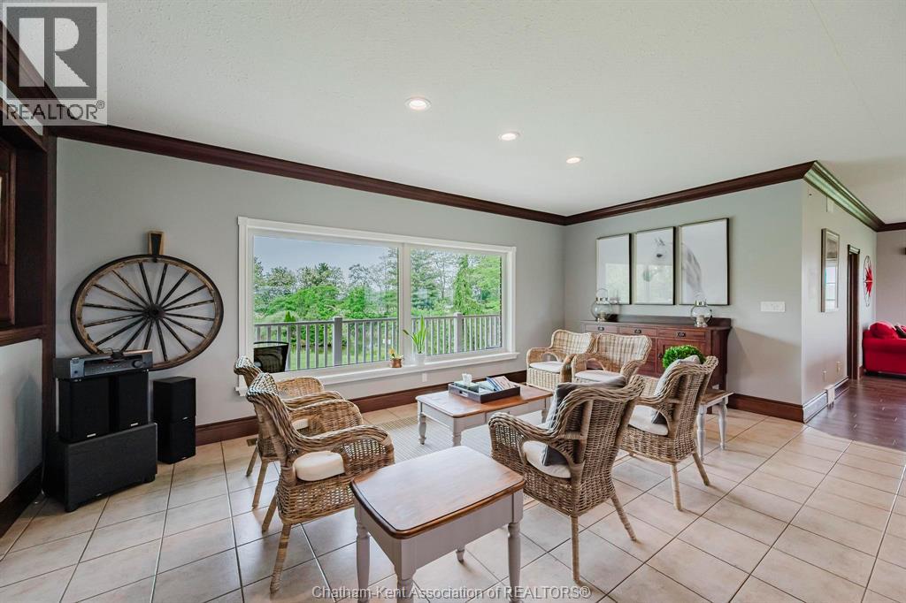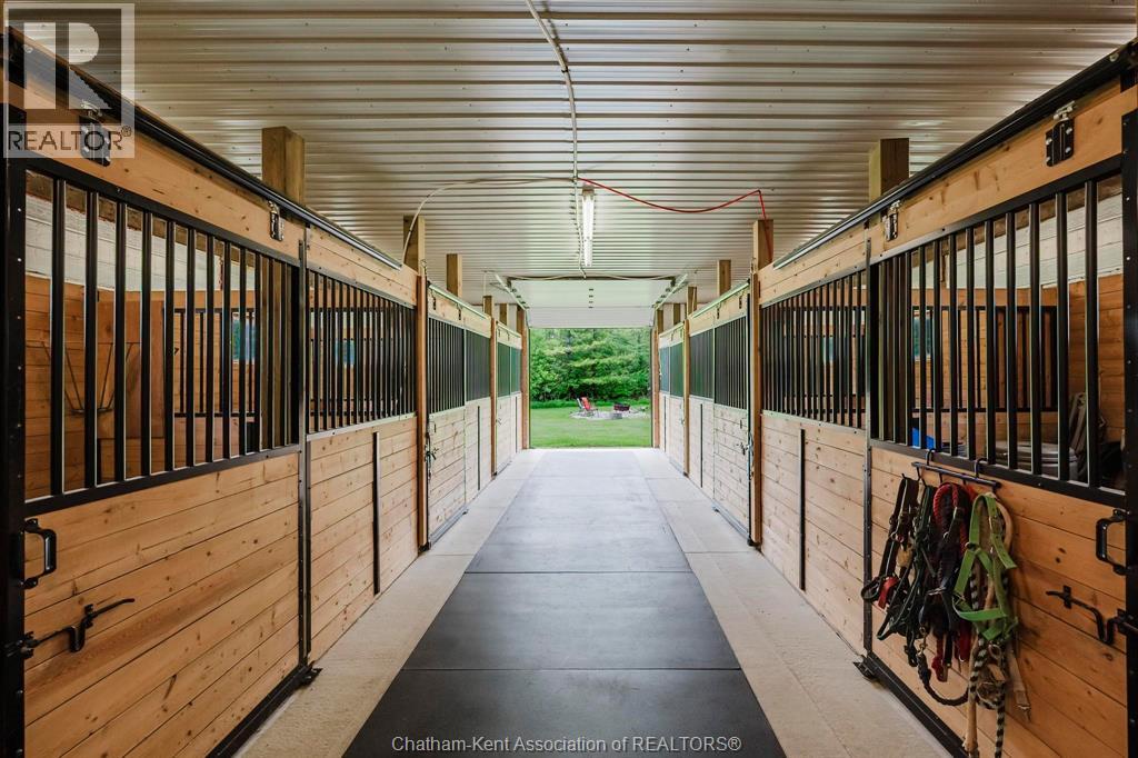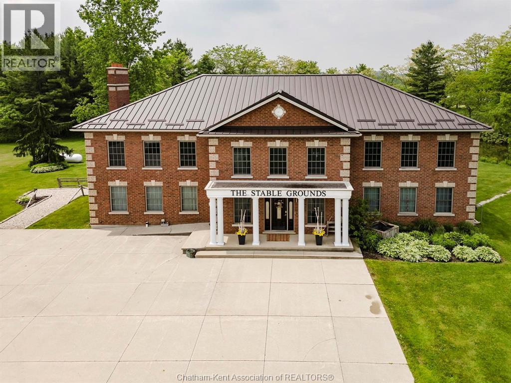 Presenting a rare & exceptional opportunity to acquire a meticulously maintained 55.03-acre countryside retreat. Ideally located just minutes from Highway 401 in West Elgin this facility was built with seclusion & convenience in mind. Currently operating as a thriving wellness retreat, the business is relocating—offering you the chance to reimagine this extraordinary estate’s next chapter. At the heart of the property stands a sprawling 7,500 sq ft residence with 10 spacious bedrooms & 7 bathrooms, designed to host large groups or multi-generational families with ease. The open-concept layout features a stunning chef's dream industrial-style kitchen, complete with a large island, separate butler's kitchen, & bistro-style seating area with access to a panoramic 60' balcony overlooking a tranquil pond & peaceful landscape—perfect for entertaining or running a commercial operation. A cozy fireplace central to the great room creates a warm & welcoming atmosphere for gatherings at the core of the premises. The fully finished lower level offers a private gym, yoga room, gathering room & dedicated office space-catering to both relaxation & productivity. State-of-the-art equestrian facilities are sure to captivate with its 100x150 indoor riding arena, 6-stall horse barn, 3 fenced paddocks, & fully outfitted tack room with attached studio apartment. The grounds also feature trails, offering serene views & the peaceful ambiance that defines this one-of-a-kind estate. Zoned A1 with permitted wellness facility use, the property is primed for continued commercial operation, agricultural ventures with 19 workable acres, or private luxury living. Whether you envision a private sanctuary, a retreat center, or an equestrian training facility, this property delivers unmatched potential in a truly idyllic setting. Don’t miss your chance to own a turnkey acreage combining natural beauty, luxury amenities, & business-ready infrastructure—all within easy reach of major travel routes. (id:64974)