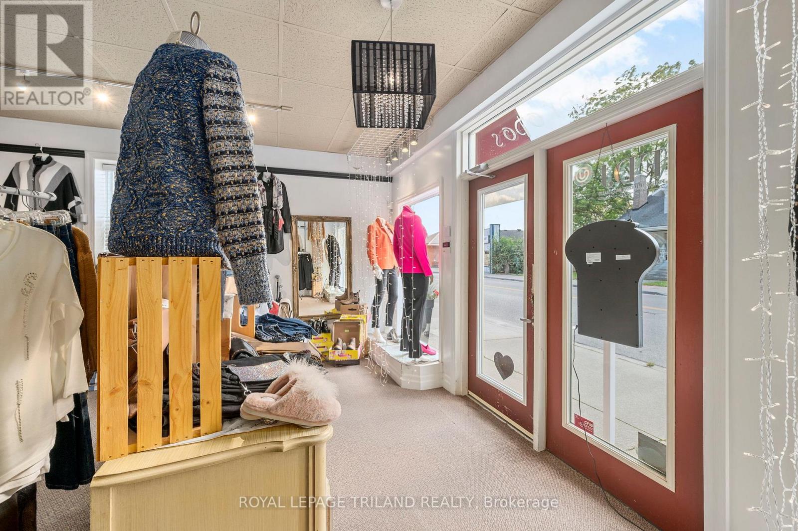This is a rare opportunity to acquire a landmark mixed-use investment property spanning two adjoining downtown storefront buildings in one of Port Stanley's most visible and heavily trafficked commercial corridors. Connected internally by a small bridge but presenting as two distinct street-facing buildings, the property offers exceptional frontage, strong signage exposure, and long-term leasing flexibility at a signalized intersection along a high-traffic county roadway with consistent pedestrian activity.The property includes multiple commercial units plus a highly sought-after downtown residential apartment, totaling over 4,000 square feet of rentable area. The building is currently transitioning through an anchor tenant changeover, creating a unique opportunity for an incoming owner to secure a new flagship commercial tenant or reconfigure the space to maximize future rental income. Downtown Port Stanley continues to experience strong demand for well-located commercial space driven by tourism, population growth, and expanding regional employment opportunities.There is also an optional opportunity to acquire the established Apropos retail business alongside the real estate. Apropos is a recognized Port Stanley boutique brand with longstanding community presence, strong repeat clientele, and significant transferable goodwill.Flexible permitted uses under current zoning provide multiple pathways for future repositioning or value-add strategies. With continued regional economic expansion anticipated alongside the Volkswagen EV Gigafactory development, Port Stanley is positioned for sustained commercial and residential demand growth.Opportunities to control this level of downtown frontage, scale, and visibility are limited, making this an ideal acquisition for investors or owner-operators seeking long-term upside in one of Southwestern Ontario's most desirable lakefront markets. (id:64974)