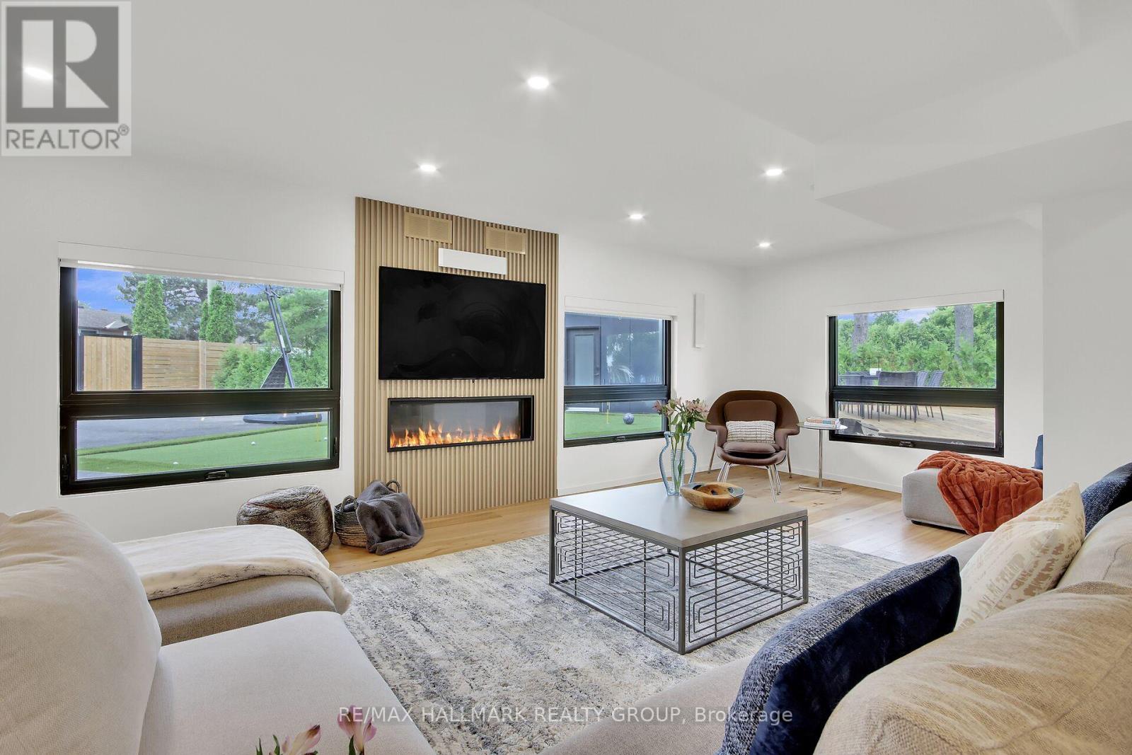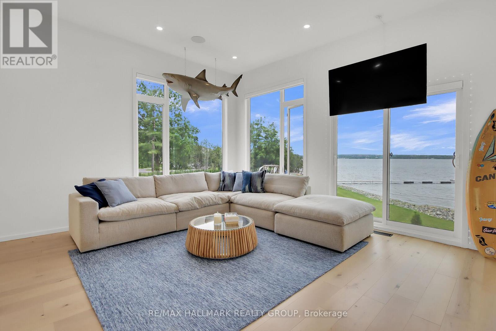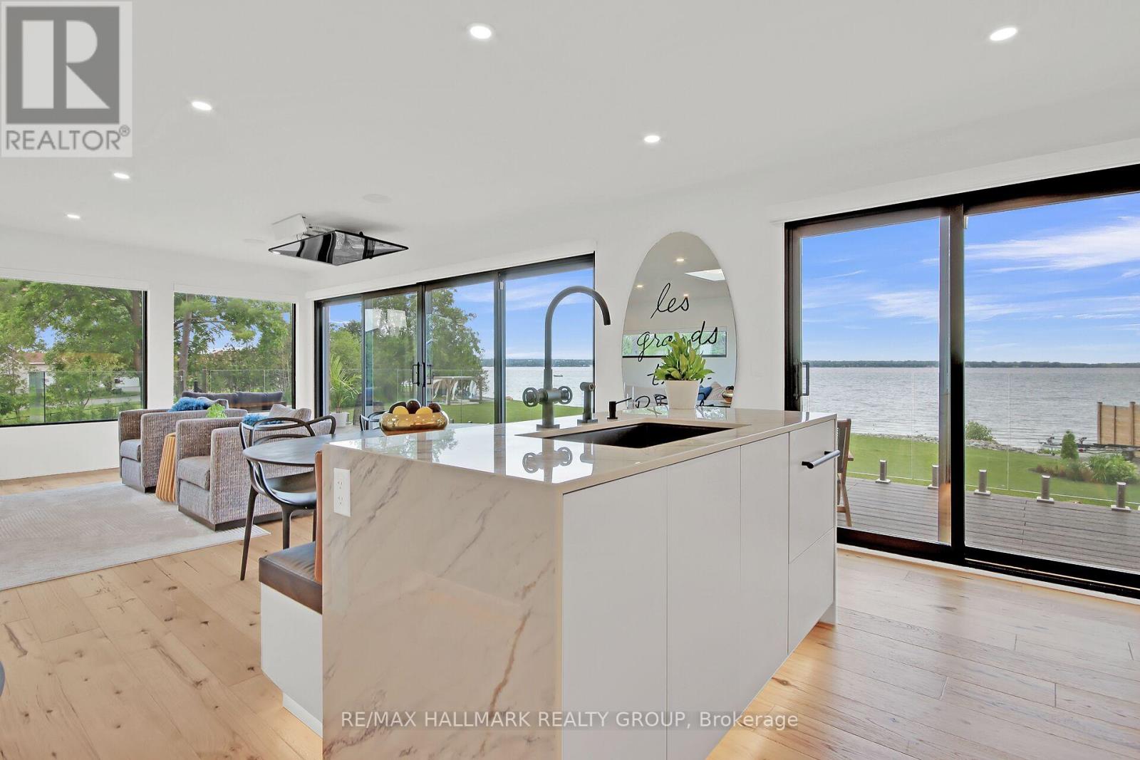 Crystal Bay waterfront resort like property providing an array of entertainment and recreational activities year round. Only 126 single family properties on the Ottawa River from Britannia to the NCC greenbelt making this a special opportunity. This modern 'smart' home has an outstanding and breathtaking panoramic views across the river to the Gatineau Hills and towards the city centre. The three level 3 bedroom split home and additional self contained Coach House all reimagined since 2021 are situated on a massive .85 acre lot with over 190' of waterfront. You can feel the serenity as you arrive through the gated entrance. High quality finishes throughout the buildings and grounds. Huge deck over a 3 season family room w/sauna. Other inclusions are a 36x18 inground saltwater pool, large deck and patio area, putting green, firepit, generator, BBQ station, gazebo and jet ski dock. Double car garage at main home and a single drive through garage at the Coach House. Private retreat inside the Ottawa Greenbelt on the Grandview Golden Mile. Short 2-4 minute drive to Department of National Defense Headquarters, Dick Bell Park/Nepean Sailing Club and Andrew Haydon Park. (id:64974)