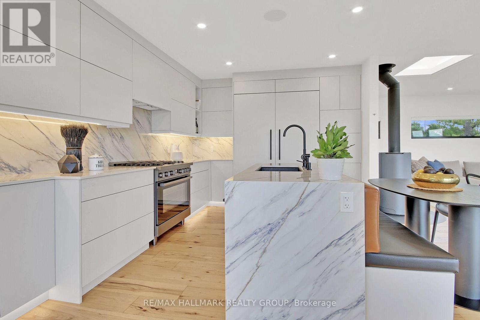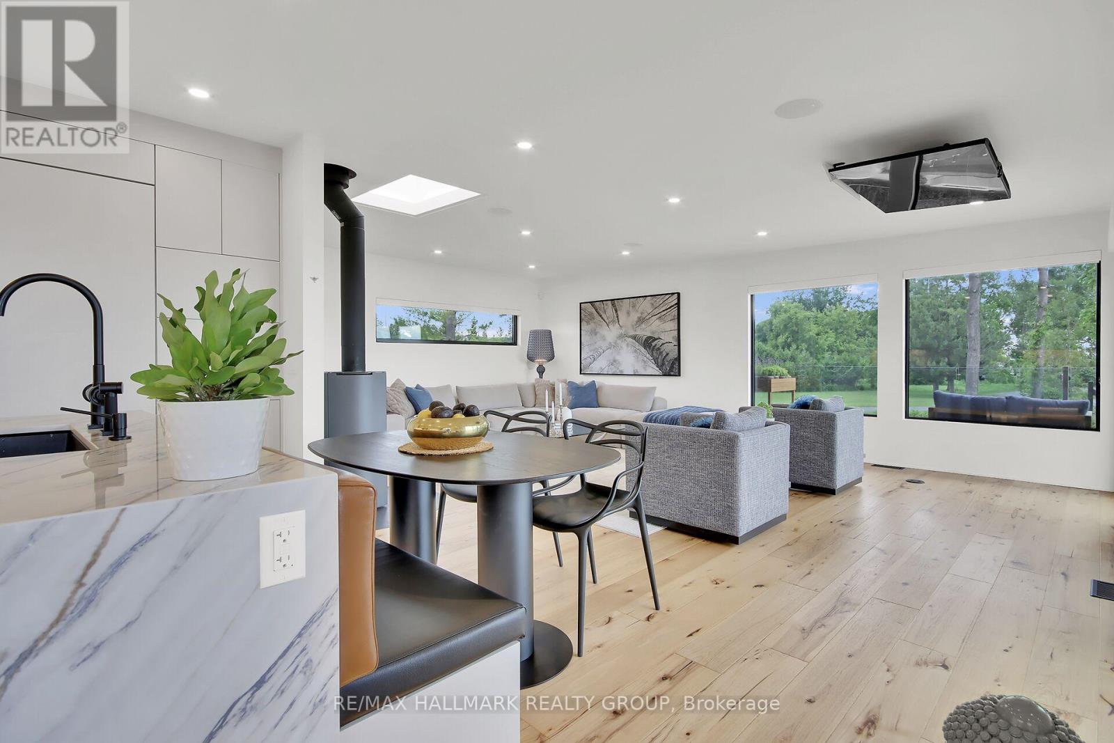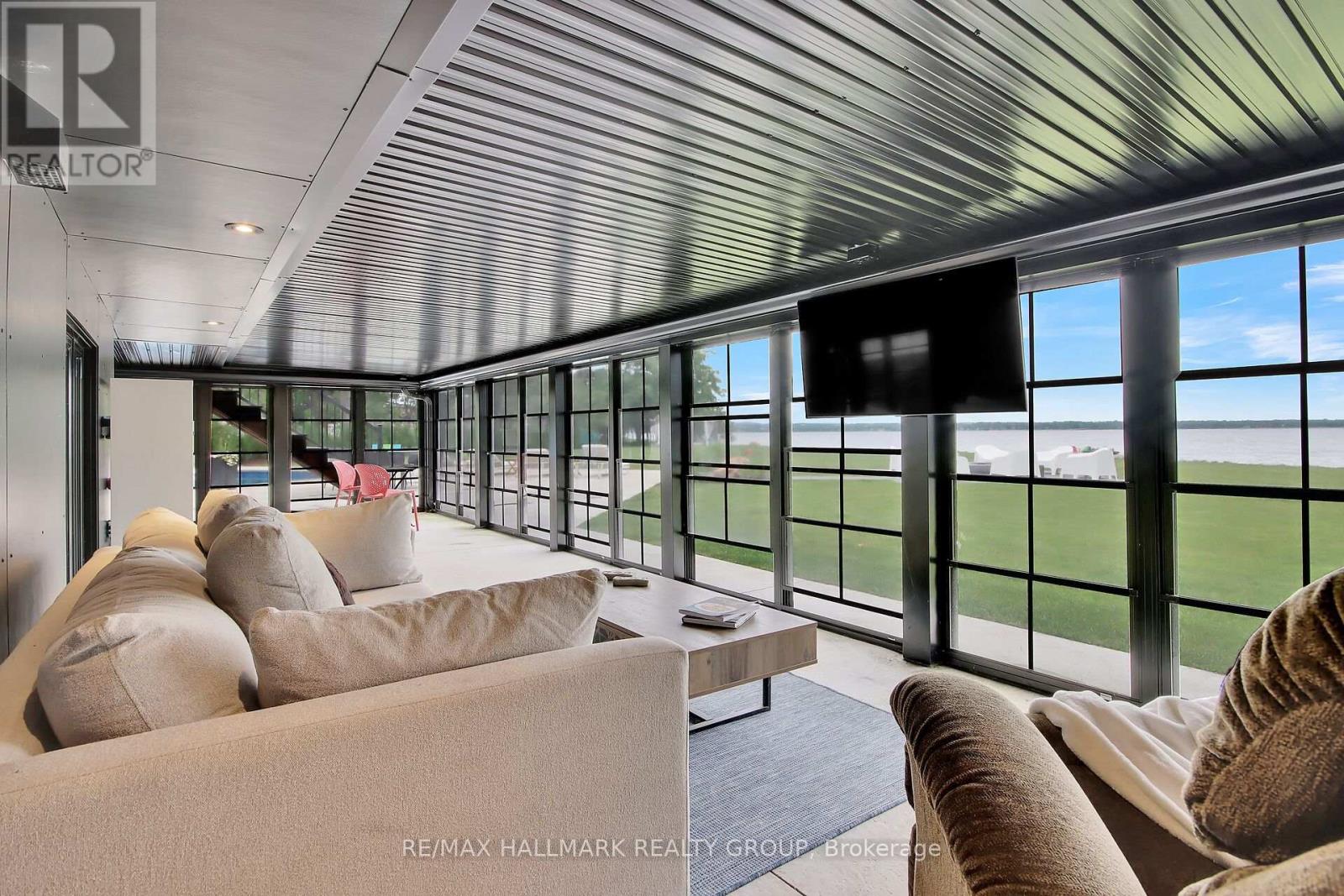 Crystal Bay waterfront resort like property providing an array of entertainment and recreational activities year round. Only 126 single family properties on the Ottawa River from Britannia to the NCC greenbelt making this a special opportunity. This modern 'smart' home has an outstanding and breathtaking panoramic views across the river to the Gatineau Hills and towards the city centre. The three level 3 bedroom split home and additional self contained Coach House all reimagined since 2021 are situated on a massive .85 acre lot with over 190' of waterfront. You can feel the serenity as you arrive through the gated entrance. High quality finishes throughout the buildings and grounds. Huge deck over a 3 season family room w/sauna. Other inclusions are a 36x18 inground saltwater pool, large deck and patio area, putting green, firepit, generator, BBQ station, gazebo and jet ski dock. Double car garage at main home and a single drive through garage at the Coach House. Private retreat inside the Ottawa Greenbelt on the Grandview Golden Mile. Short 2-4 minute drive to Department of National Defense Headquarters, Dick Bell Park/Nepean Sailing Club and Andrew Haydon Park. (id:64974)