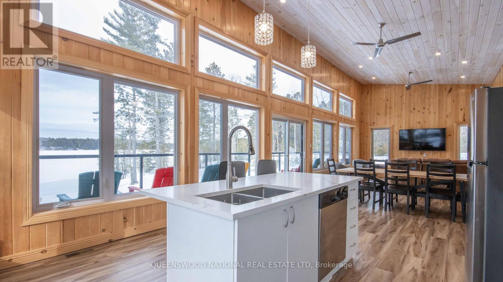 Get ready to live your dream! This will be where your heart is, so be prepared to fall in love with this carefully curated, custom built home and the pristine lake. This beautiful property is waiting just for you to sink your toes into the sand and submerge yourself in the beautiful water of Long Lake or Halfway Lake, - two names but one lovely expanse of water to enjoy fishing, swimming, boating or paddling. The home is situated on 1.23 acres and is expertly and lovingly finished in local pine, with 4 bedrooms and 2 full baths on the main floor and the lower level has 2 bedroom, a spare room and full bath. Each floor is fully equipped and designed to live, relax, play and fully enjoy the lake. The main floor has stainless steel appliances and the lower level has a large wet bar, along with living rooms, dining rooms and separate laundry on each floor. Each level is fully independantly functional of the other and has its own separate entrances for hosting family/friends, in-laws or multi generational family living! The shoreline road allowance is owned and has a sand beach, and a fire pit with log seating - picture perfect for beautiful summer days The location is on a quiet dead end road in a community of newer homes and only a short drive to Barry's Bay or Combermere. (id:64974)